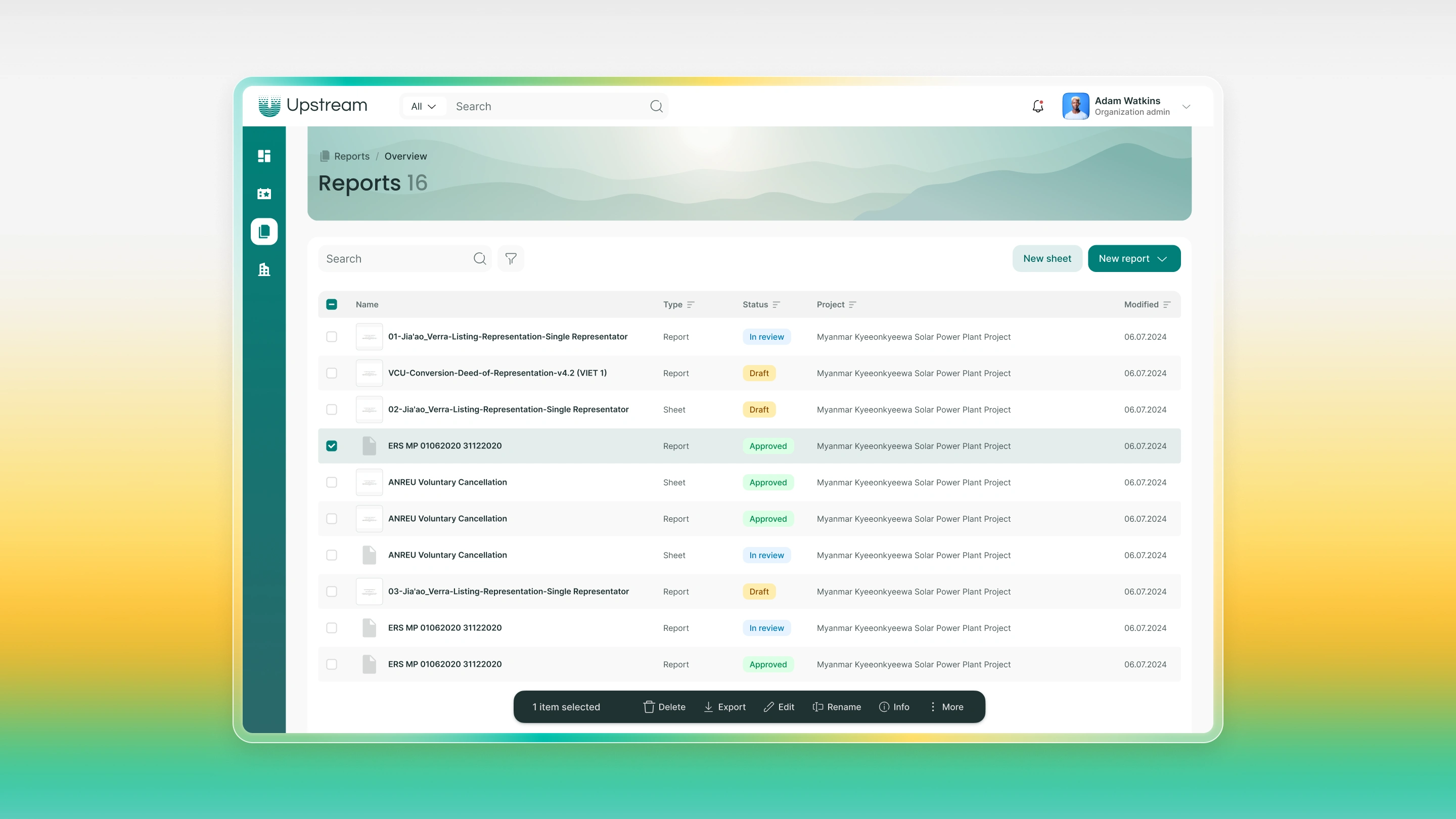 We partnered with the Upstream team to build both the brand identity and the product itself. The visual language modernized the recognizable carbon bubble motif into a flexible system that balanced enterprise professionalism with accessibility. On the product side, we carried out full-cycle UX research and design, mapping user journeys, building prototypes, running usability testing, and ultimately delivering a design library in Figma tied directly to React components. At the development level, we integrated the Evident API to give users in-platform I-REC registry control, eliminating the manual workflows that had long slowed the industry.
