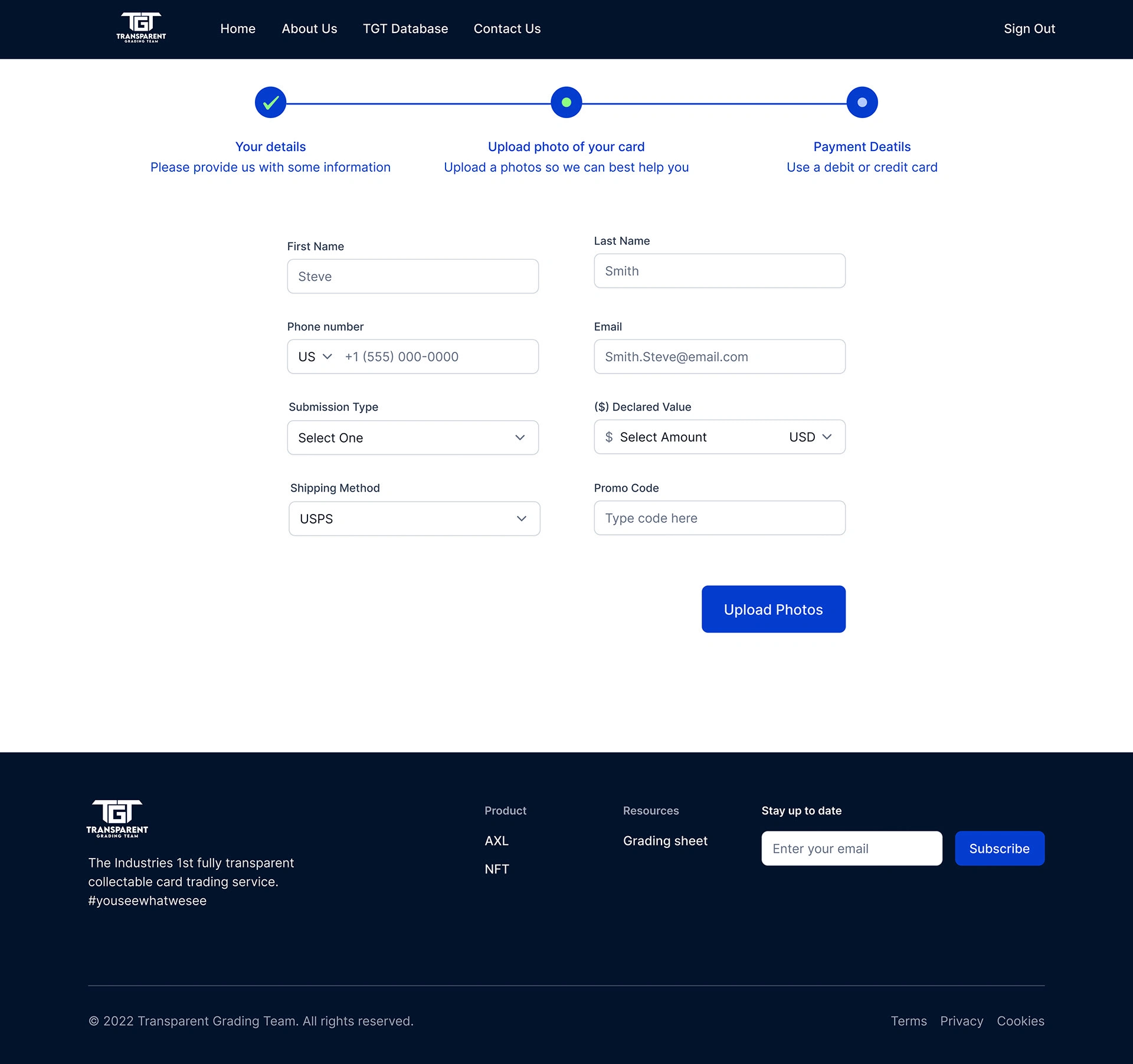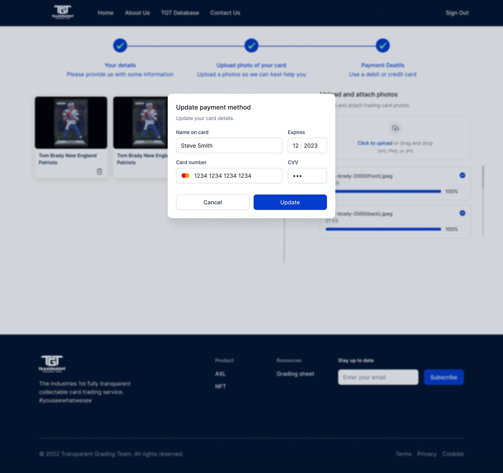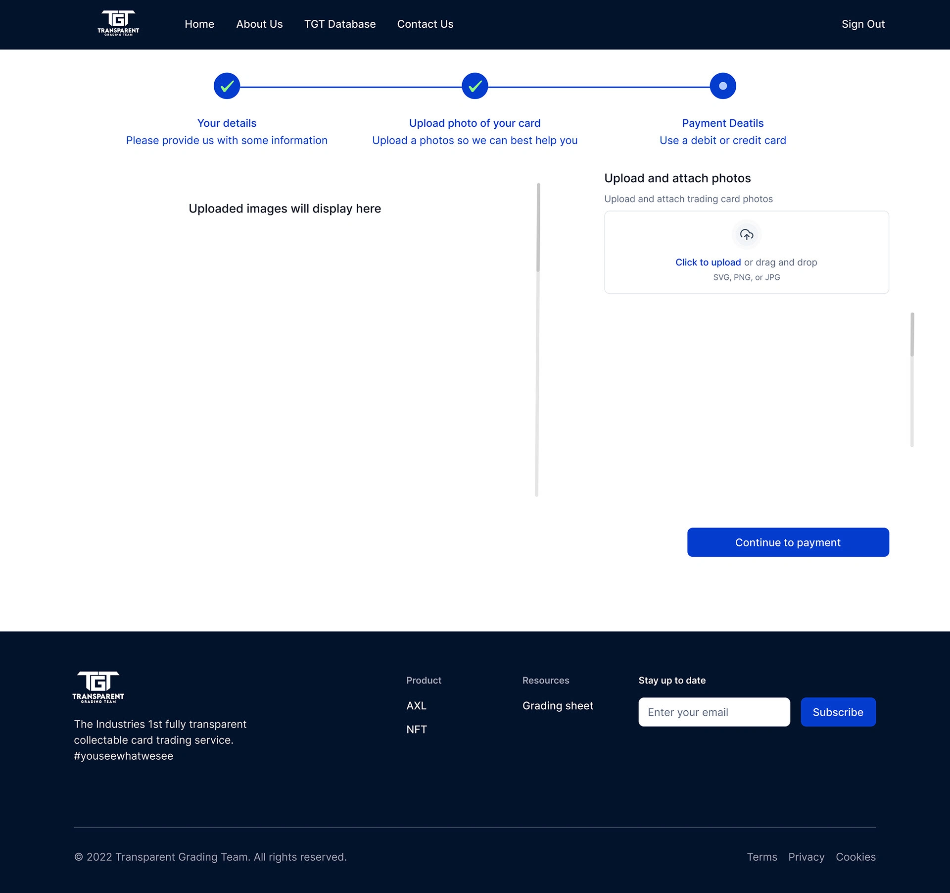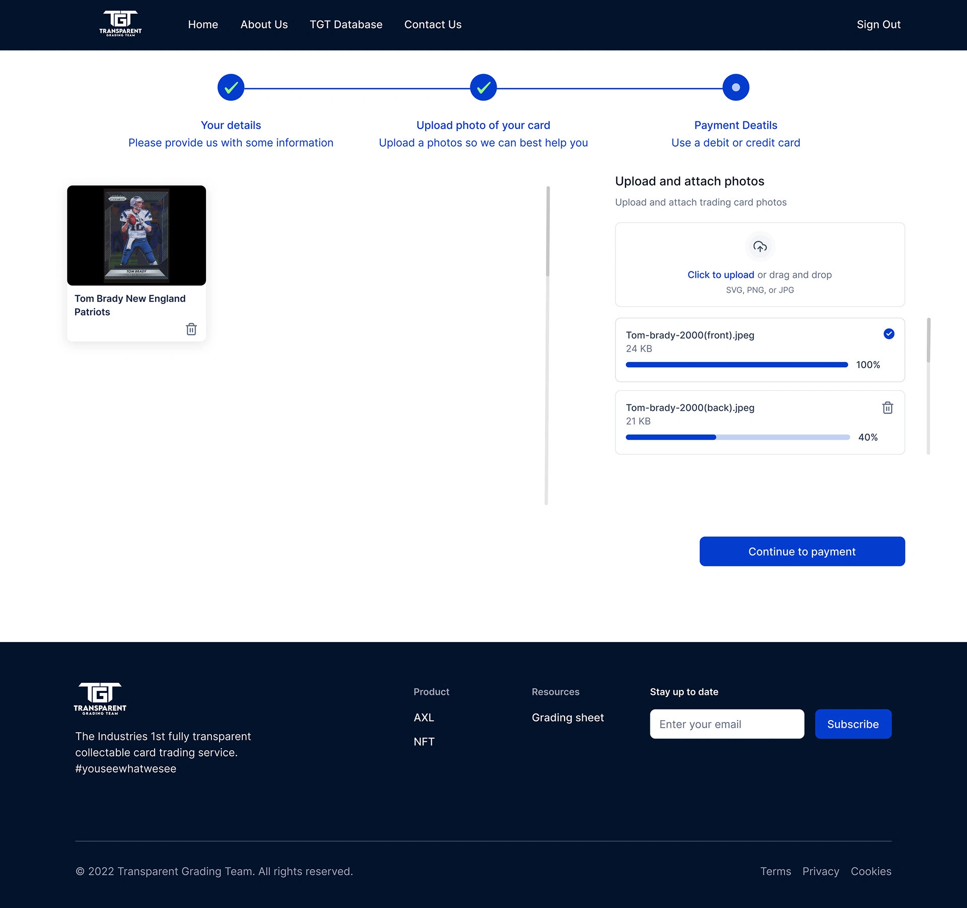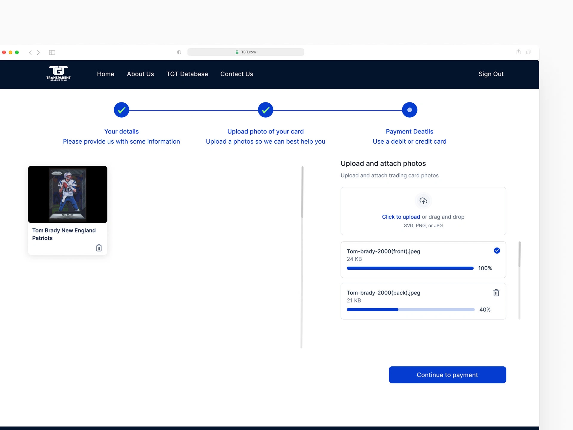 You'll upload all of the cards you'd wish to have graded (Front and Back)