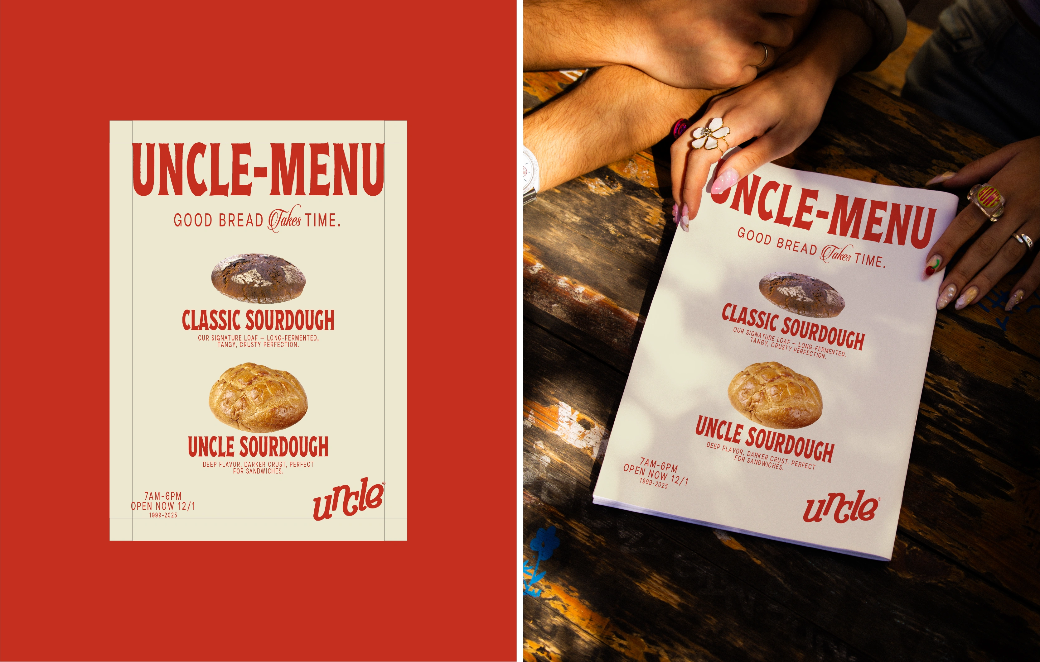 A simple mascot mark was introduced to embody the uncle behind the bread, adding personality and storytelling to the identity. Used as a secondary logo, it reinforces the brand’s heritage, warmth, and human presence while creating a memorable symbol that feels timeless and approachable.