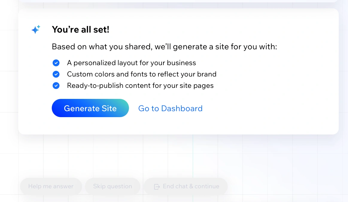 It allows you to interact with an AI website creator by responding to prompts, which are then used to create a tailored site profile. Here is how you can create a site design for your website in less than 1hr using Wix artificial intelligence creator: