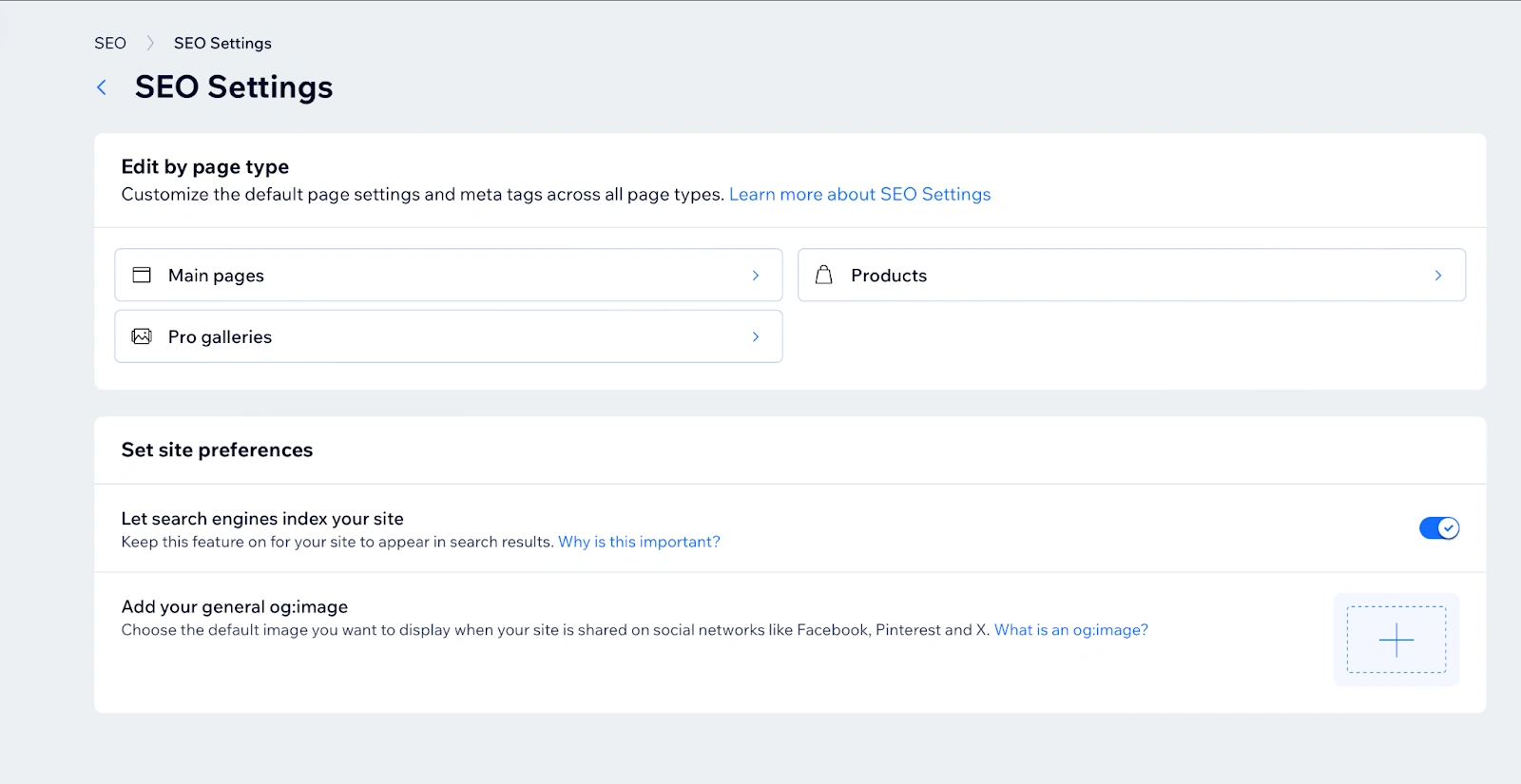 Edit SEO settings to customize your pages and meta tags for SEO.