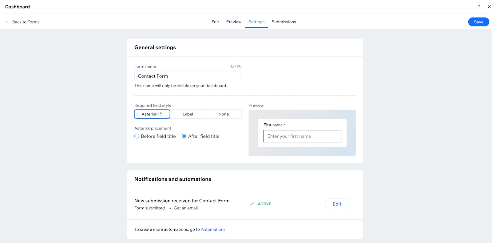 Click on the Edit icon at the top left, follow the instructions to adjust your form settings, and then save.