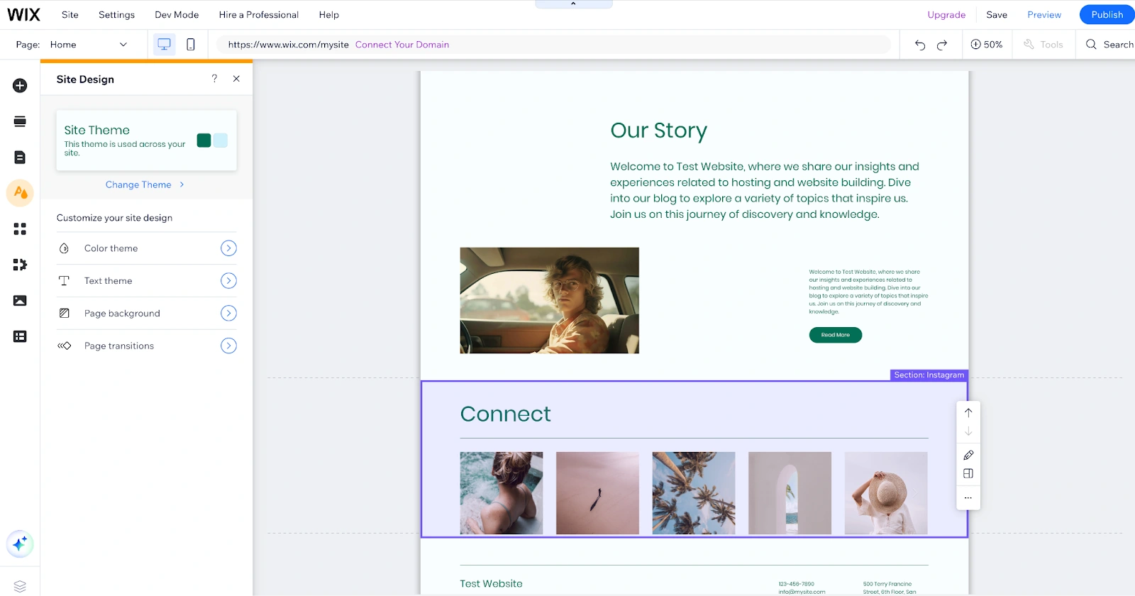 Change your site theme to customize your site design. Wix allows you to edit your color and text theme, page background, and transitions. You can also use AI to create images for unique backgrounds or generate a new theme.