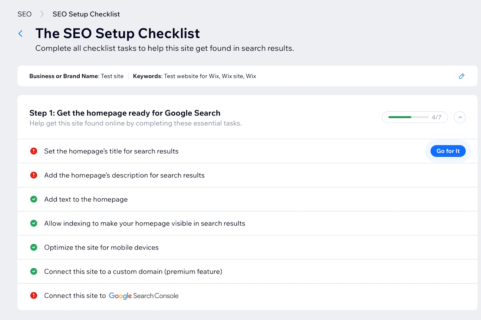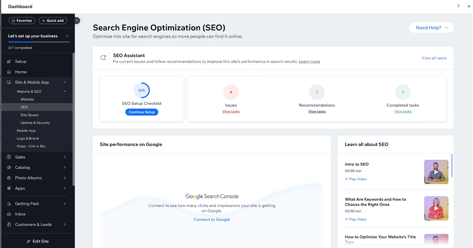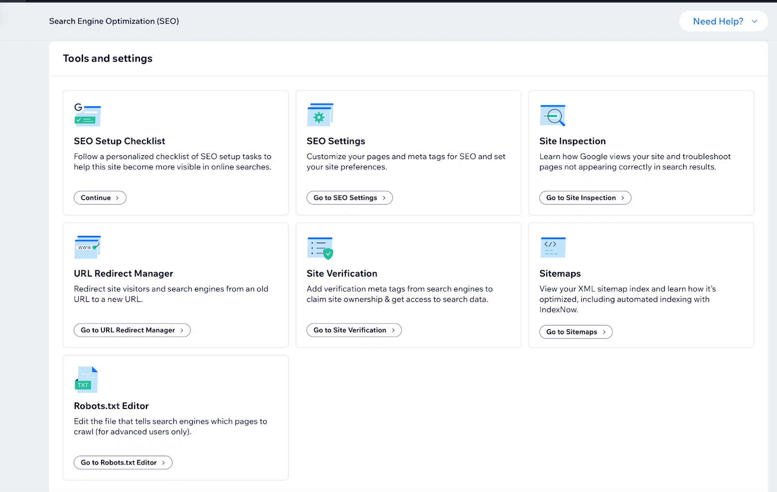 Once you finish setting up your site, use the following Wix SEO tools and data to fine-tune your site: