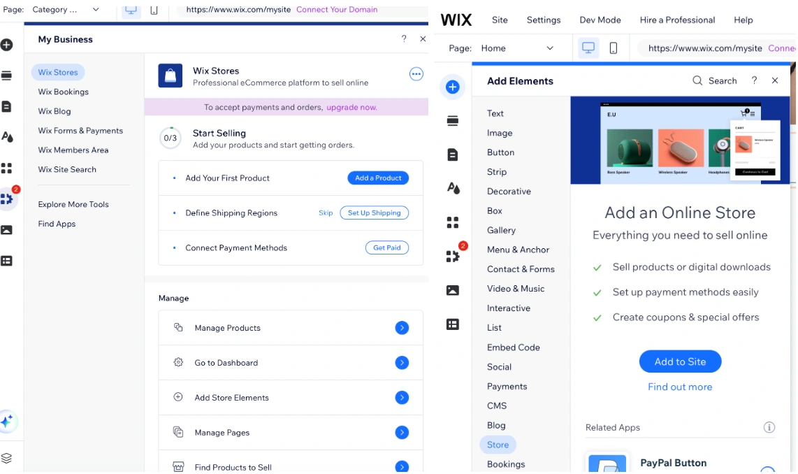 Next, follow these steps to add a Wix store and integrate eCommerce functionalities into your site: