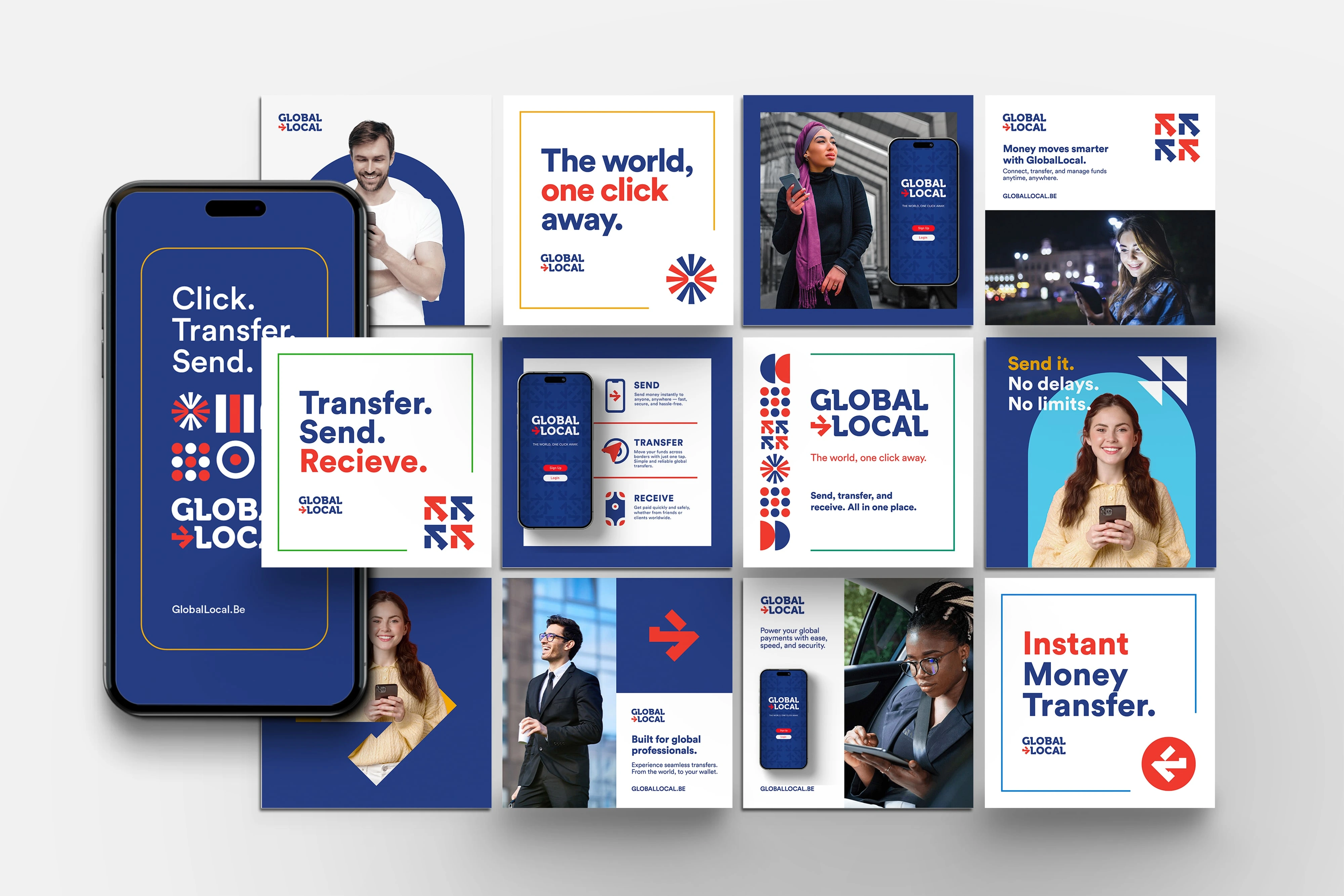 A newly designed logo for a startup money transfer brand focusing on a youthful, versatile, and modern aesthetic look to appeal to young users in Belgium.