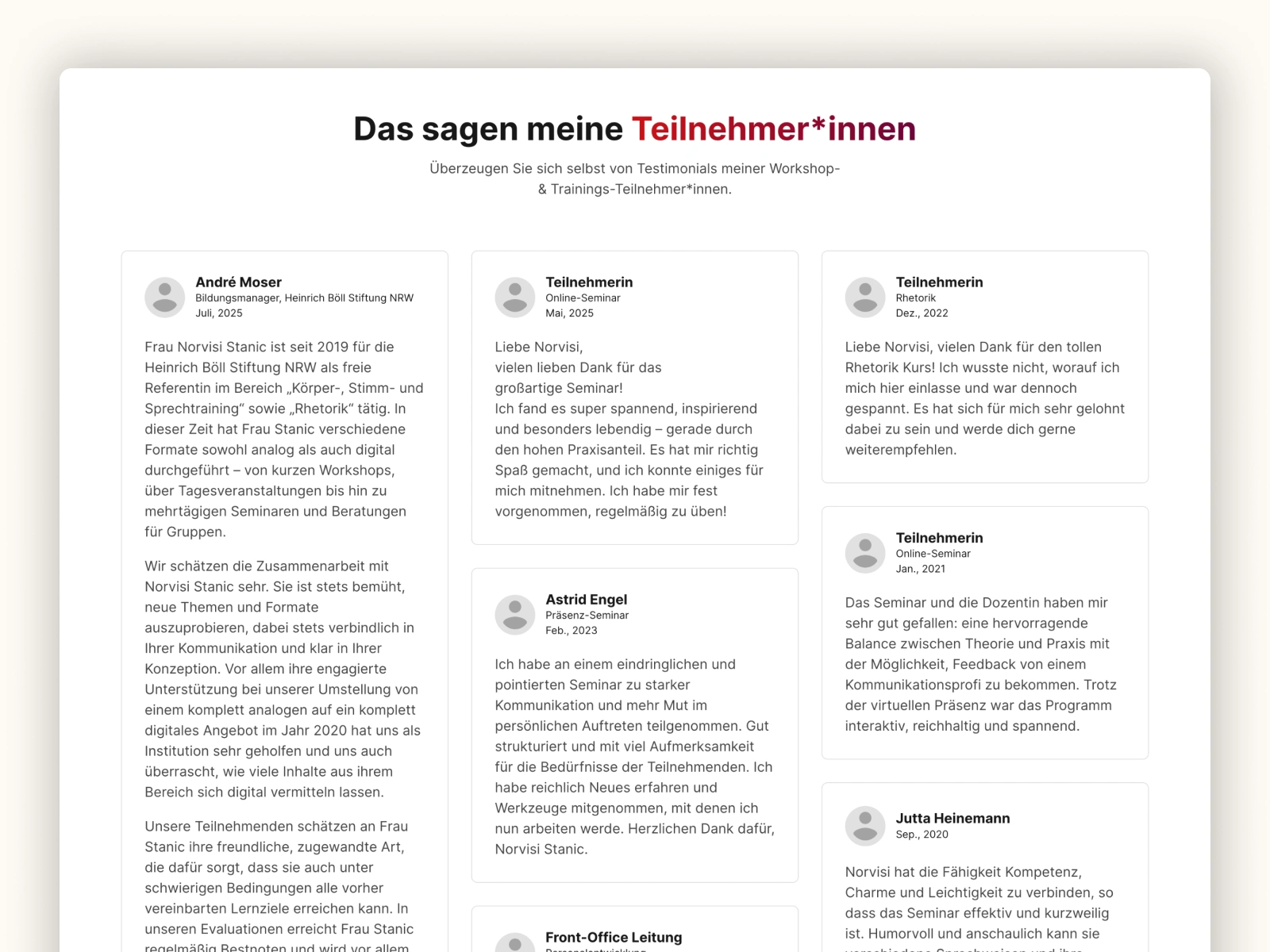 "Working with Markus was reliable and completely straightforward. Despite the physical distance, he quickly gained a very good understanding of my wishes and ideas and implemented them excellently. I would particularly like to highlight the quick and pragmatic support he provided with unexpected issues that were not originally part of the project. In the end, my goal was achieved: a modern, harmonious design that I am completely satisfied with and am happy to present to potential customers and other interested parties. I would recommend him anytime – because of his professionalism, flexibility and the great result."