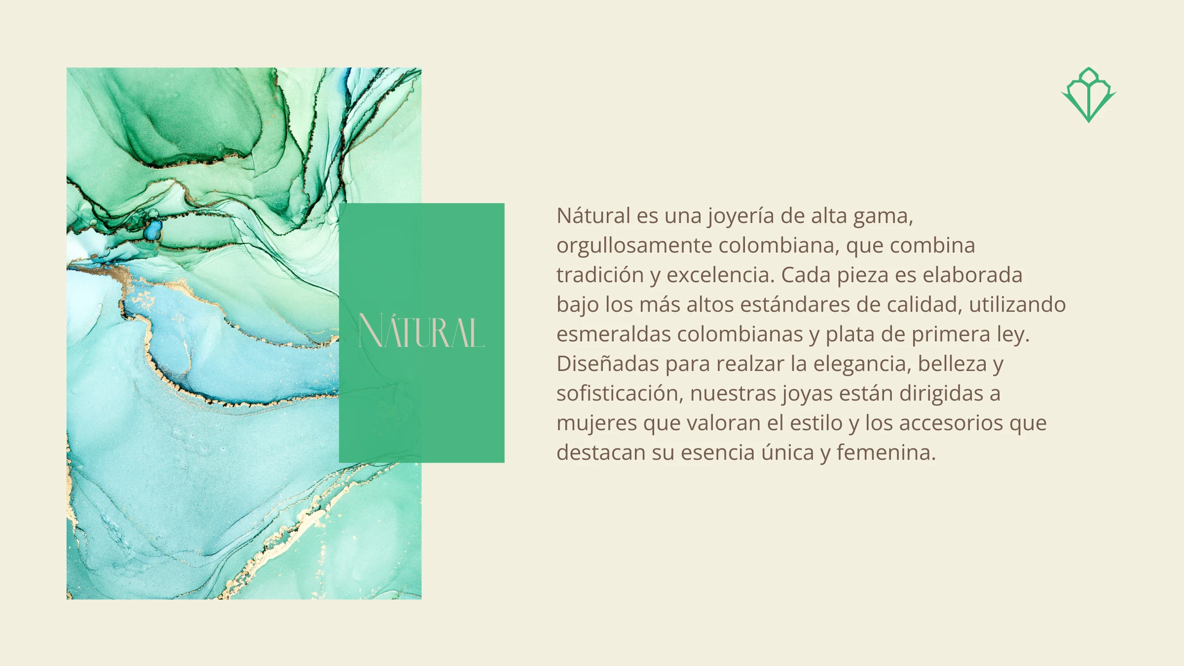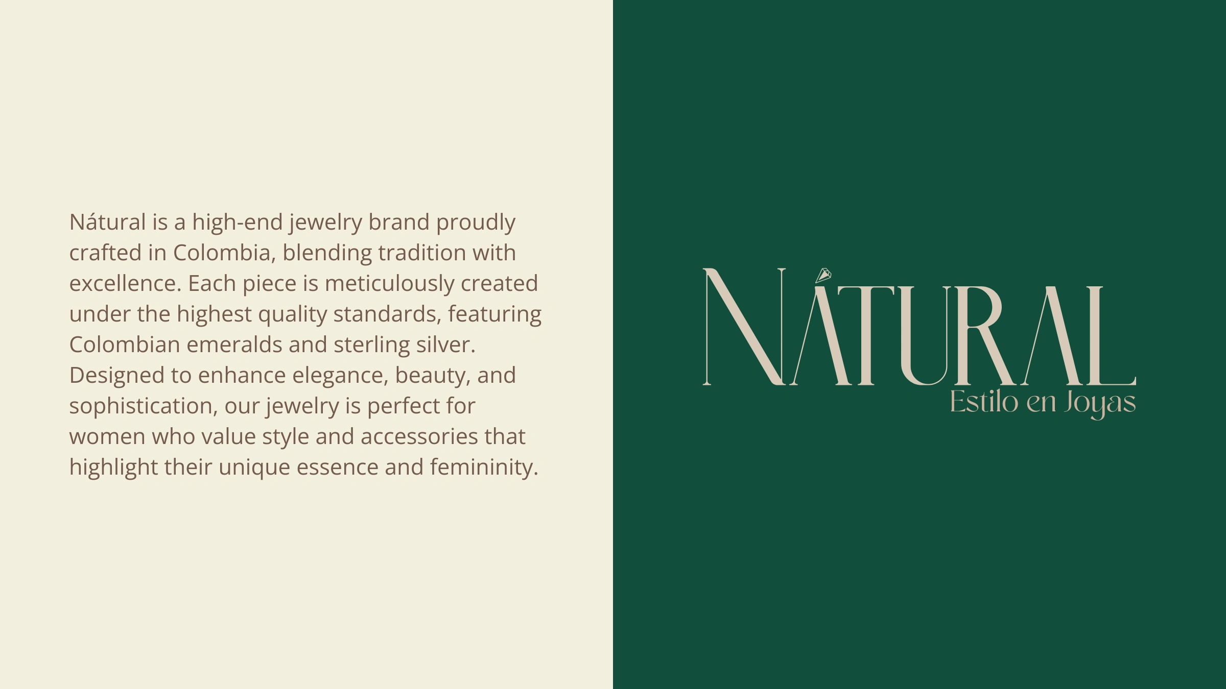 I had the privilege of collaborating with Nátural, a high-end jewelry brand that celebrates the tradition and excellence of Colombian craftsmanship. This project focused on crafting the digital identity of the brand, highlighting its unique value: exquisite jewelry made with Colombian emeralds and sterling silver, designed for women who embrace style, elegance, and sophistication.