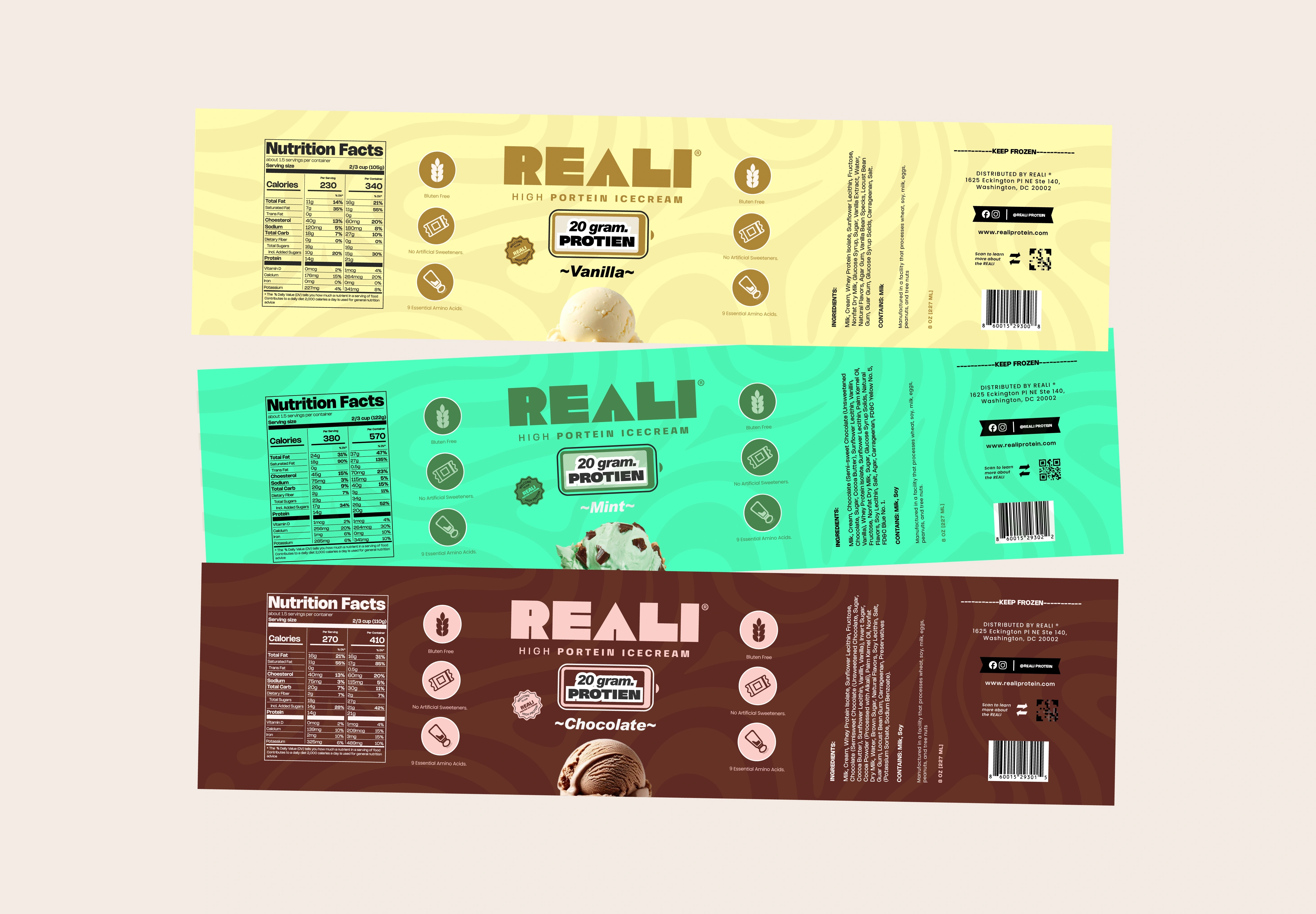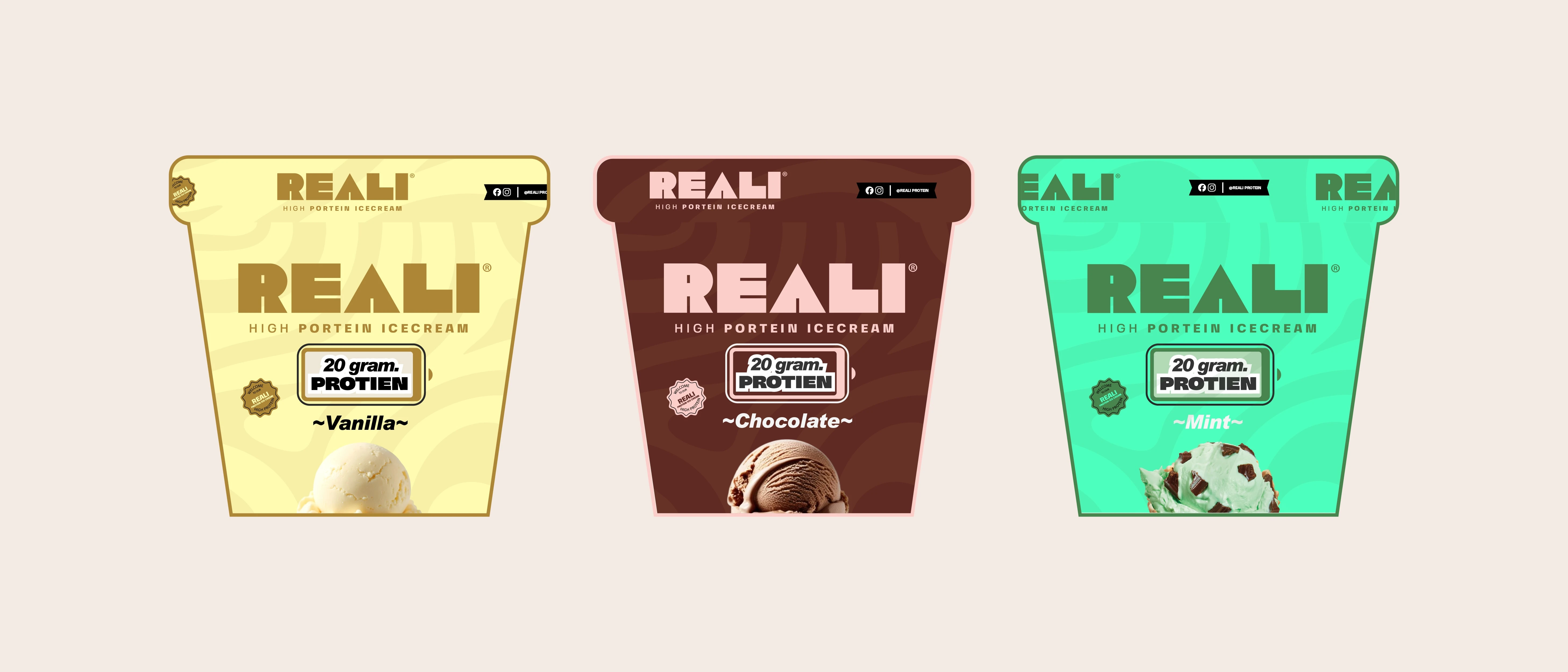 REALI is a modern functional food brand built on the belief that true indulgence comes from discipline, not compromise. Born from a mindset shaped by high-level athletics, REALI carries a quiet, grounded confidence strong without being loud, premium without being pretentious. It exists to close the gap between performance and pleasure, delivering high-protein ice cream that fuels the body while still feeling like a real treat