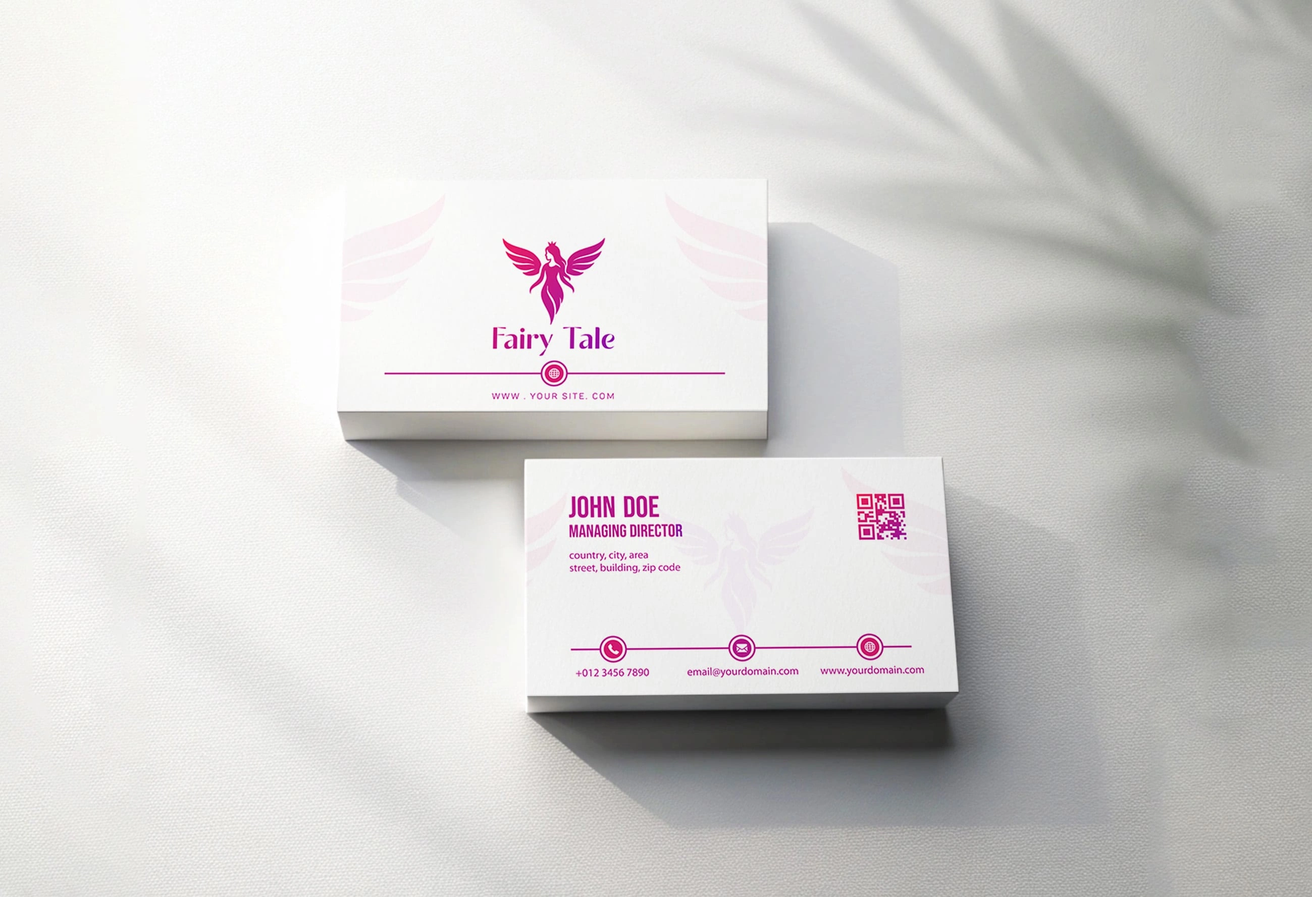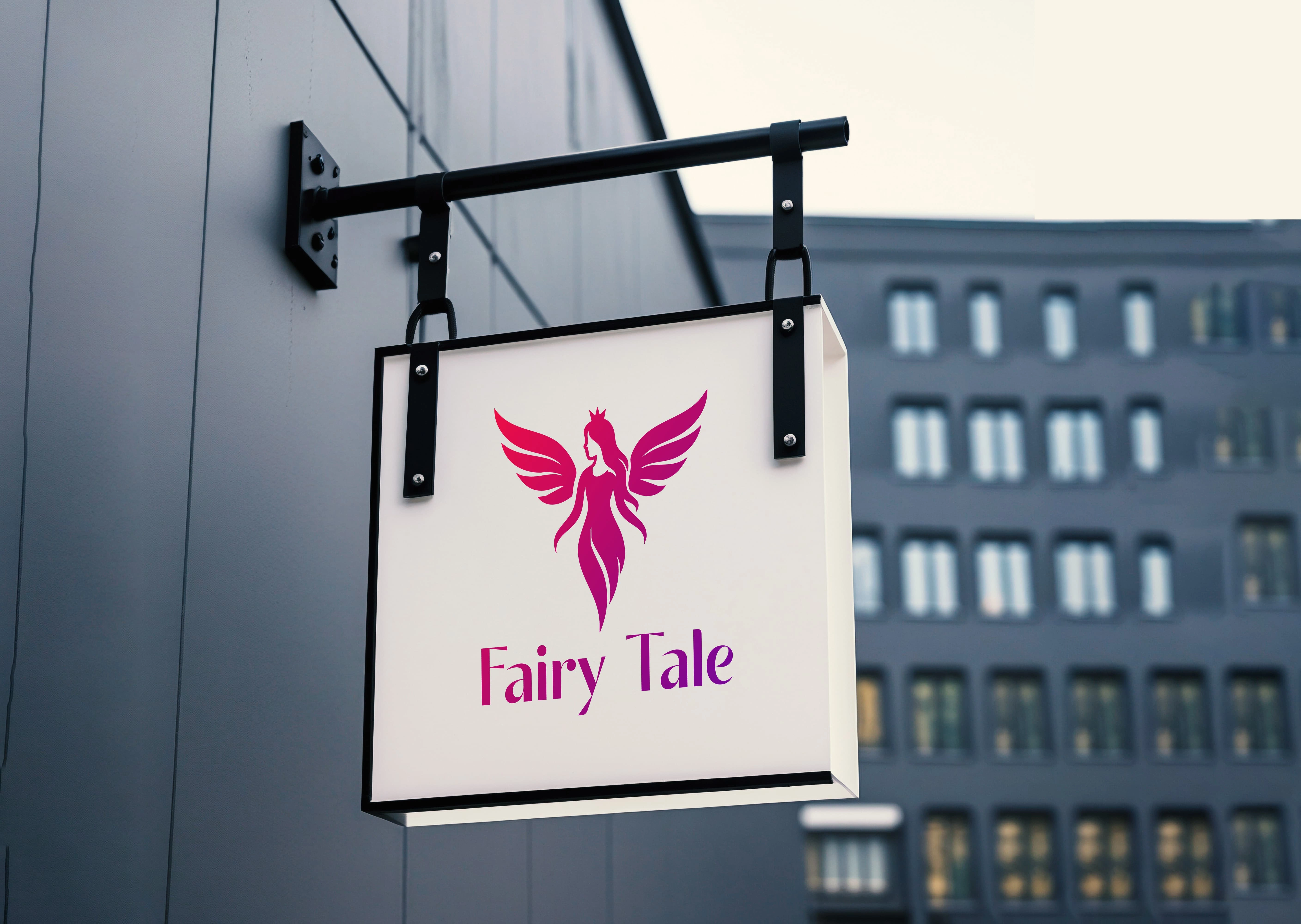 The logo features a stylized, elegant silhouette of a winged fairy figure, rendered in a vibrant gradient of magenta and purple hues. The fairy has flowing hair and a crown, suggesting royalty or enchantment, with outstretched wings that convey grace and freedom. Below the figure, the brand name "Fairy Tale" is displayed in a matching gradient font, combining whimsical and modern typeface elements to evoke a sense of fantasy, magic, and creativity. The black background enhances the vivid colors and gives the design a bold, striking appearance.