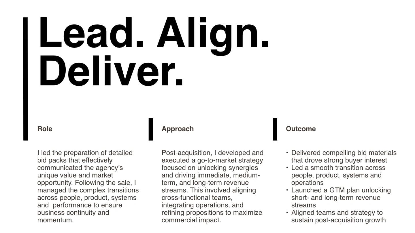 Vision Sold: Led strategic positioning, commercial storytelling, and post-acquisition execution to unlock growth and deliver seamless transition.