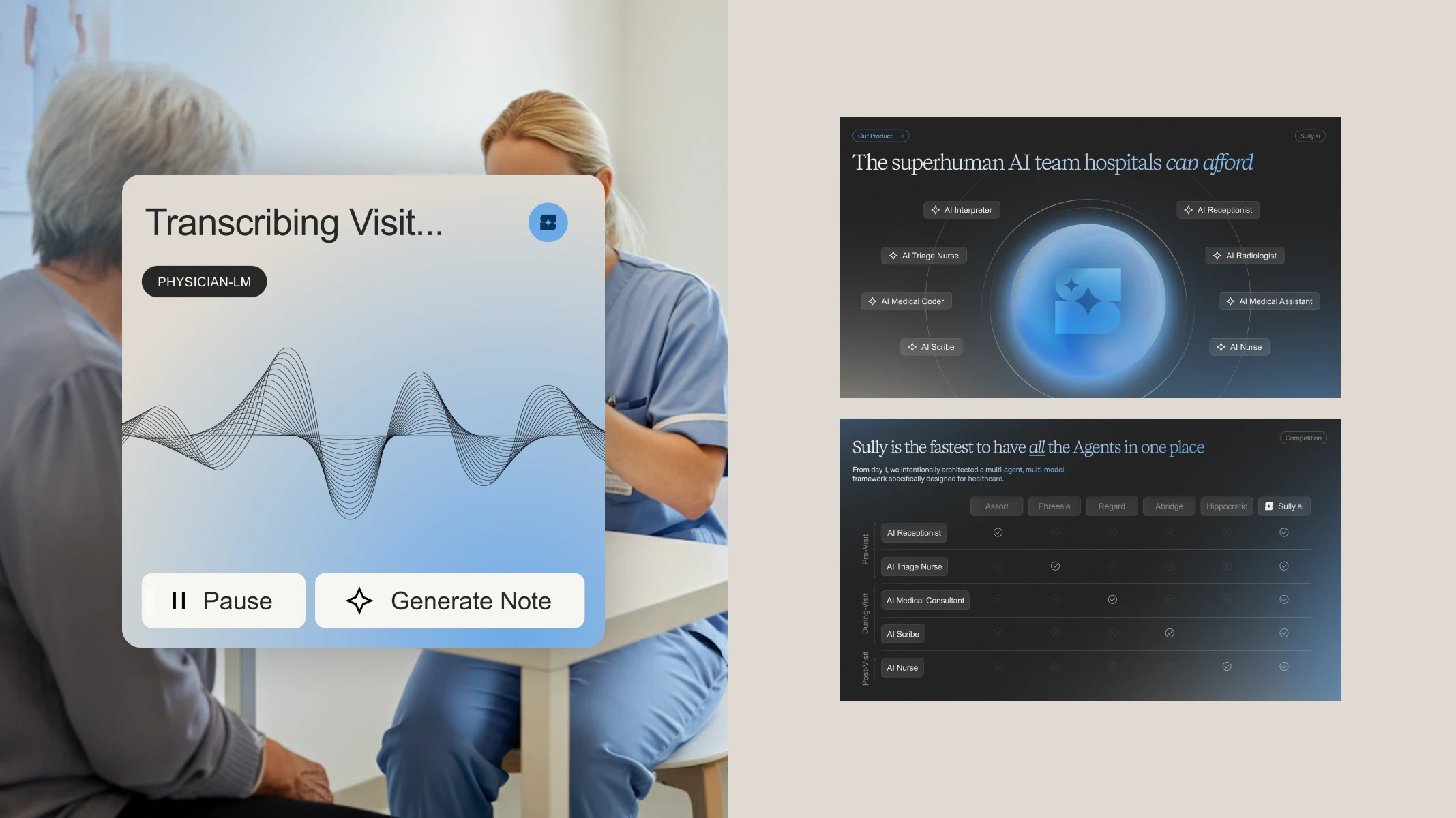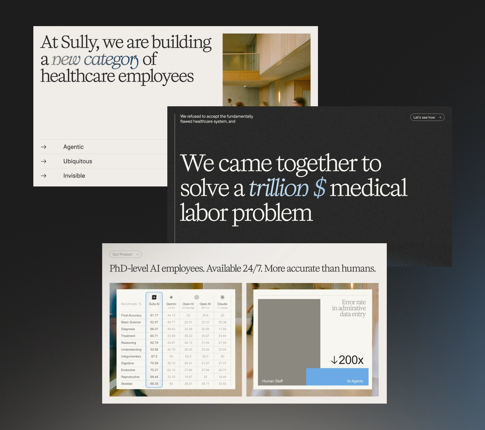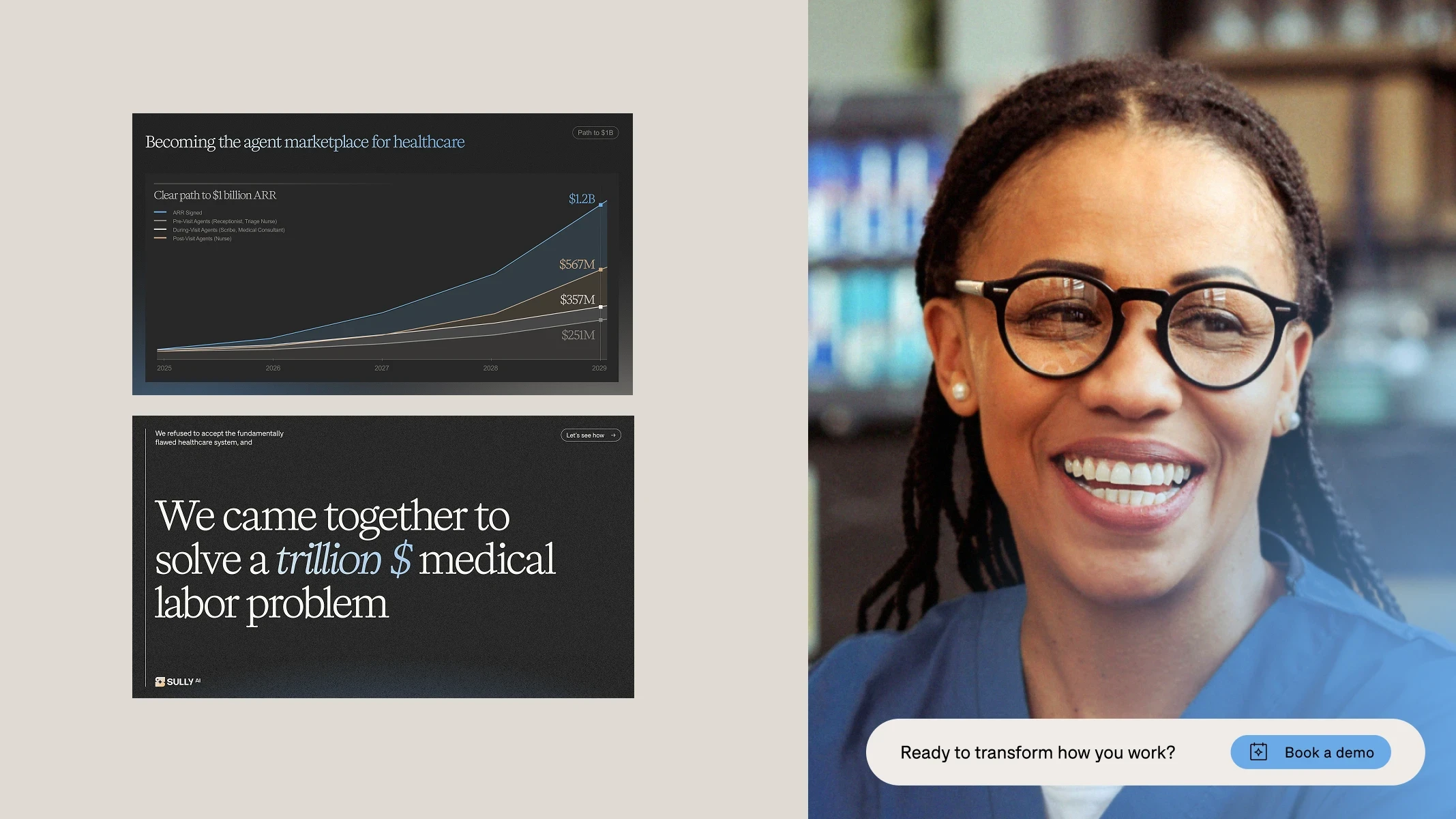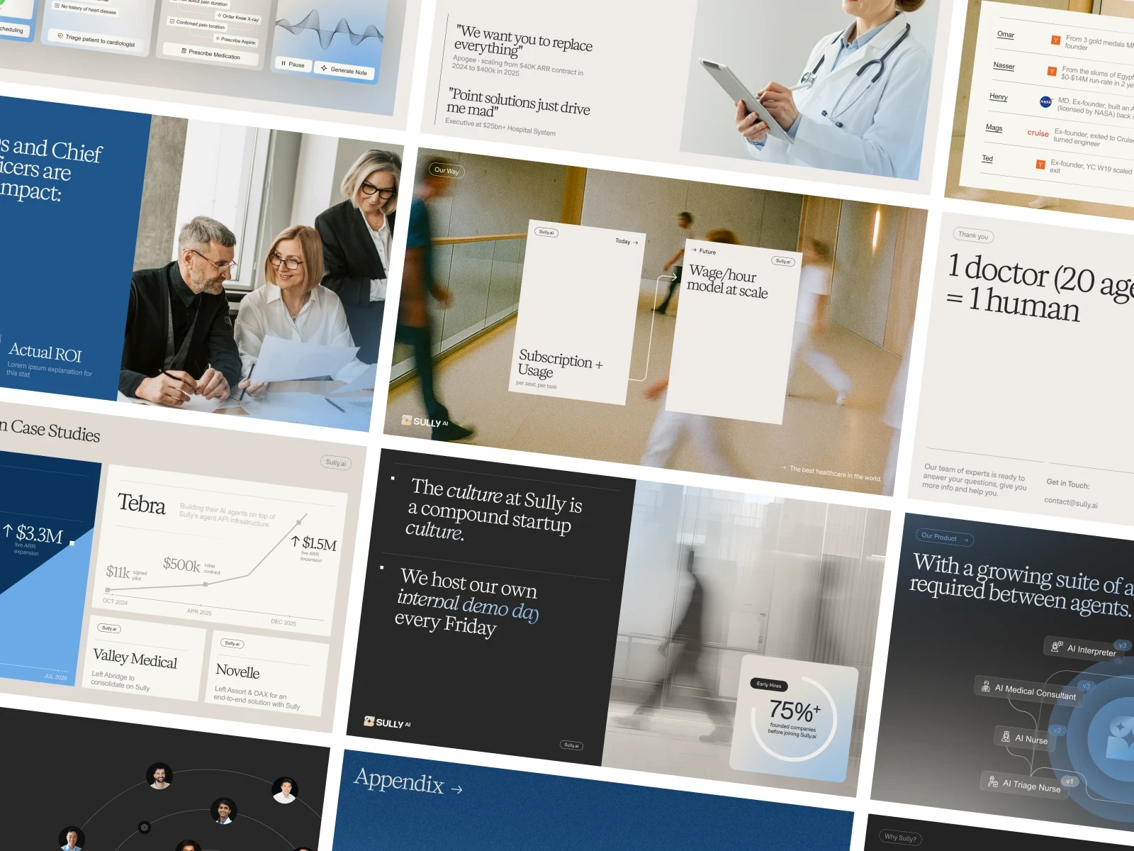 Sully.ai, an AI healthtech startup revolutionizing patient care with AI-powered agency teams of integrated AI-employees for healthcare providers, needed an impactful, on-brand pitch deck to support their Series B fundraising round.