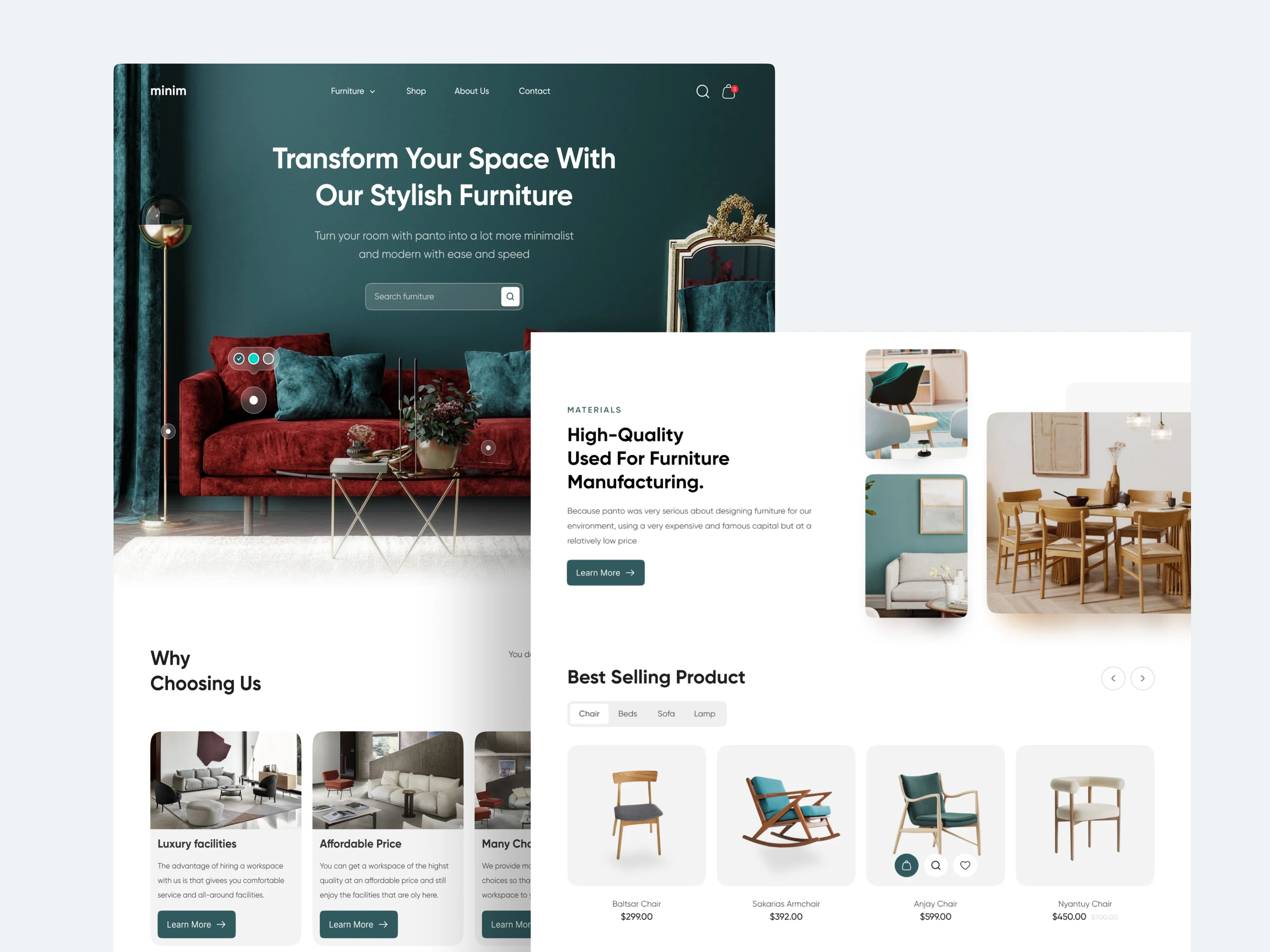 Excited to share our latest design for Minim, a sleek and stylish furniture landing page! This design blends minimalism with functionality, offering a smooth browsing experience for users looking for modern and modular furniture.