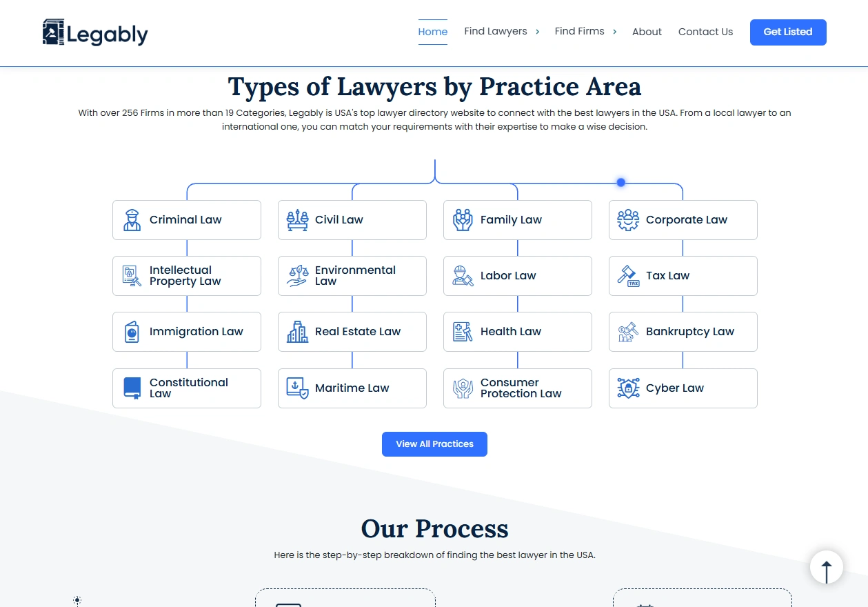 Comprehensive Lawyer Directory: Developed an extensive, categorized database of verified attorneys and firms across multiple legal domains and U.S. states.
