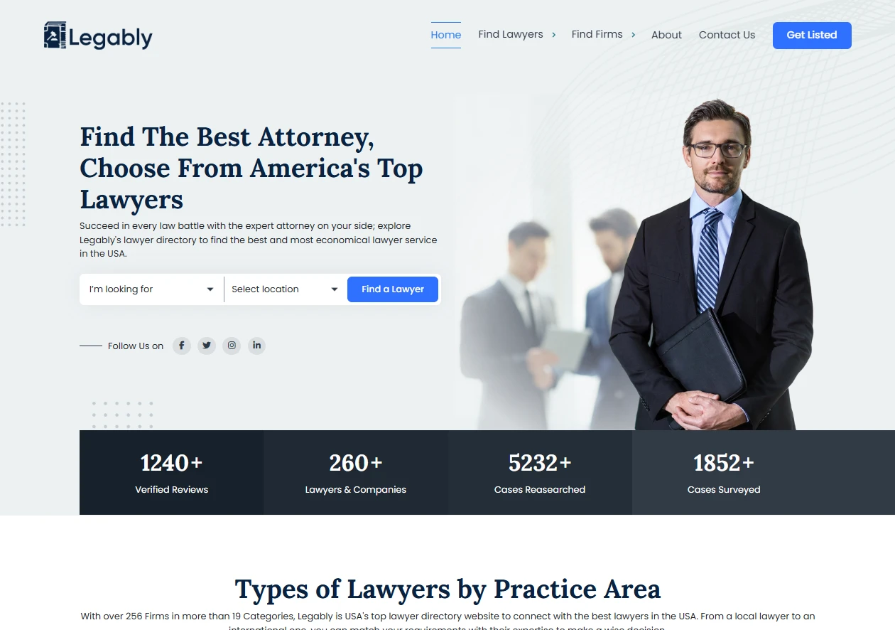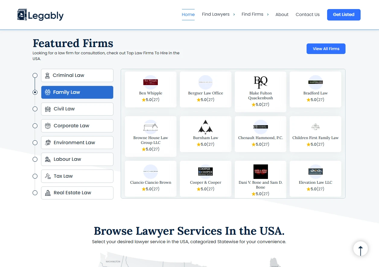 Legably.com is a national legal services marketplace and lawyer directory connecting clients with verified attorneys and law firms across the United States. The platform simplifies how individuals and businesses find, evaluate, and connect with legal professionals across diverse practice areas such as family law, criminal defense, business law, real estate, immigration, and more.