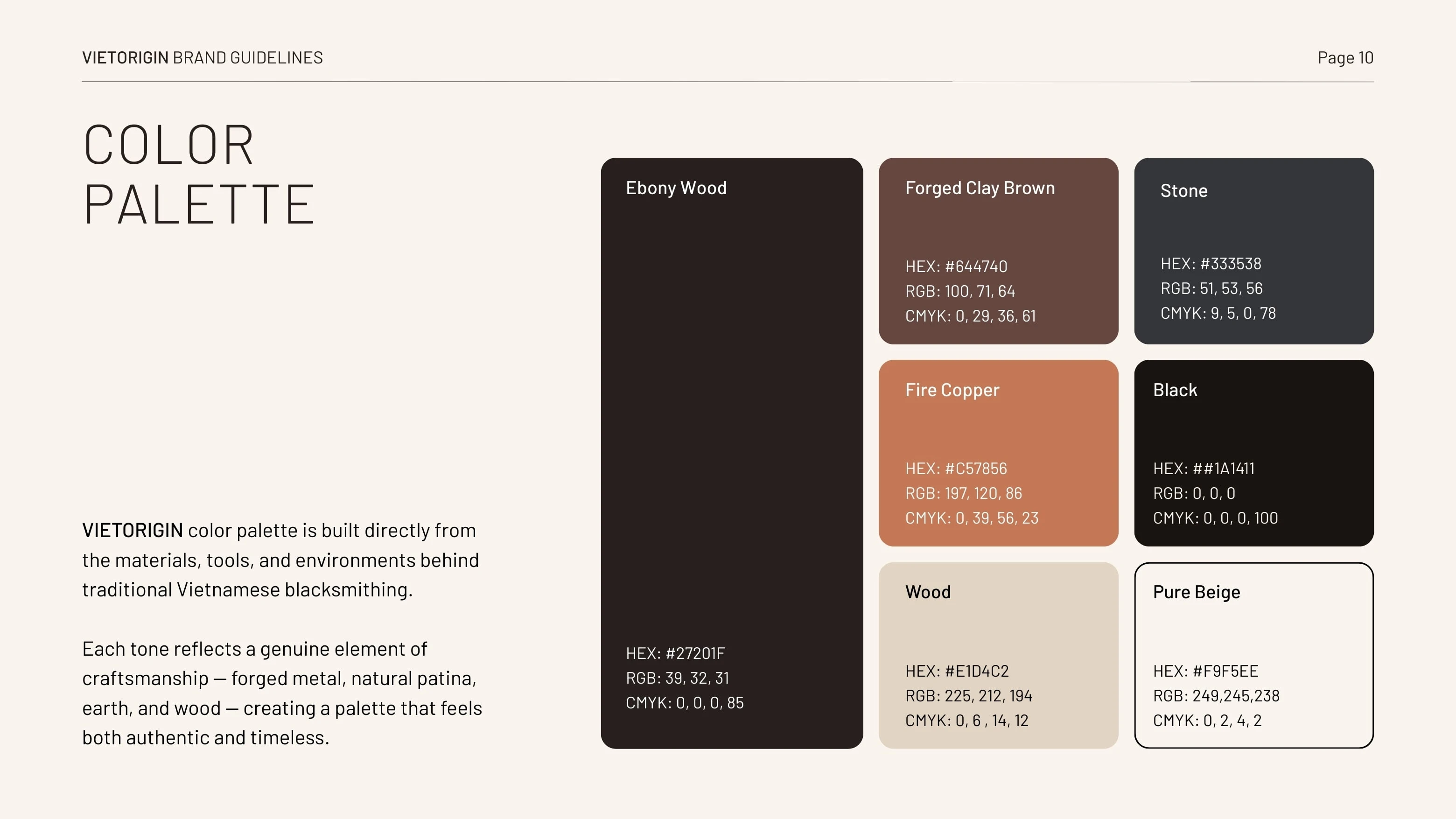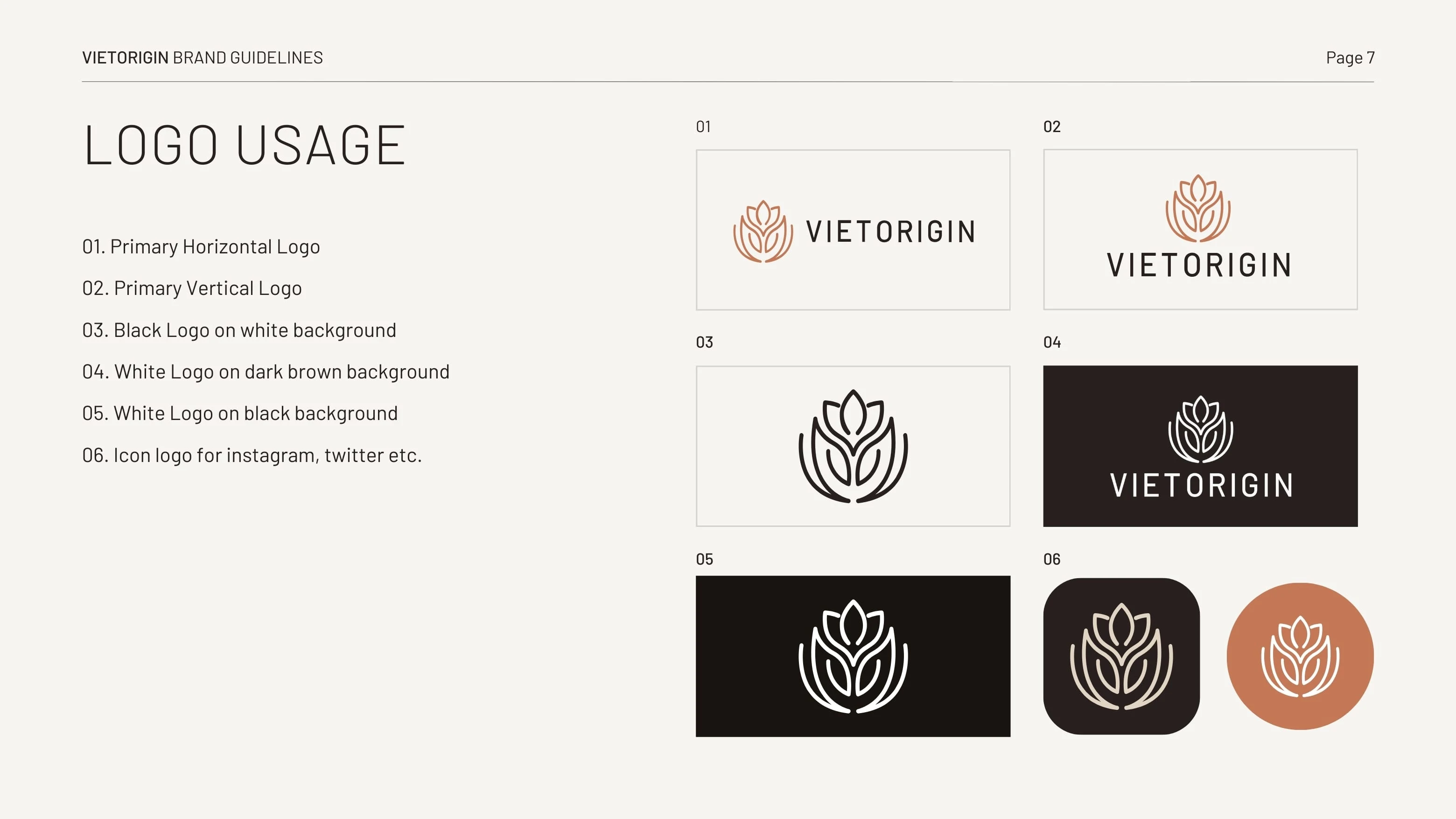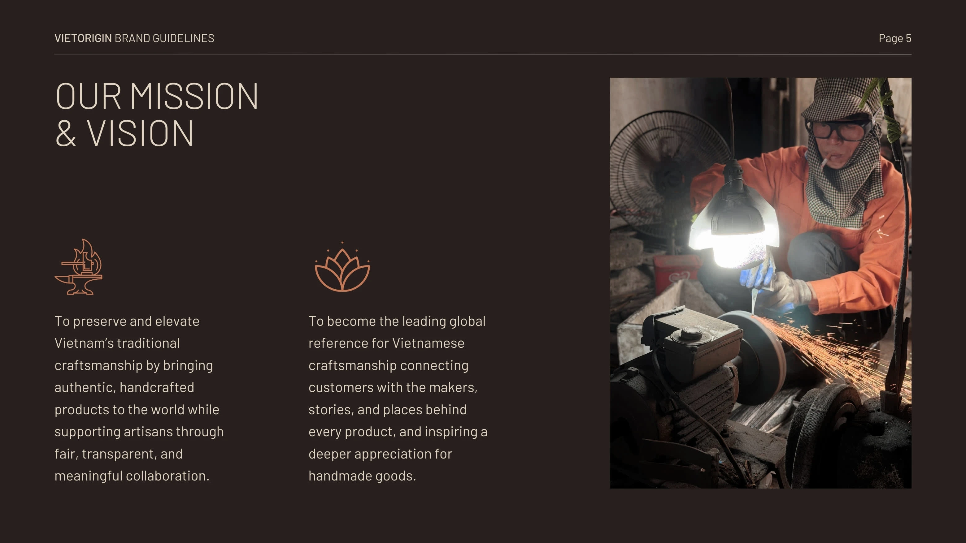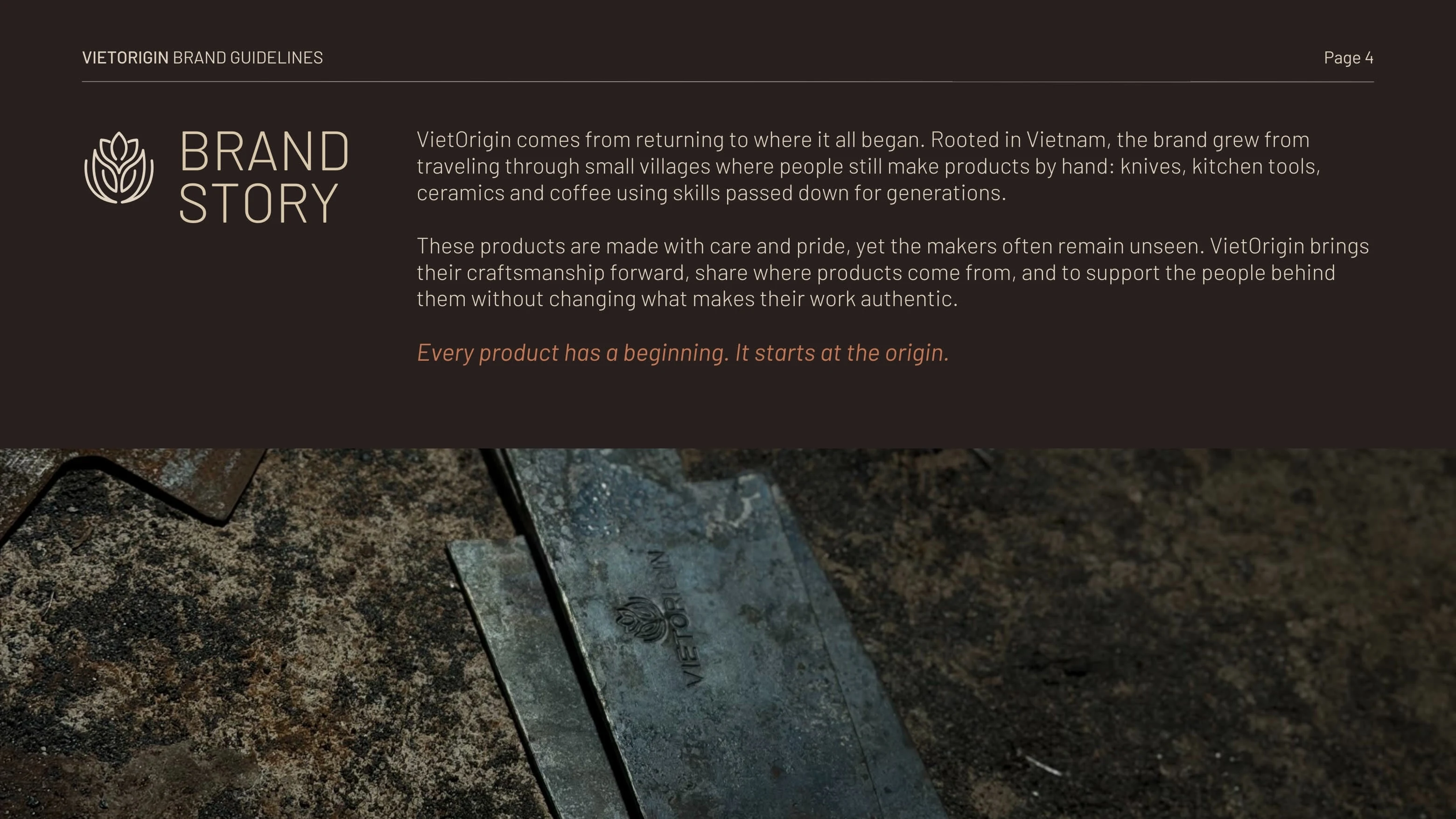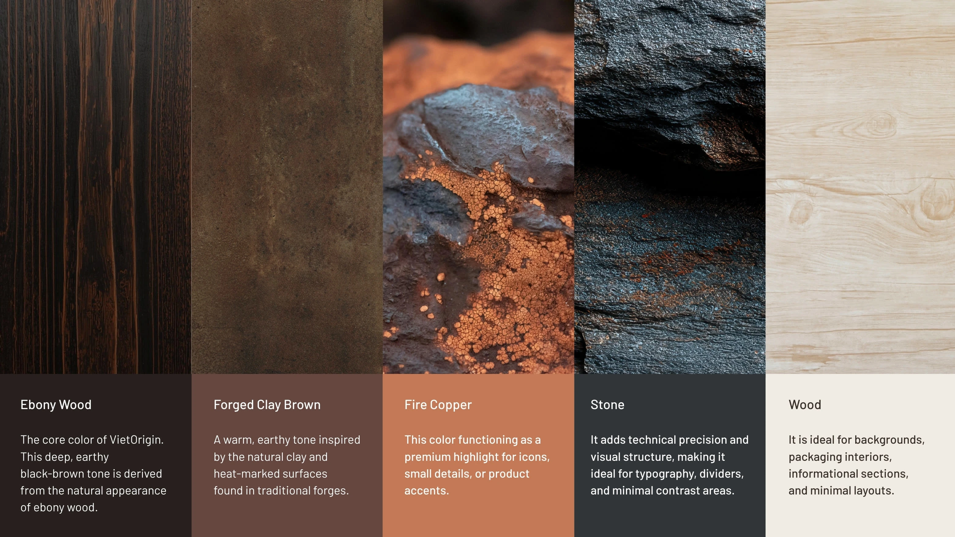 Developed comprehensive brand guidelines for VietOrigin, highlighting craftsmanship, authenticity, and origin to ensure a cohesive and premium visual identity.