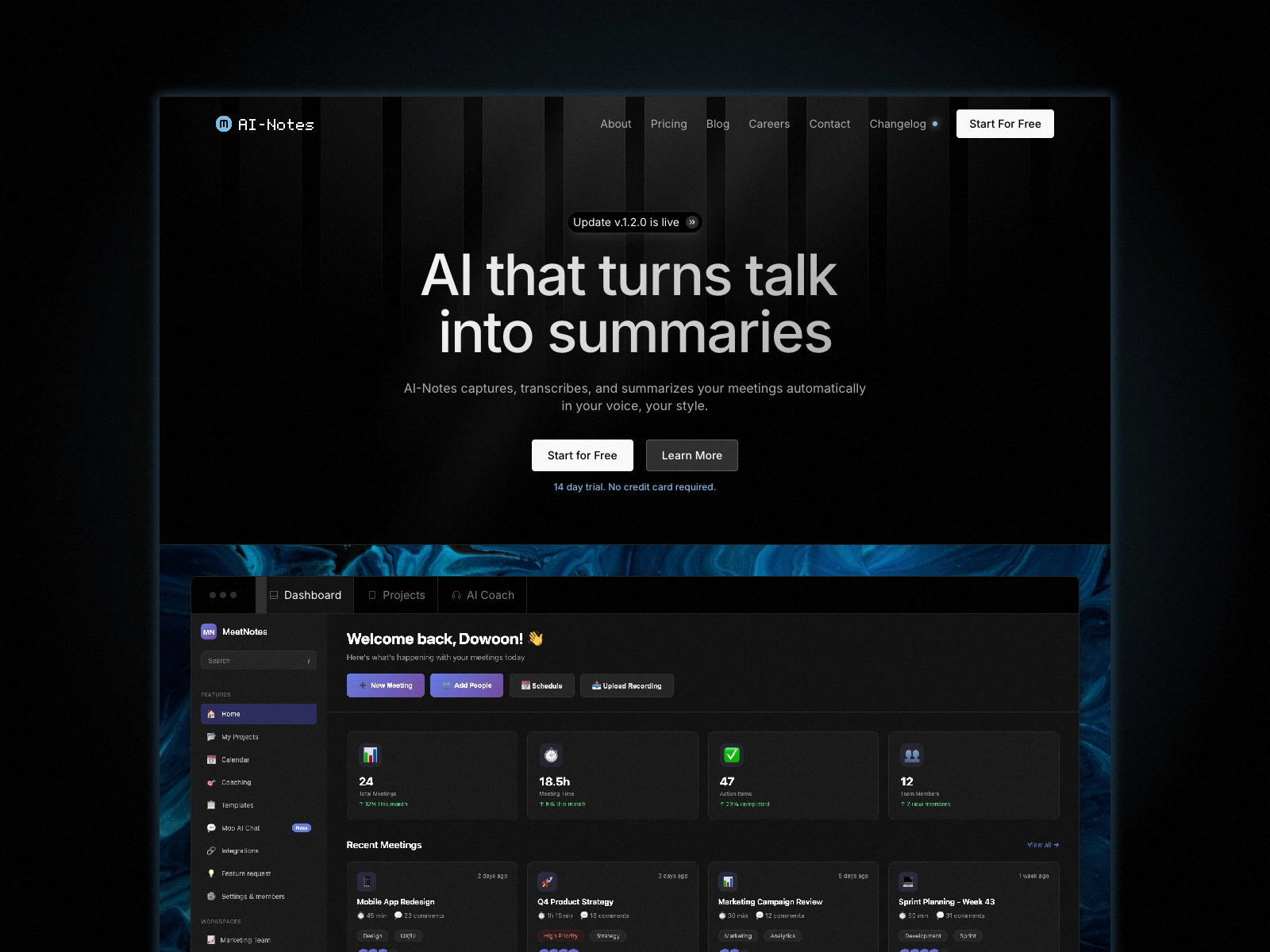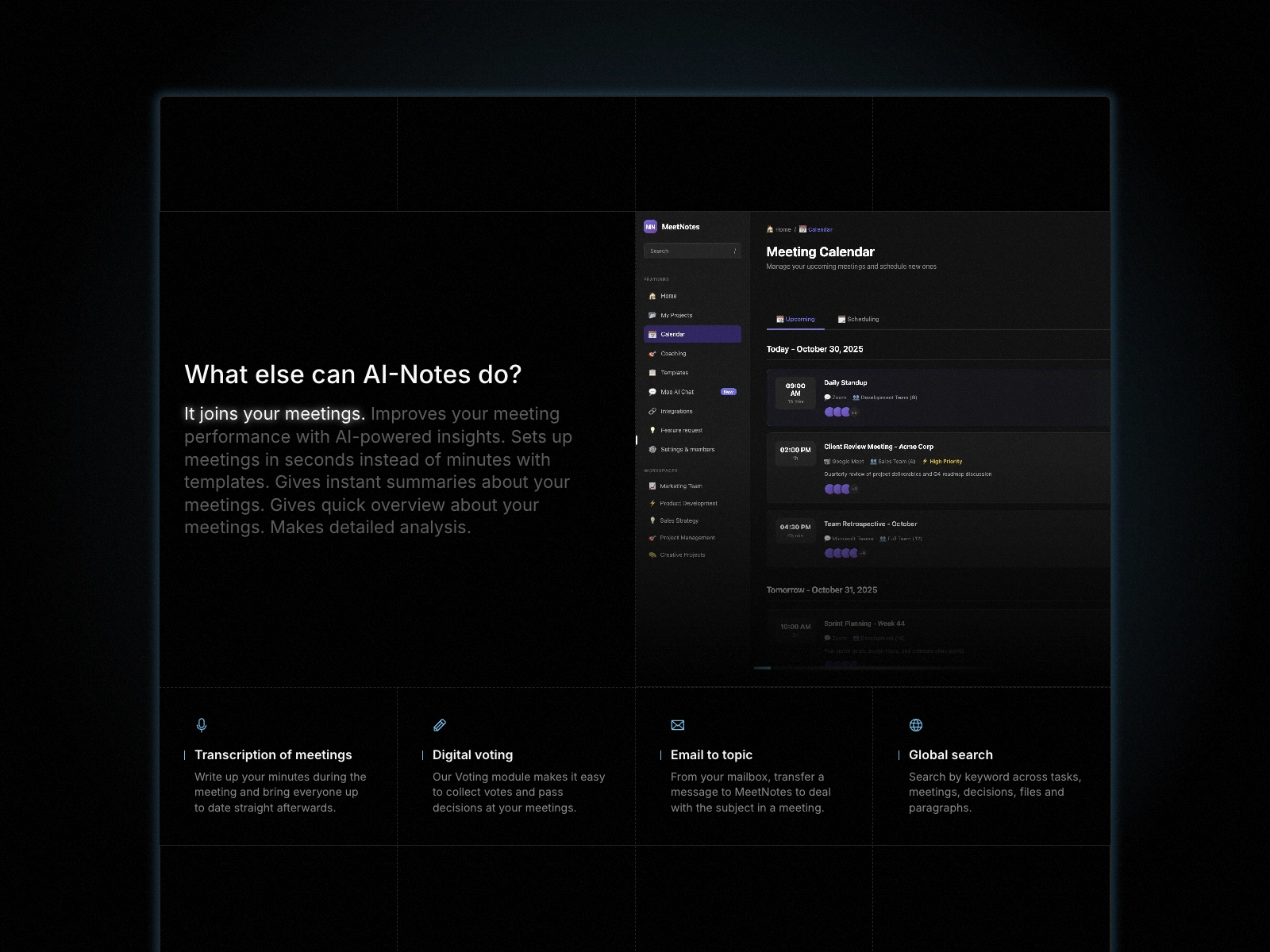 testimonials, product features, metrics and calls to action—all wrapped