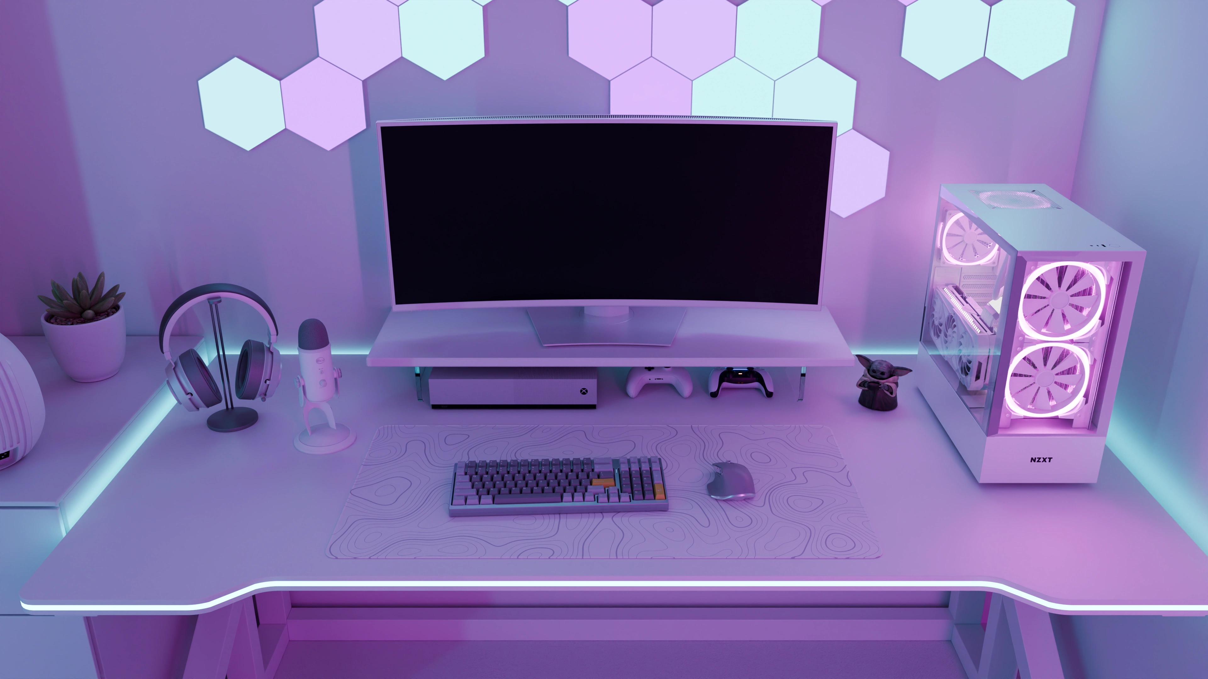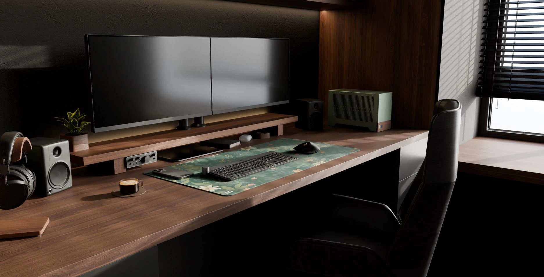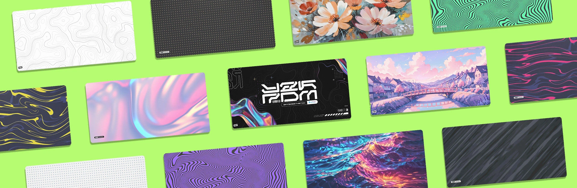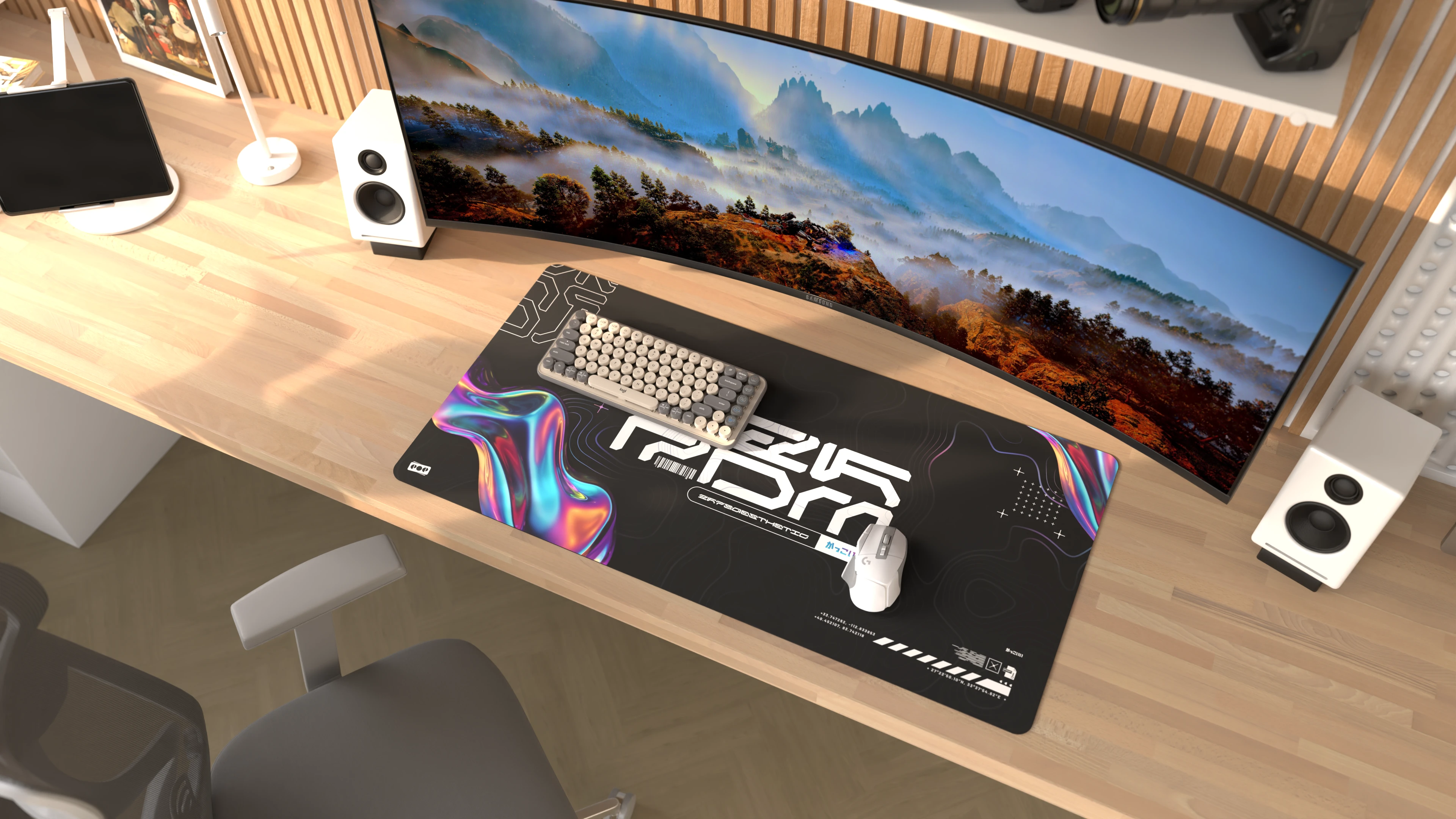 Every design was illustrated and prepared for large-format print (at least 200dpi), optimized for 36×18" mats. The artwork focuses on bold geometry, textures, abstract forms, and colorful pieces that resonate with gamers, designers, students and those who have the pleasure of working from home.