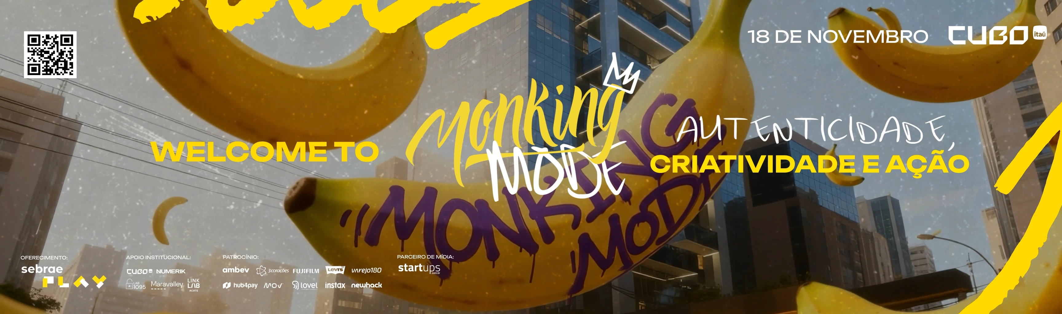 Together with Treehouz, I created a large scale entrance screen for Monking Mode. This project welcomed the audience into one of Brazil’s biggest events focused on innovation, creativity and artificial intelligence in communication. The piece highlighted six places where Monking had already been present, whether in congresses or major events, and presented them in a clear visual sequence that showed the path the company has taken. I designed the work to set the atmosphere right at the entrance, using motion and composition to guide the audience and connect technology with storytelling in a way that expressed the spirit of Monking Mode and its community.