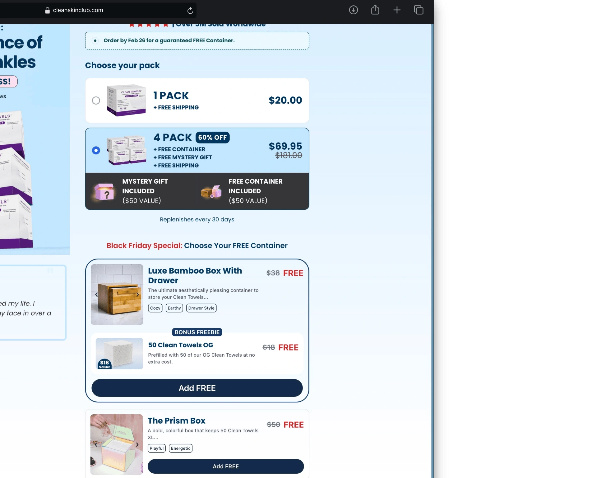 For the Shopify store, we wanted to break the $100 AOV ceiling. We designed an Offer Exclusive Lander that turned a simple transaction into an "Unmissable Event."