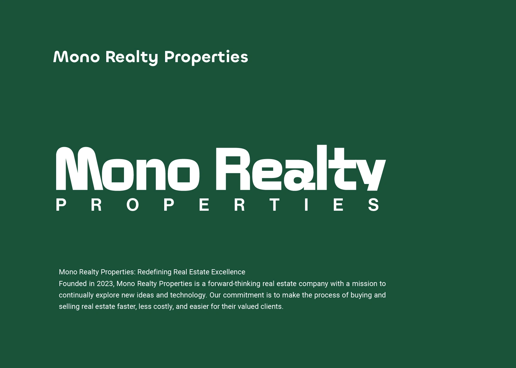 Brand identity design for Mono Realty Properties, a forward-thinking real estate firm making buying and selling homes faster, easier, and more affordable.