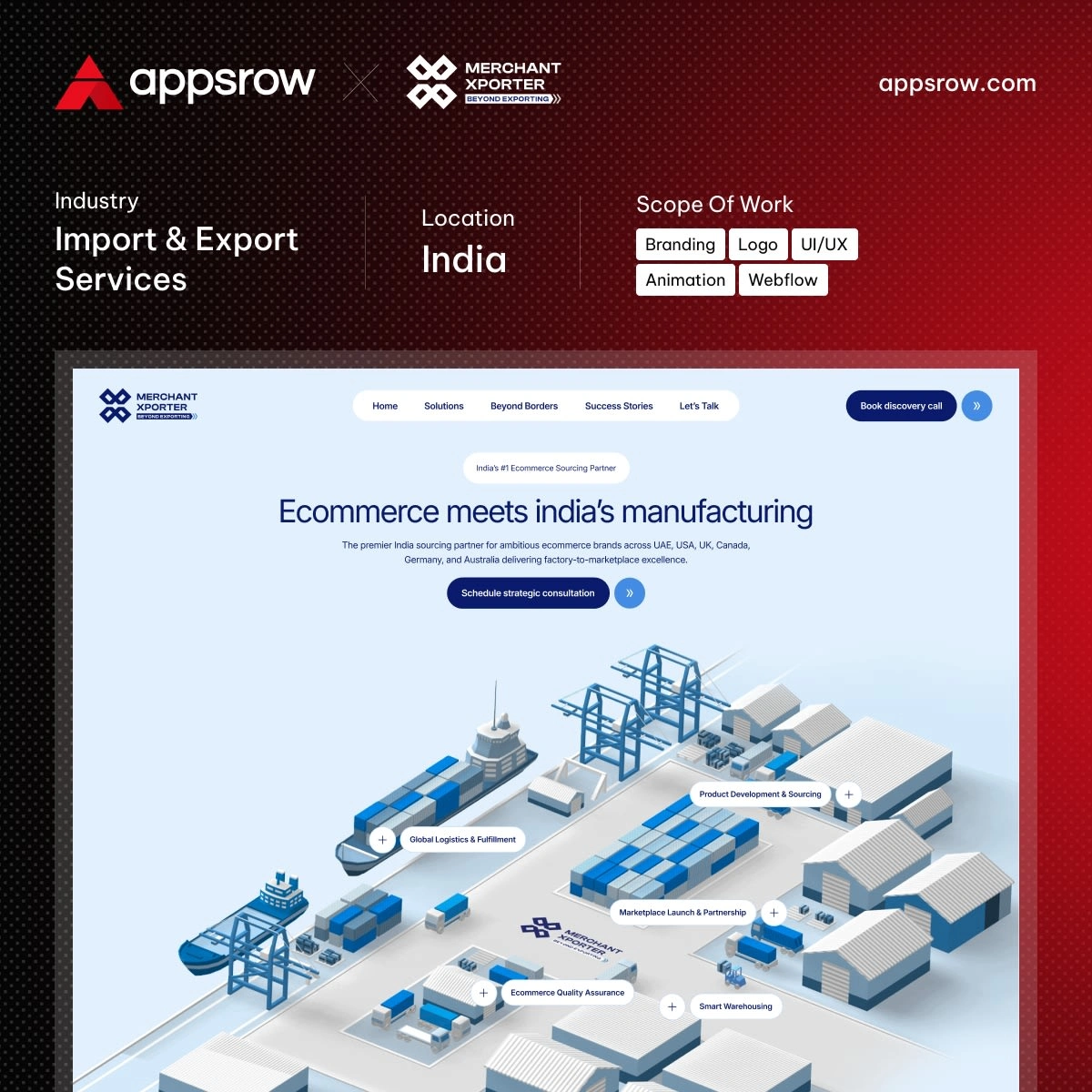 Developed a clear Webflow site for Merchant Xporters with engaging animations. I created a clean content structure supported by a high-performance Webflow build