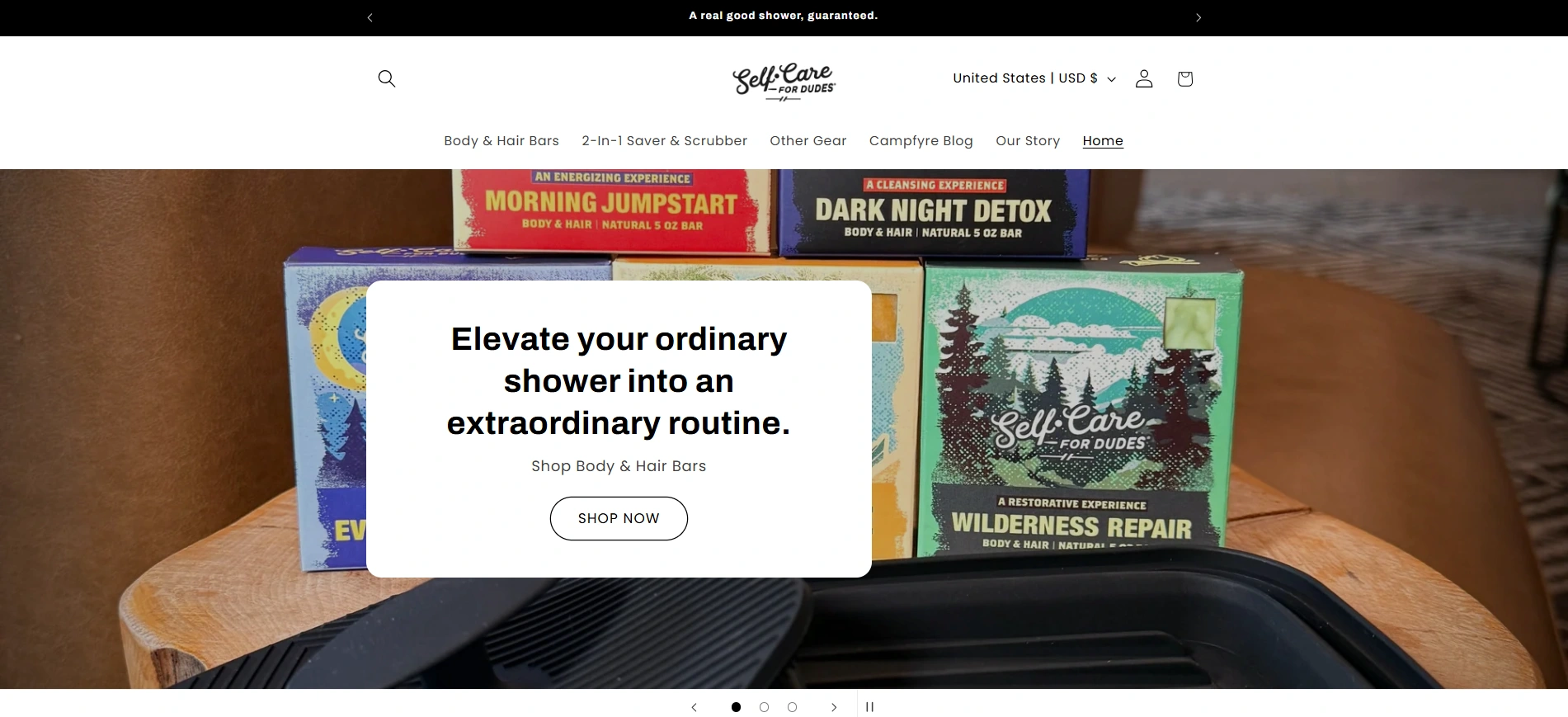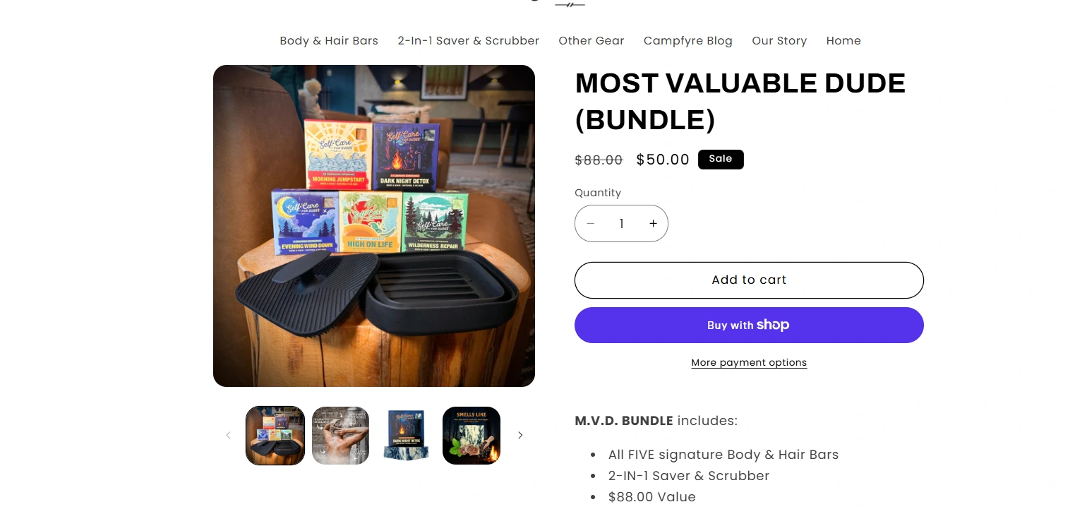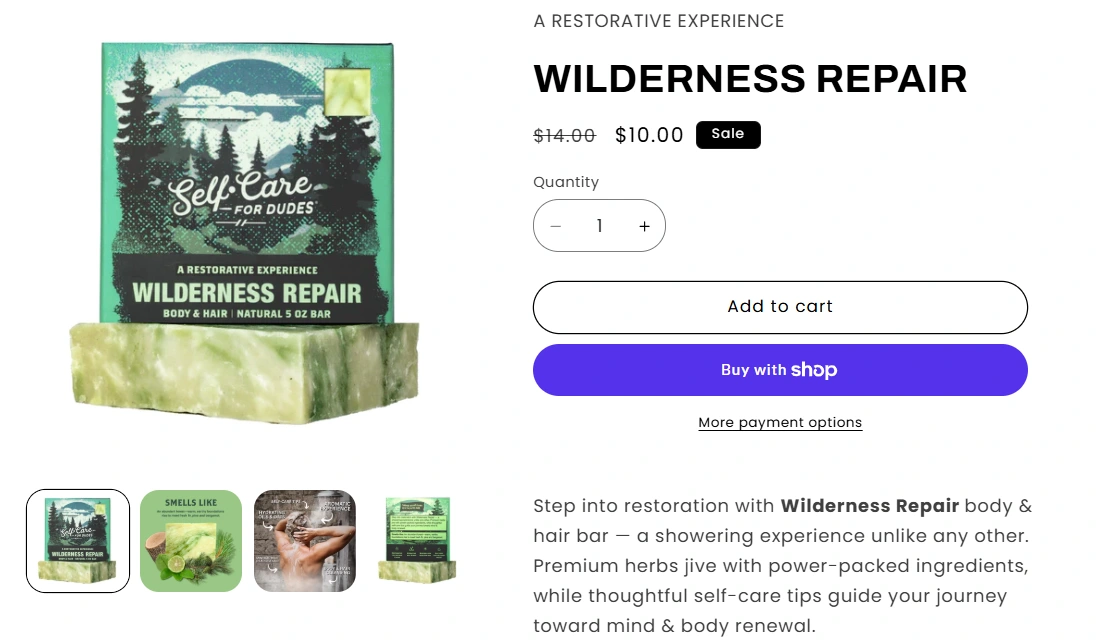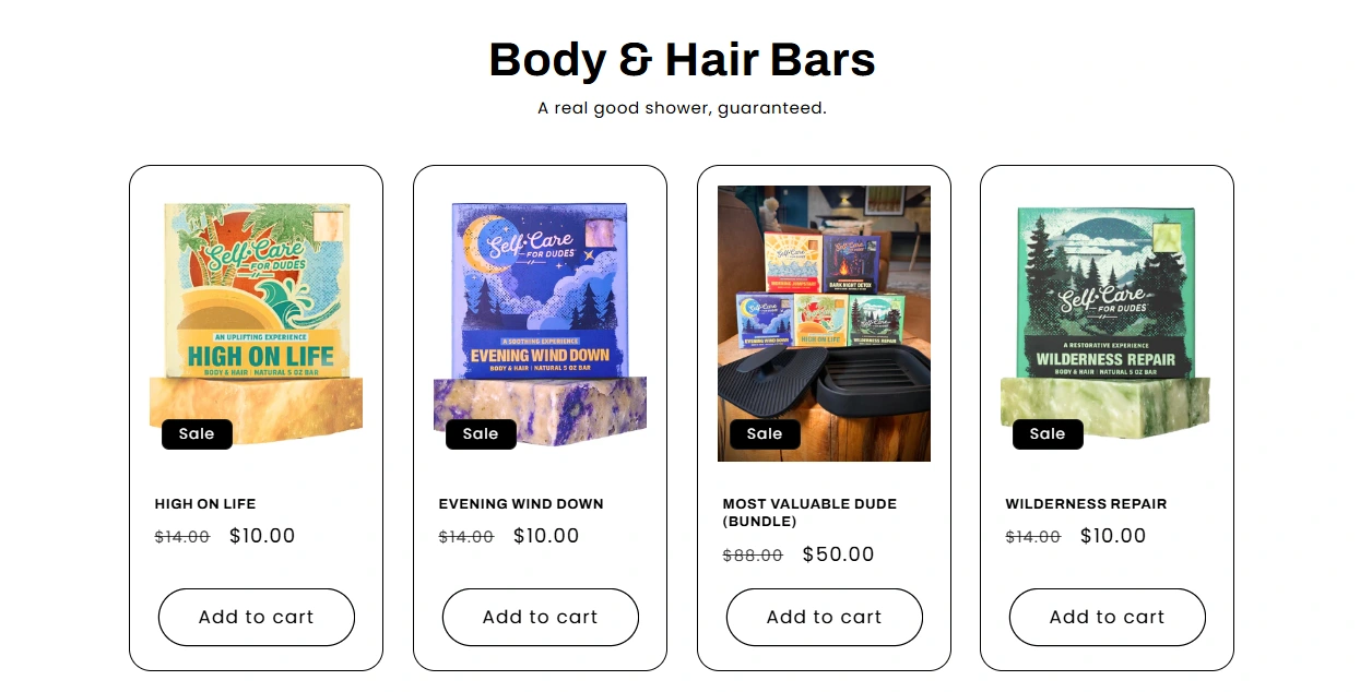 Self-Care for Dudes is a men’s grooming brand focused on natural, eco-friendly self-care products. The goal was to design and implement a Shopify store that felt clean, confident, and easy to navigate — while highlighting the brand’s fun, masculine identity.