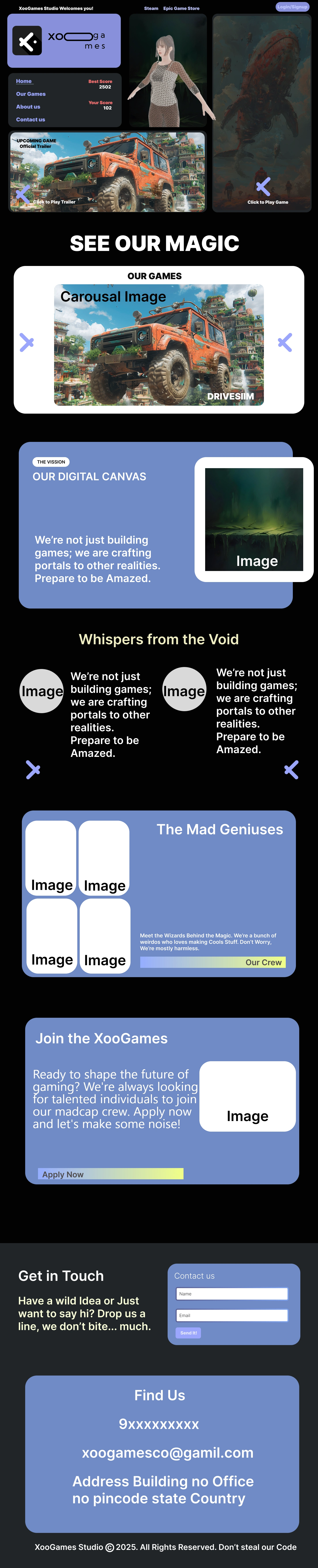 XooGames is a mythic game studio crafting immersive, story-driven experiences that blend surreal aesthetics with cinematic UI.