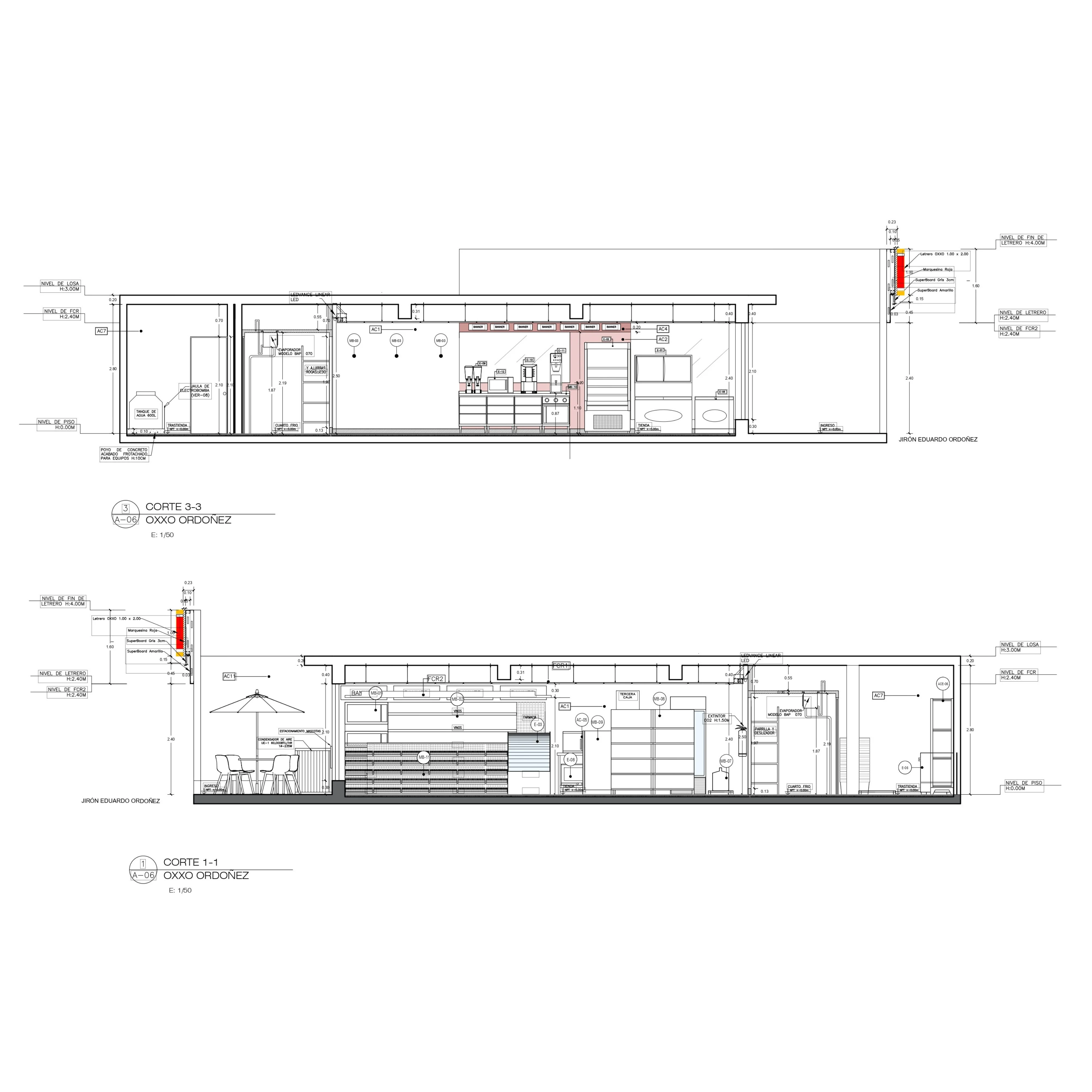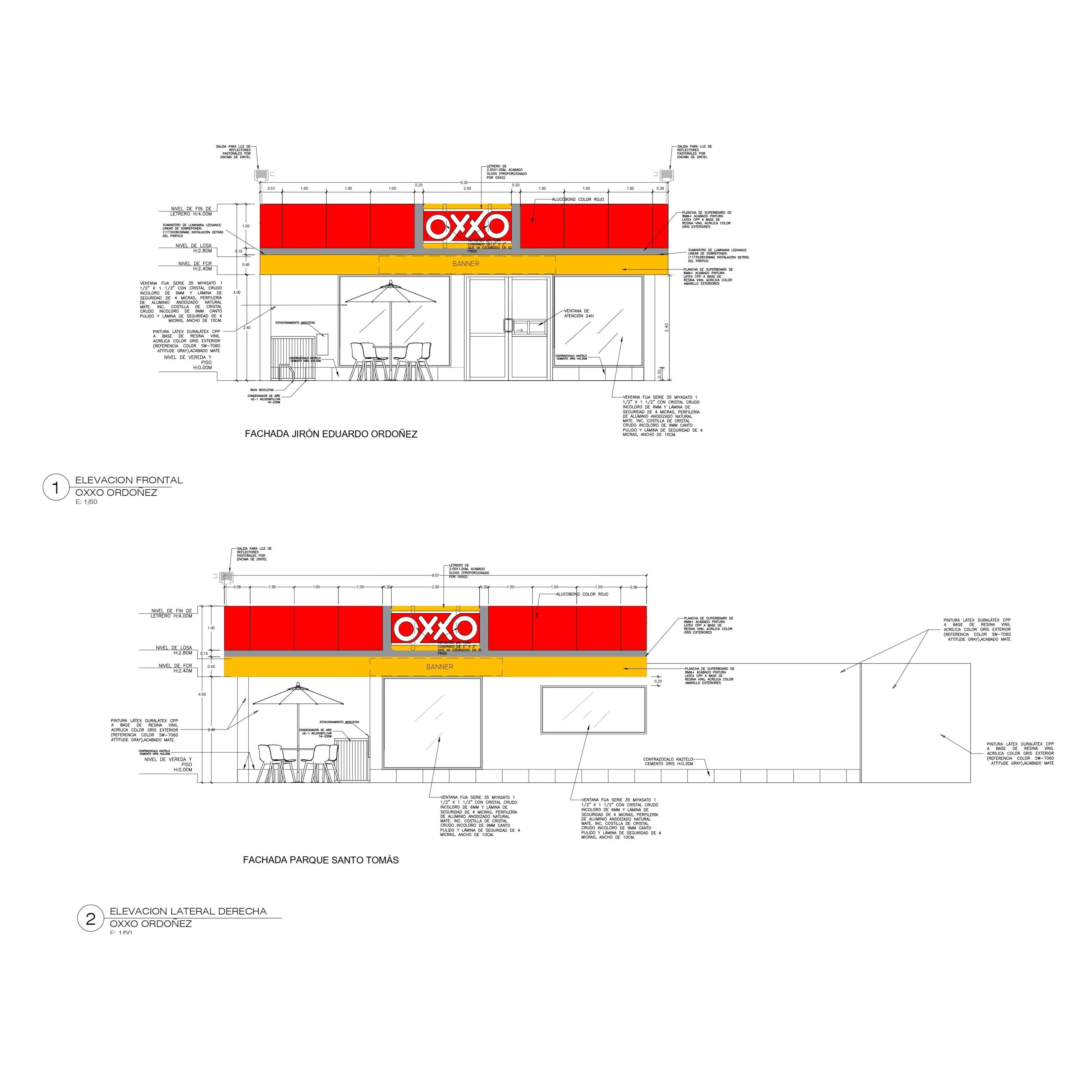 Floor plans, sections details, and elevations of the Oxxo convenience store chain