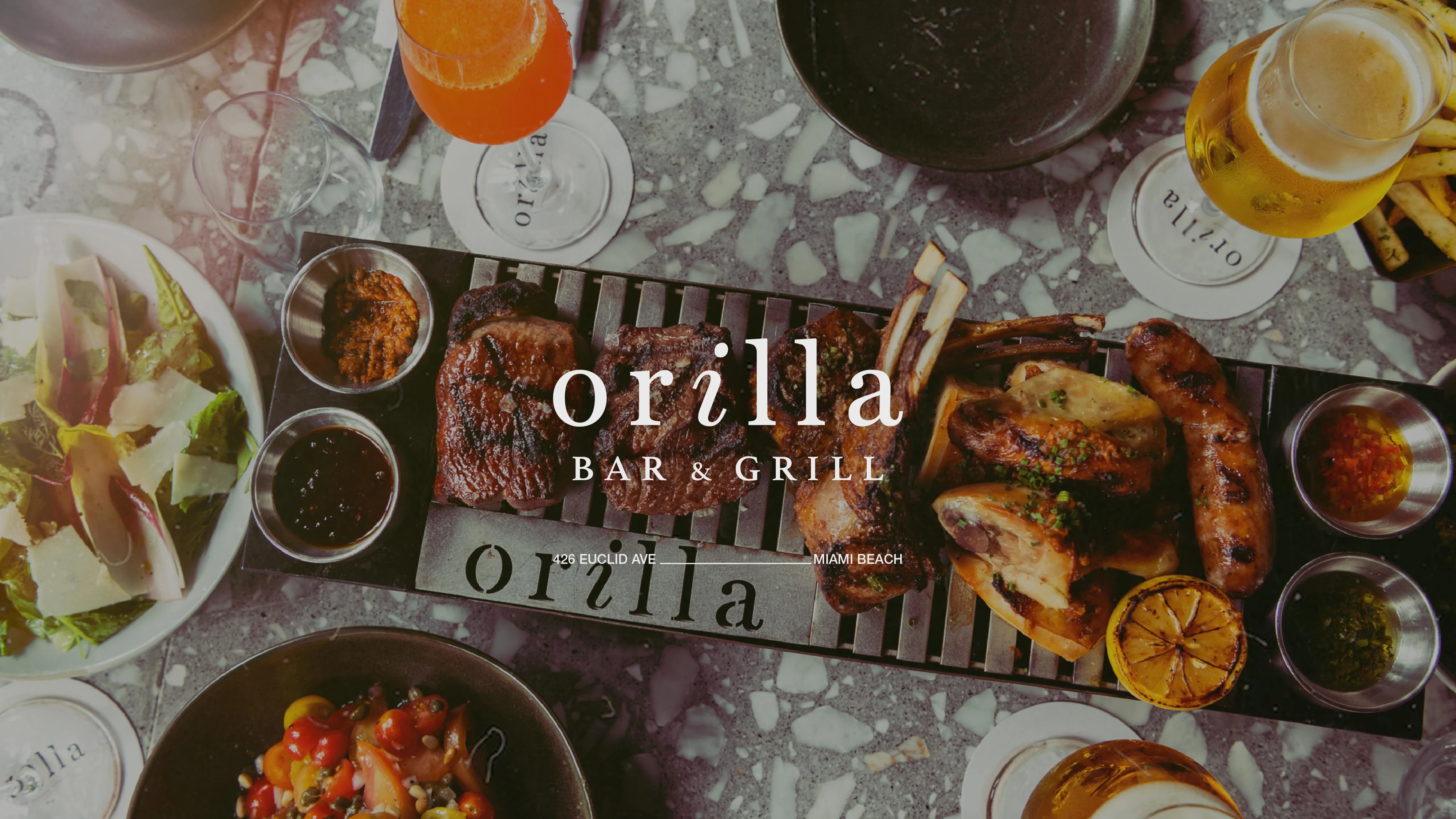 Brand management for upscale Miami restaurant, Orilla. Ensured premium identity consistency across physical collateral, menu systems, and dynamic digital assets