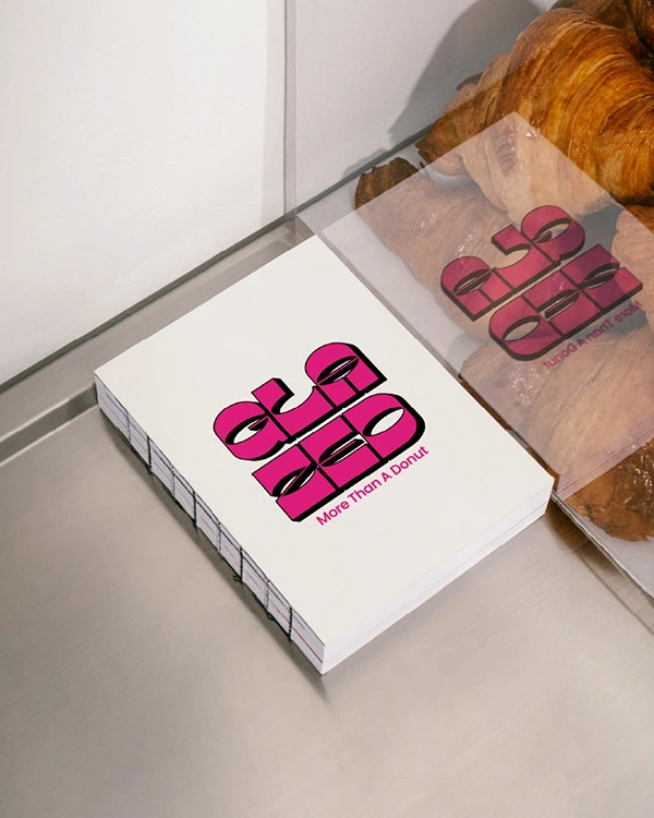 The custom logotype uses chunky, rounded forms that reflect the softness of donuts while adding personality and attitude. The signature hot pink acts as the core brand colour, creating instant recognisability and visual impact.