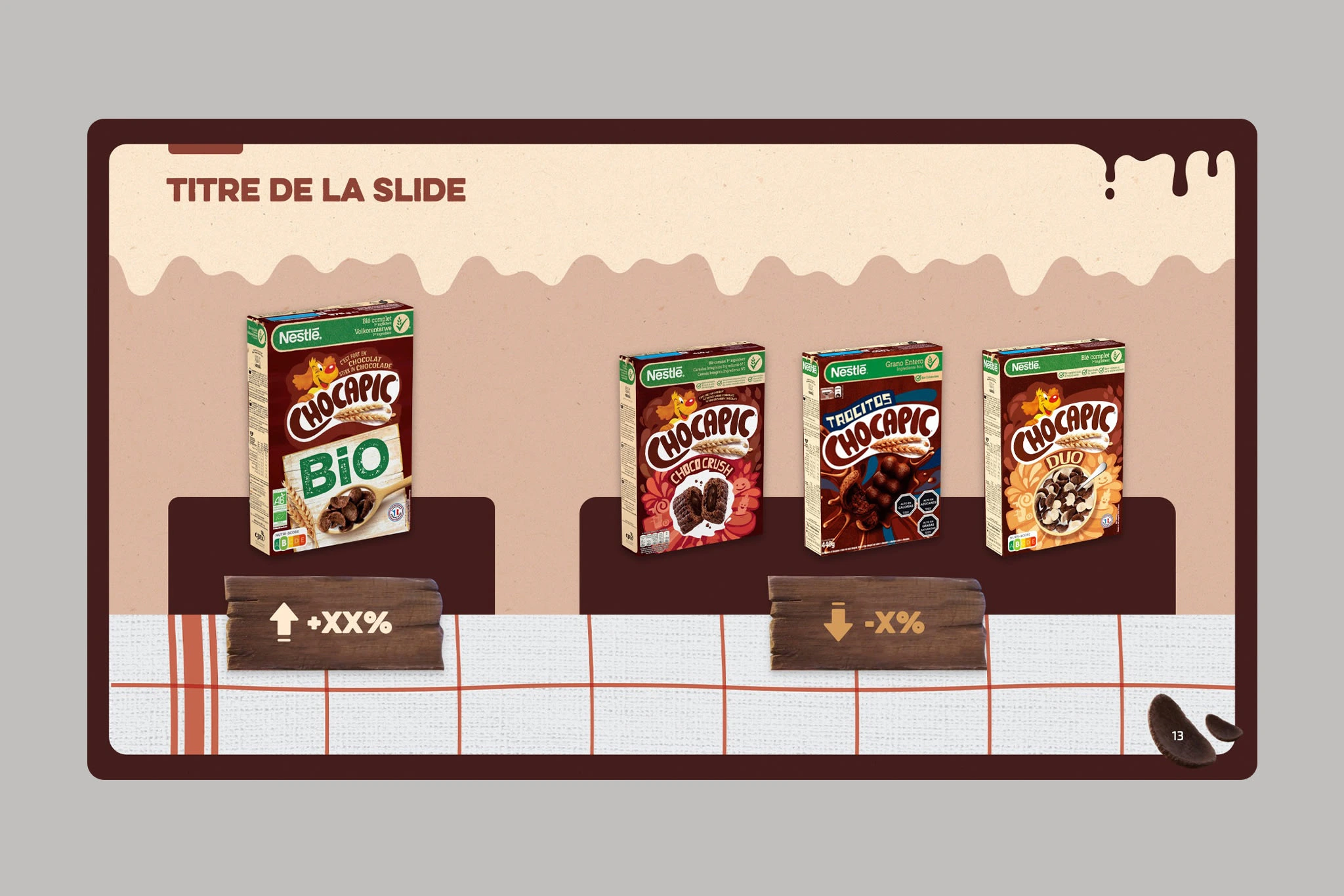 Chocapic’s branding for a vibrant breakfast campaign captures its playful, chocolatey essence with bold, rounded typography inspired by cocoa beans and dynamic swirls, paired with a warm brown, gold, and creamy white palette, evoking fun mornings and rich flavors.