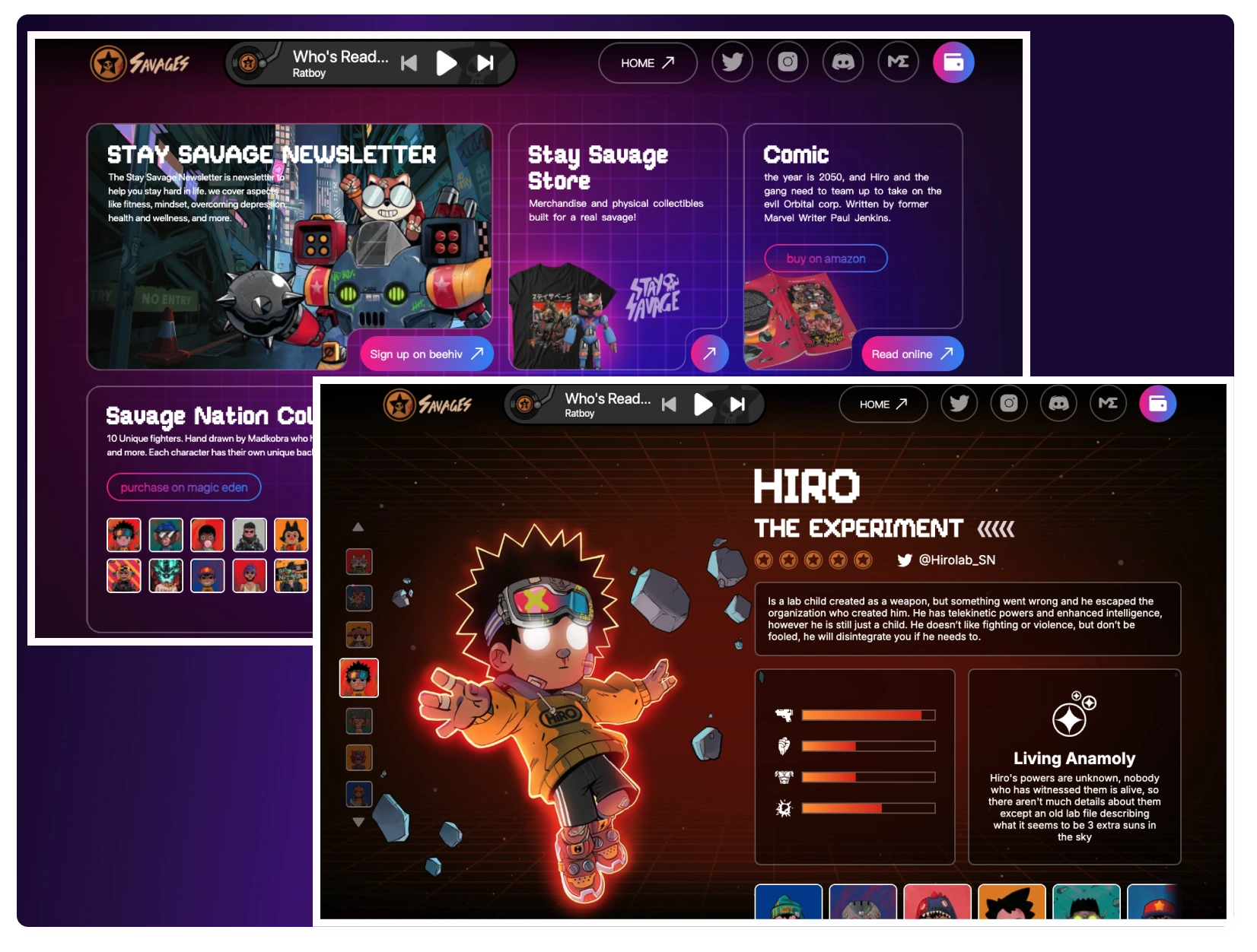 Savage Nation is an NFT-world platform built on Next.js, designed to deliver a visually rich, highly interactive experience for collectors and community members. The project required a bold, flashy interface with smooth animations, fast performance, and pixel-perfect UI across all devices.