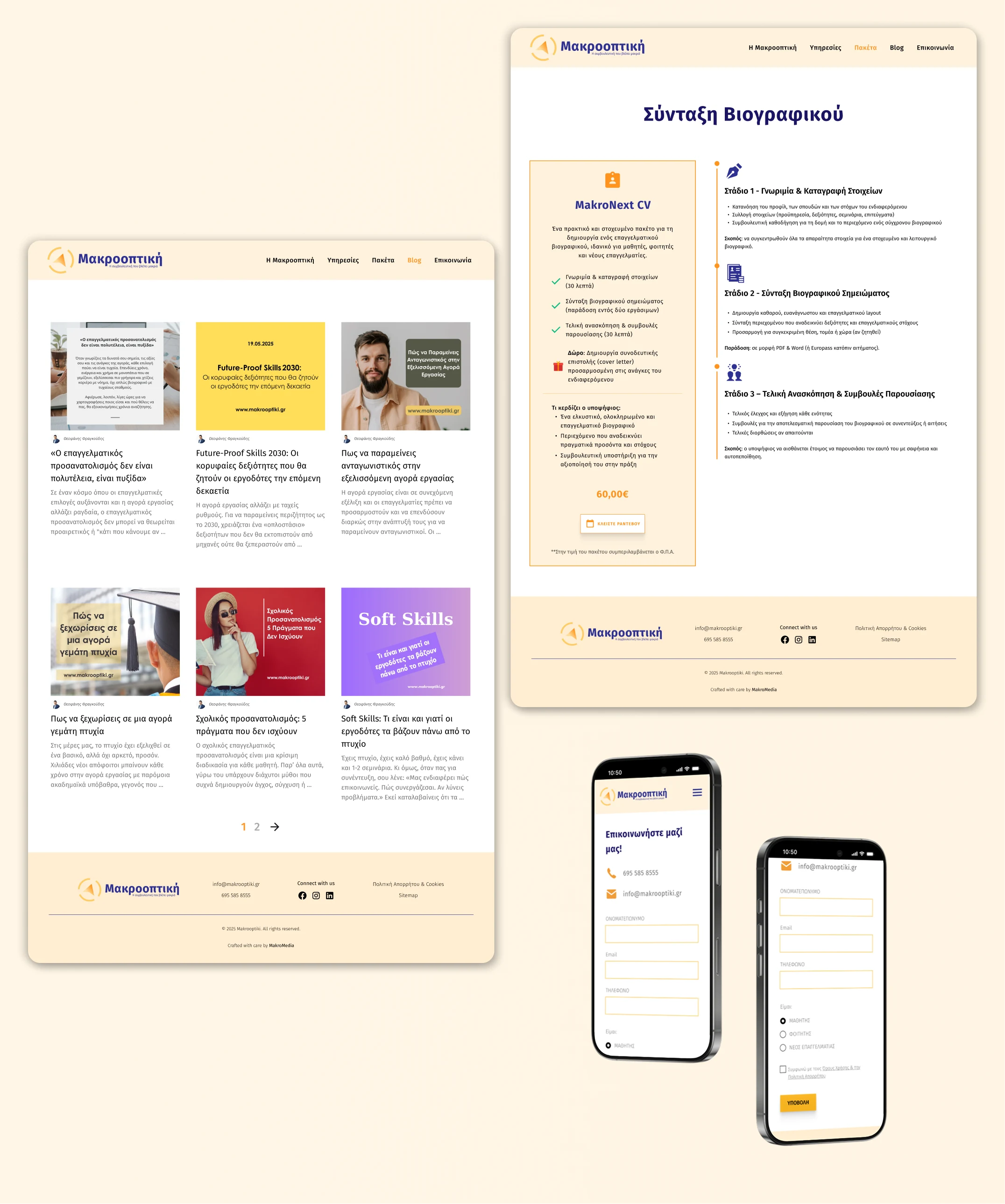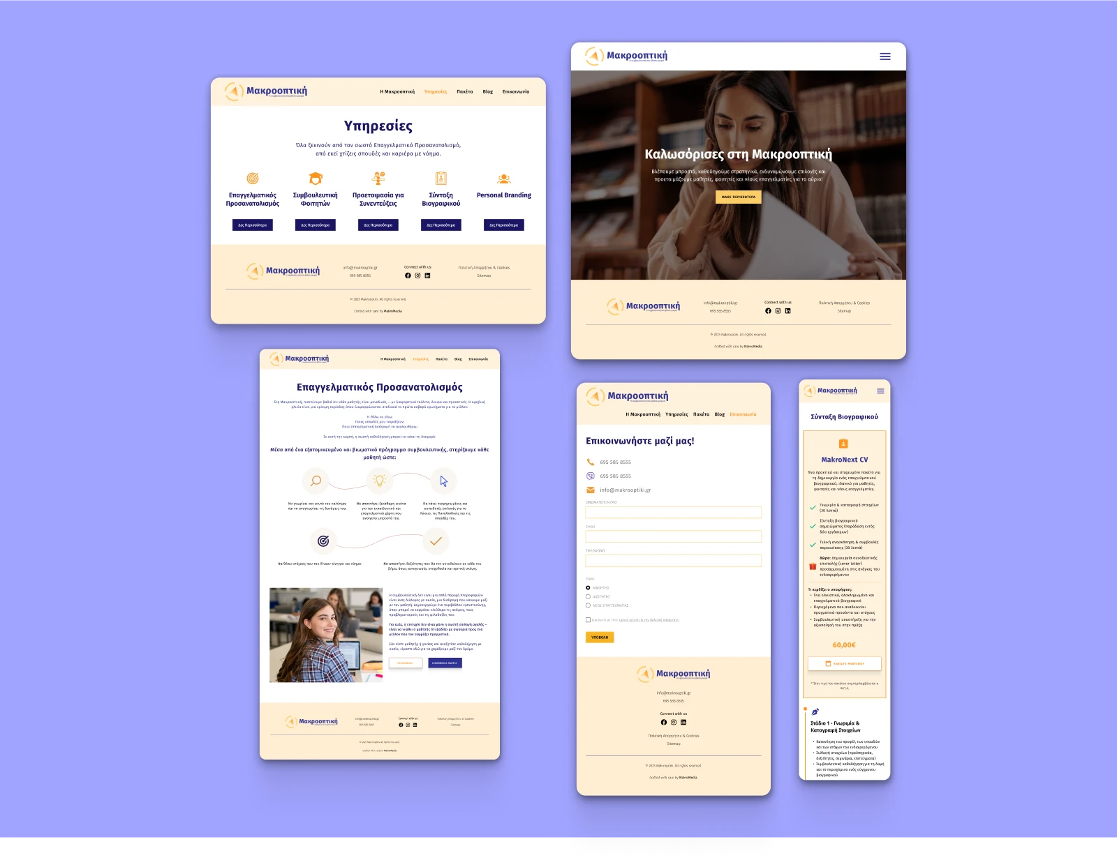 The final result was a brand identity that reflected Makrooptiki's principles and values, and its dedication to guiding young people. Users can find everything very easily, learn more about the company, its services and available packages. By focusing on simplicity, Makrooptiki has a clean layout and responds extremely well on all screens.