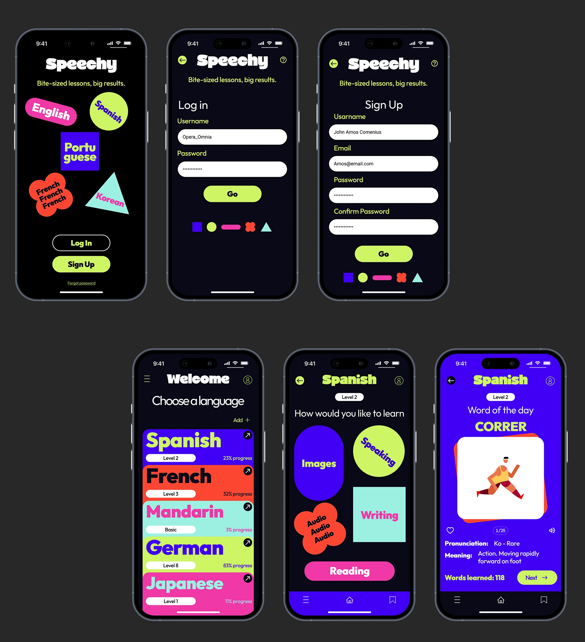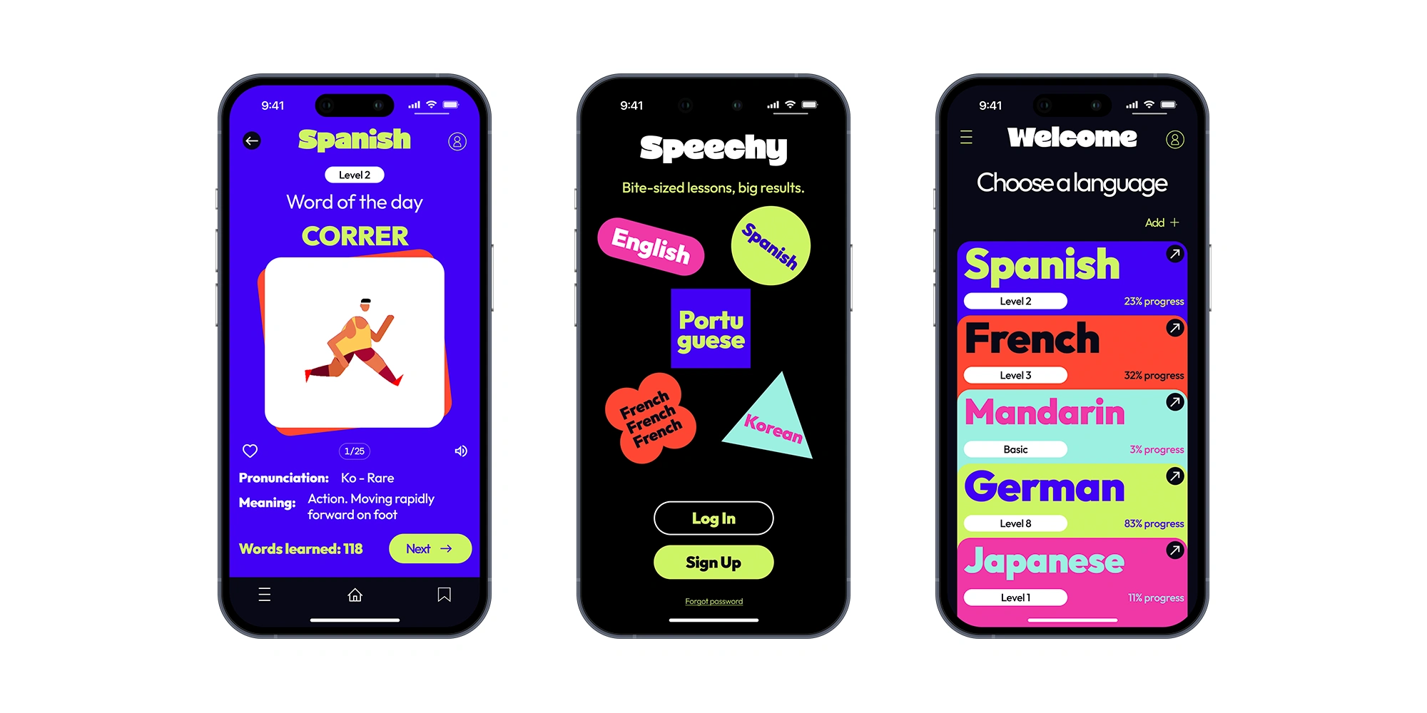 I designed Speechy to make language learning fast, fun, and effortless. With bite-sized lessons, a playful interface, and gamified progress tracking, users can learn practical phrases in just minutes a day. The clean design, quick-start options, and engaging content ensure Speechy fits seamlessly into any lifestyle. It’s learning made simple, enjoyable, and effective.