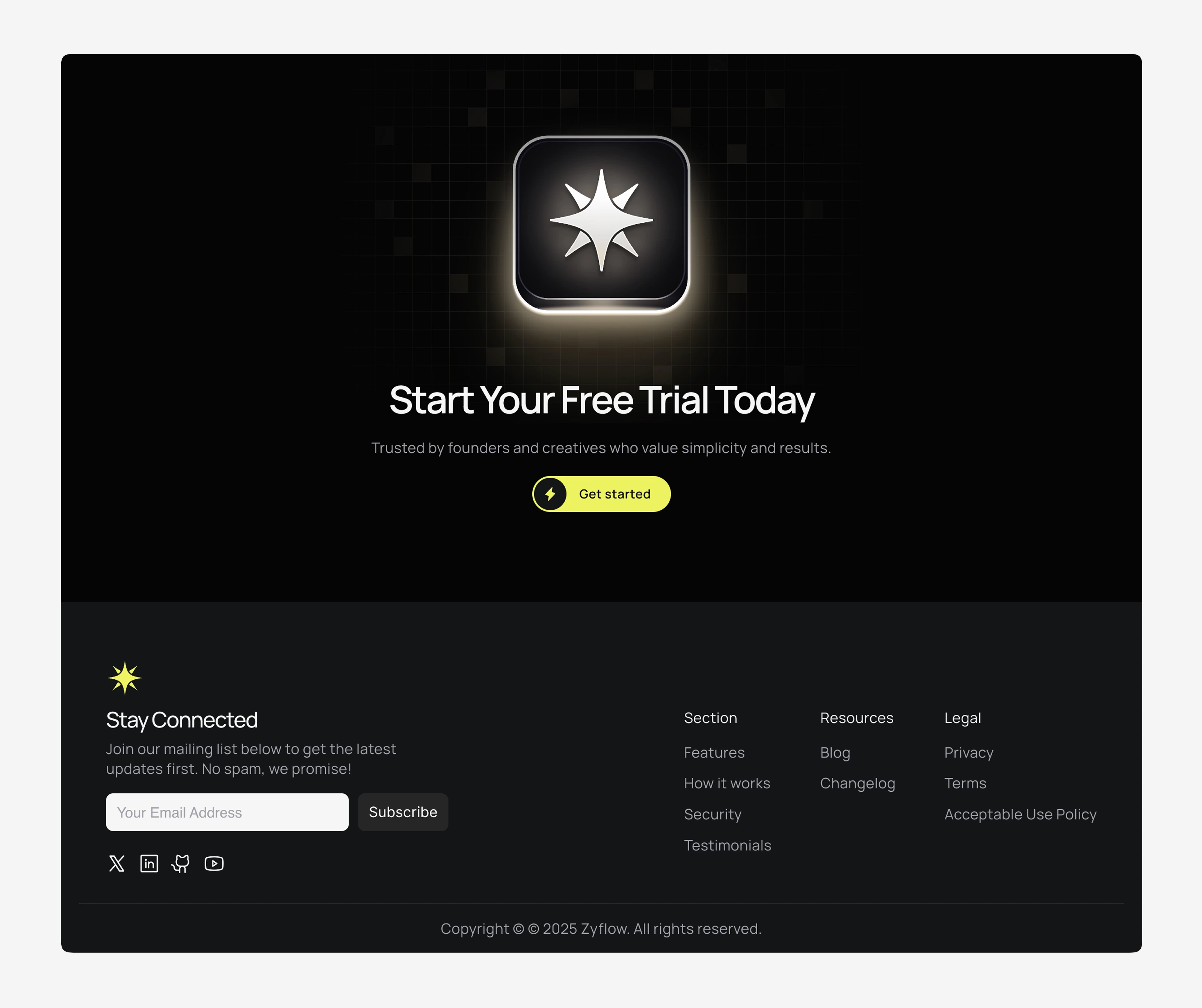 Zyflow is a premium marketing platform designed to establish immediate credibility for next-generation automation startups.