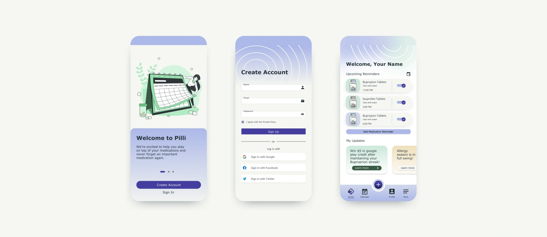 Pilli is a cross-platform medication reminder app designed to help users stay on track with daily prescriptions and supplements. It supports mobile, smartwatch, and desktop experiences to meet users where they are.