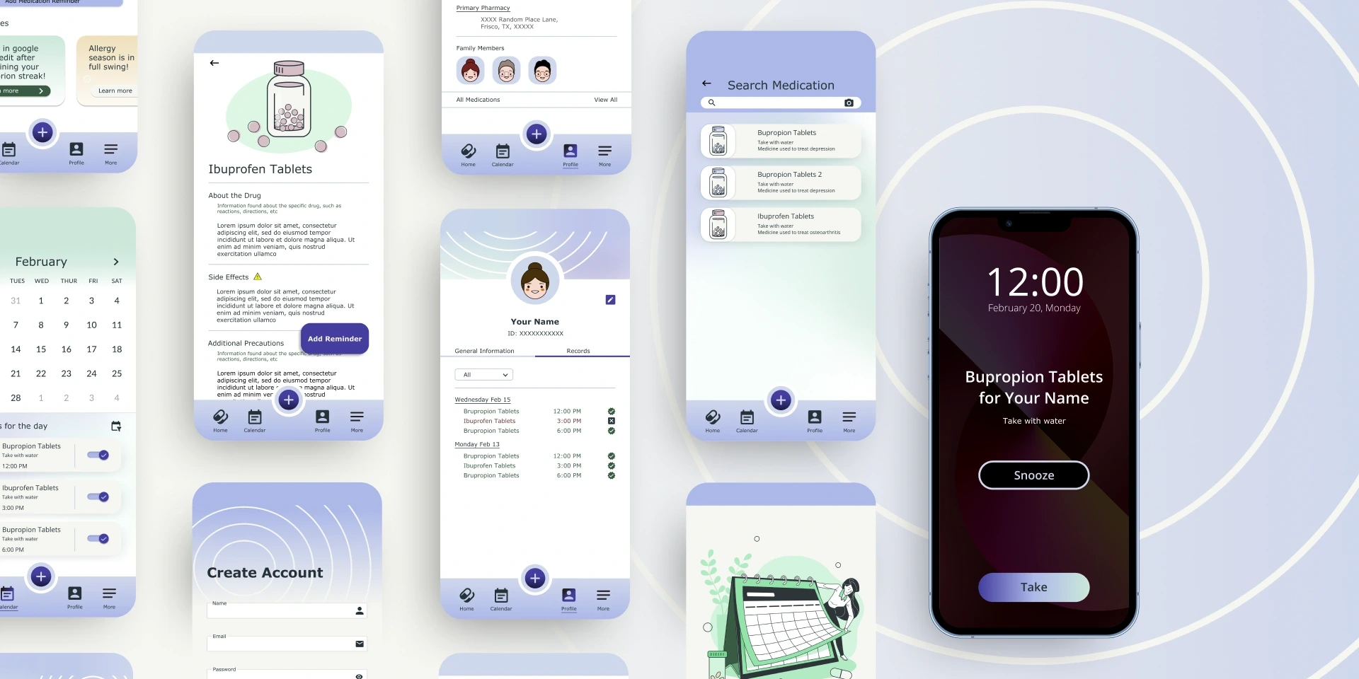 🎯Goal: Create an intuitive, accessible interface that empowers working adults and seniors to manage their medication schedules with ease and confidence. The app includes alarm flows, smart notifications, and a responsive landing page with supporting content.