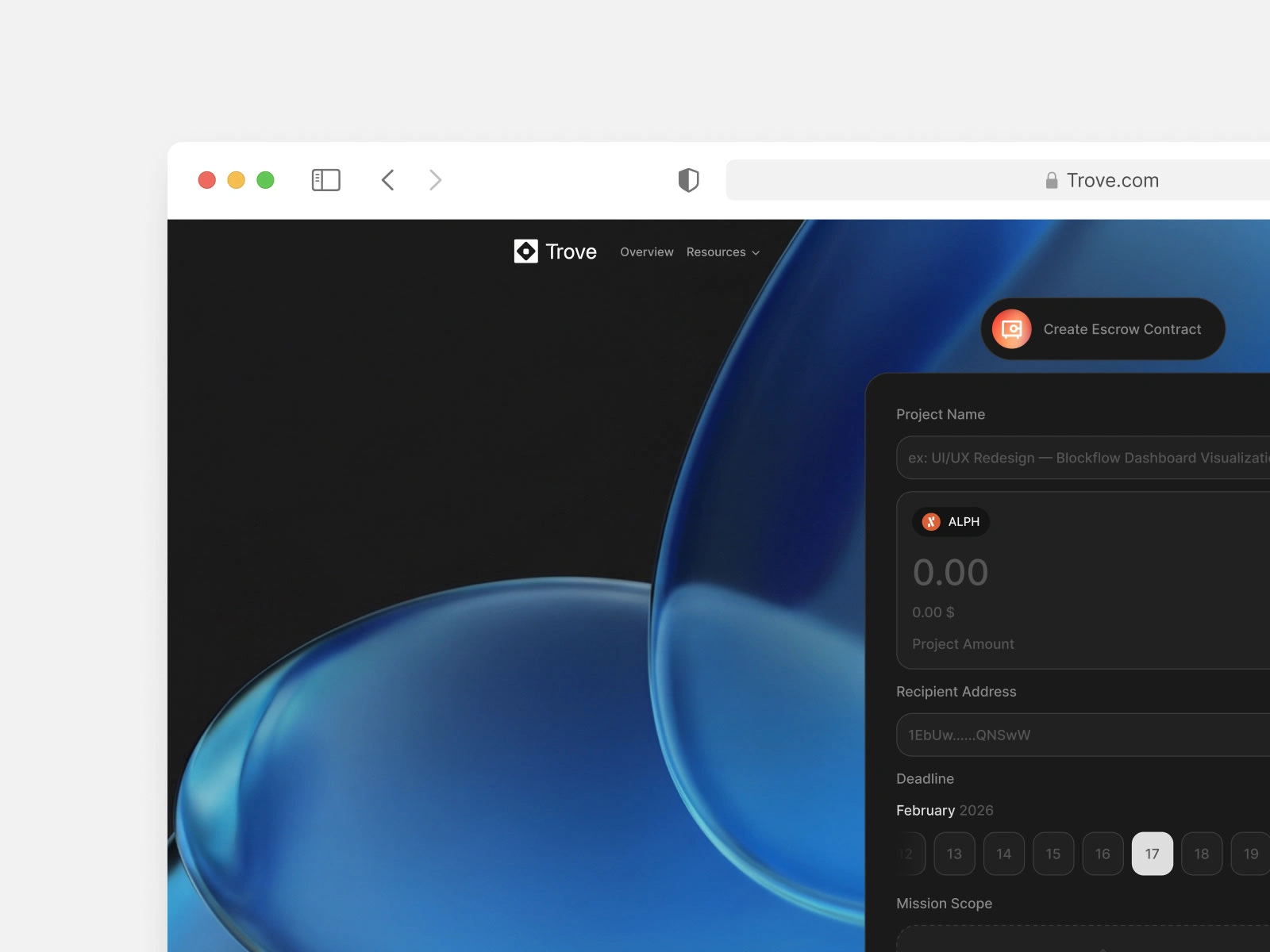 Single-screen escrow creation : every field maps to a smart contract parameter.