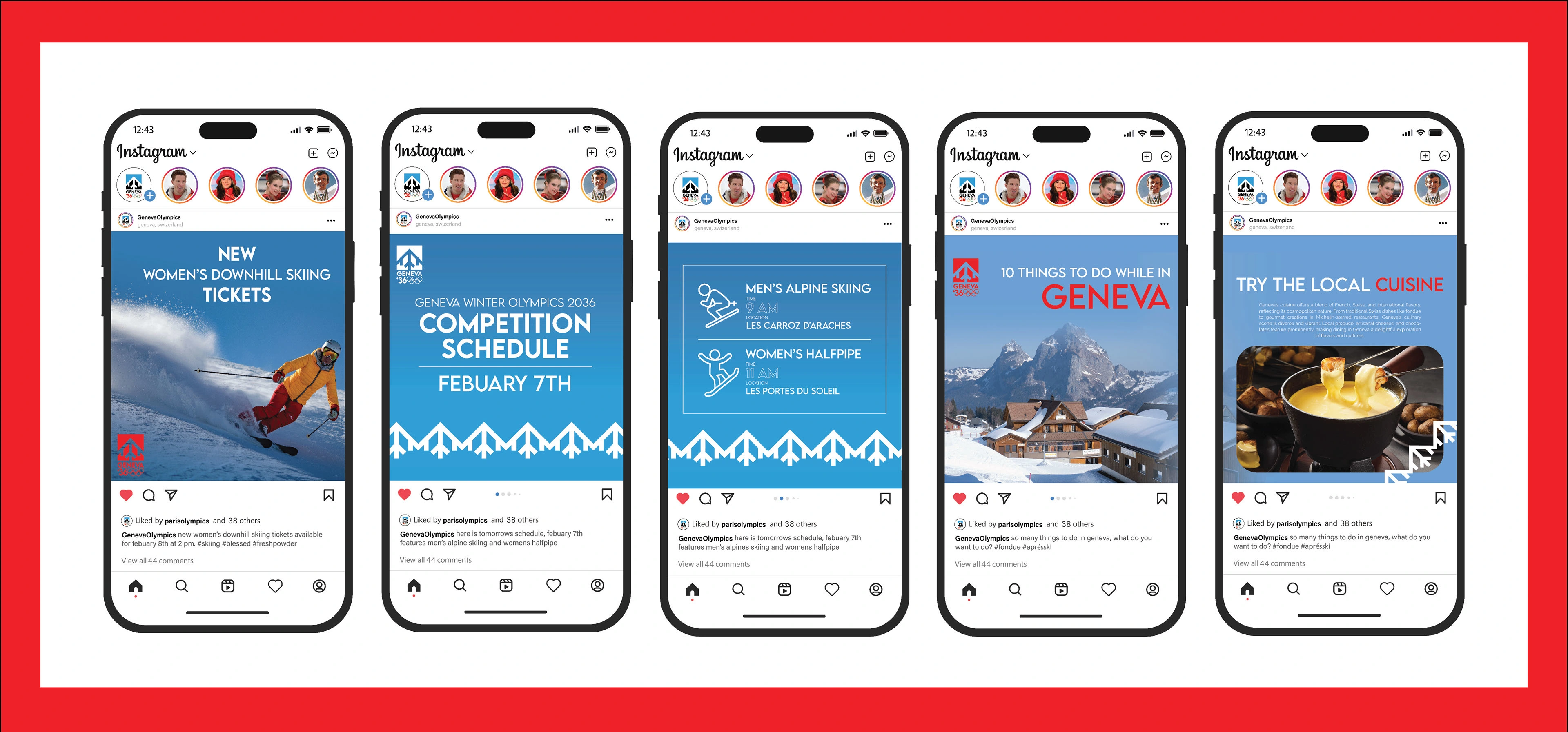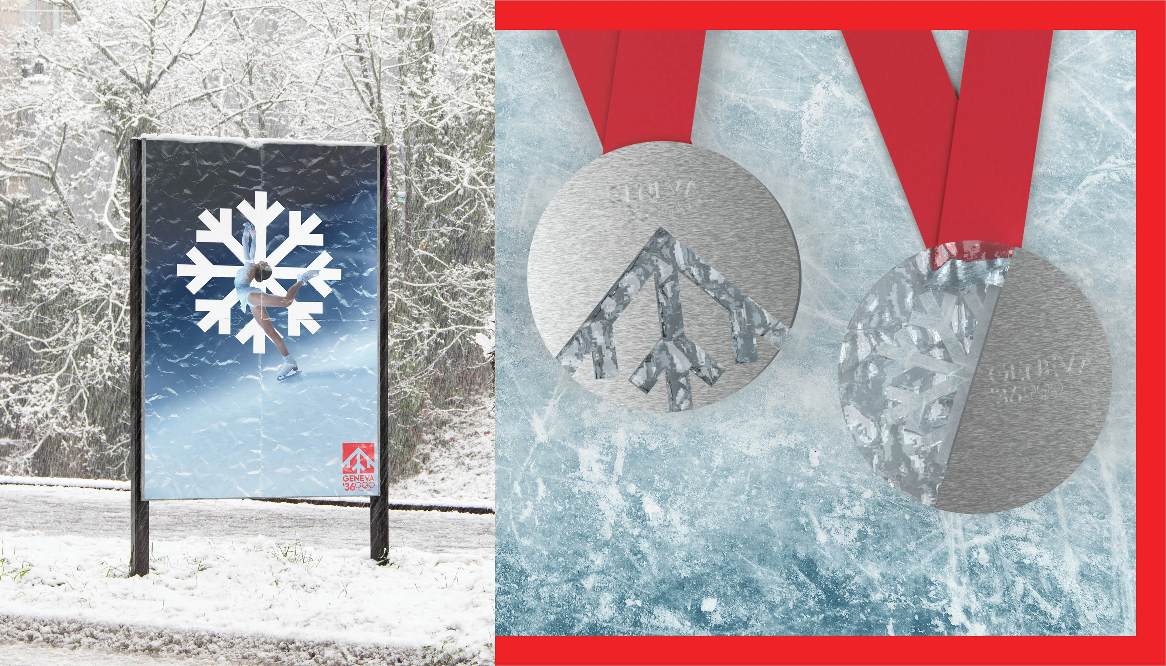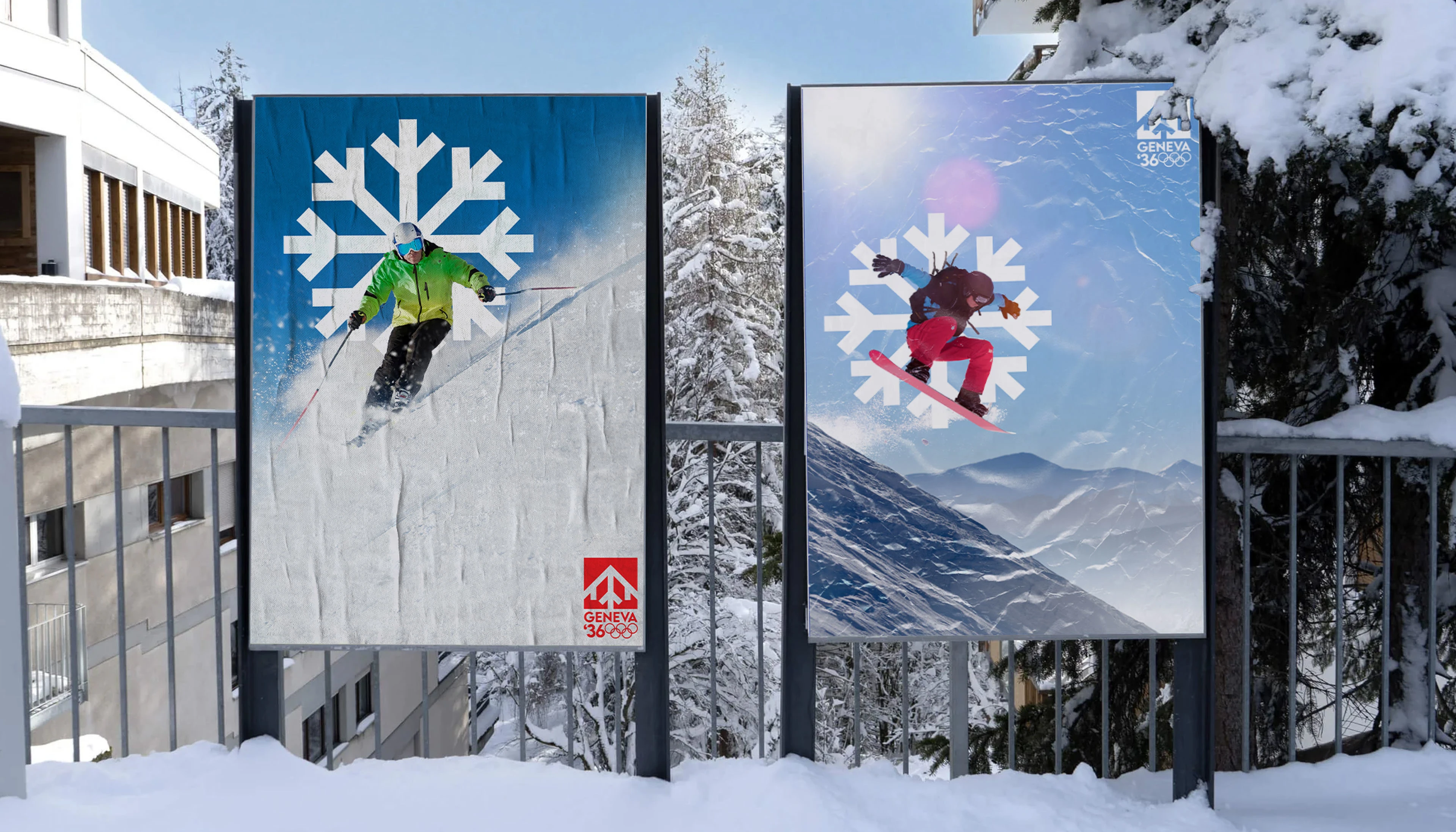 Branding for the Geneva Winter Olympics 2036 including logo, merchandise, tickets, posters and social media.