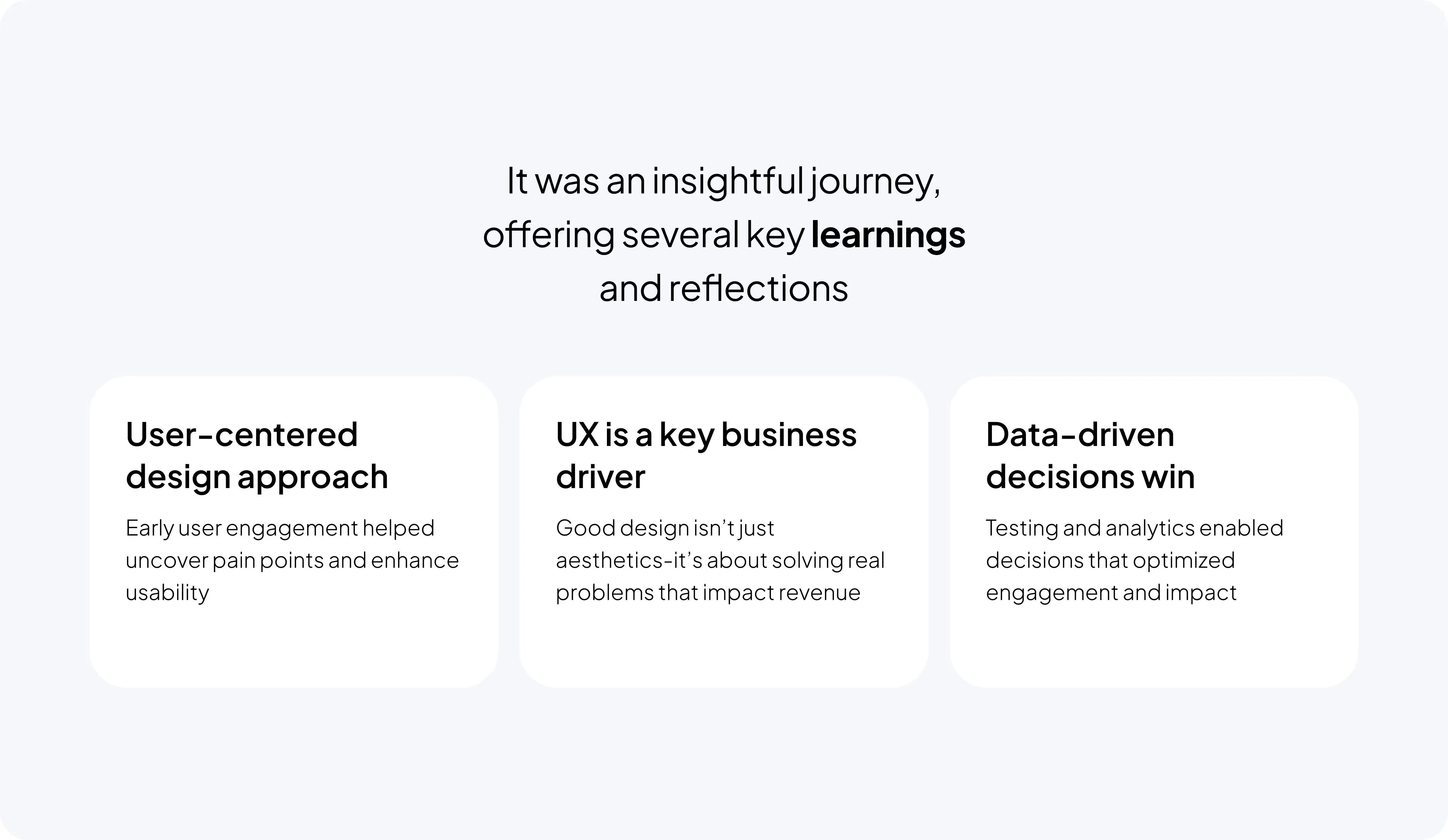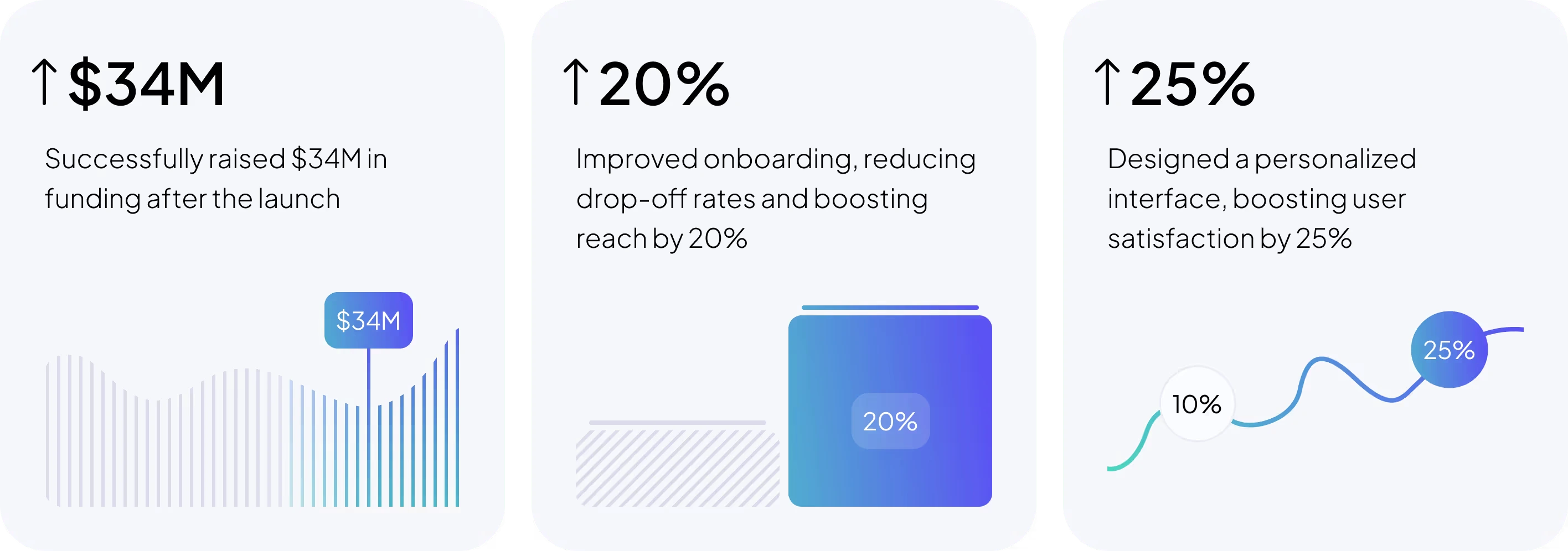 The redesigned platform improved usability, reduced friction for onboarding, and helped the team align design and development workflows, contributing to the company’s successful expansion.