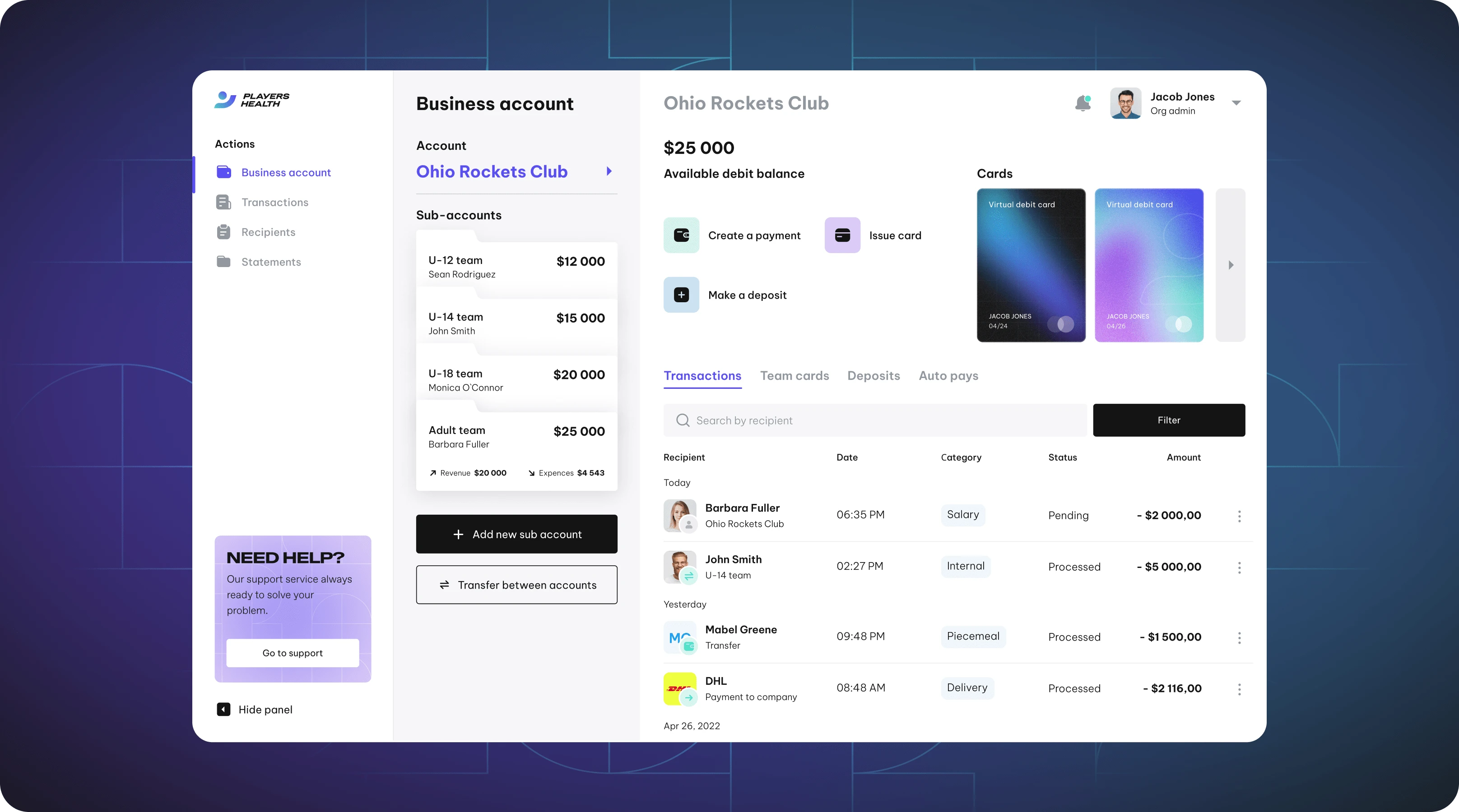 Players Health is a risk management and insurance platform supporting youth sports organizations across the U.S. In this project, I led the end-to-end product design to improve user experience, increase engagement, and support a $34M funding round.