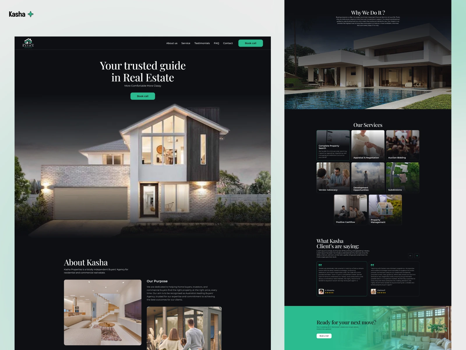 Complex real estate acquisition processes need simplification for a broad audience. Another challenge was effectively showcasing Kasha Properties' comprehensive services, such as property search, negotiation, and auction bidding, while authentically conveying their commitment to buyer advocacy and securing optimal deals. Furthermore, designing an intuitive user journey that built trust and encouraged client engagement was crucial. To overcome these challenges, our team designed a clean, professional, and highly informative website. This platform prioritized clear communication and user confidence. We integrated a streamlined service architecture that eloquently presented their specialized offerings and undeniable benefits, featuring prominent calls to action to guide visitors towards meaningful engagement effortlessly. A modern, fully responsive design ensured a flawless experience across all devices.