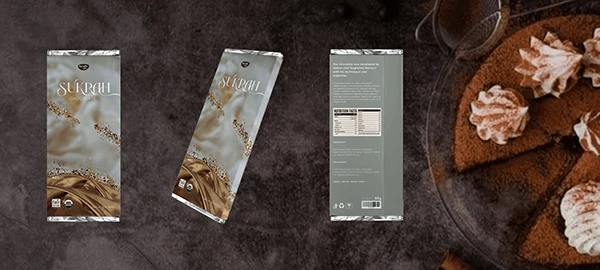 Son ambalaj tasarımı, çarpıcı bir soyut tasarıma sahiptir: koyu çikolata için altın yaldız ve kırmızı kadife bir arka plan, beyaz çikolata için ise yumuşak ve zarif bir görünüm. Bu tasarımlar, Sukrah’ın premium kalitesini ve pazar farkını vurgulayarak yaratıcılık ile zarafeti mükemmel bir şekilde dengeledi.