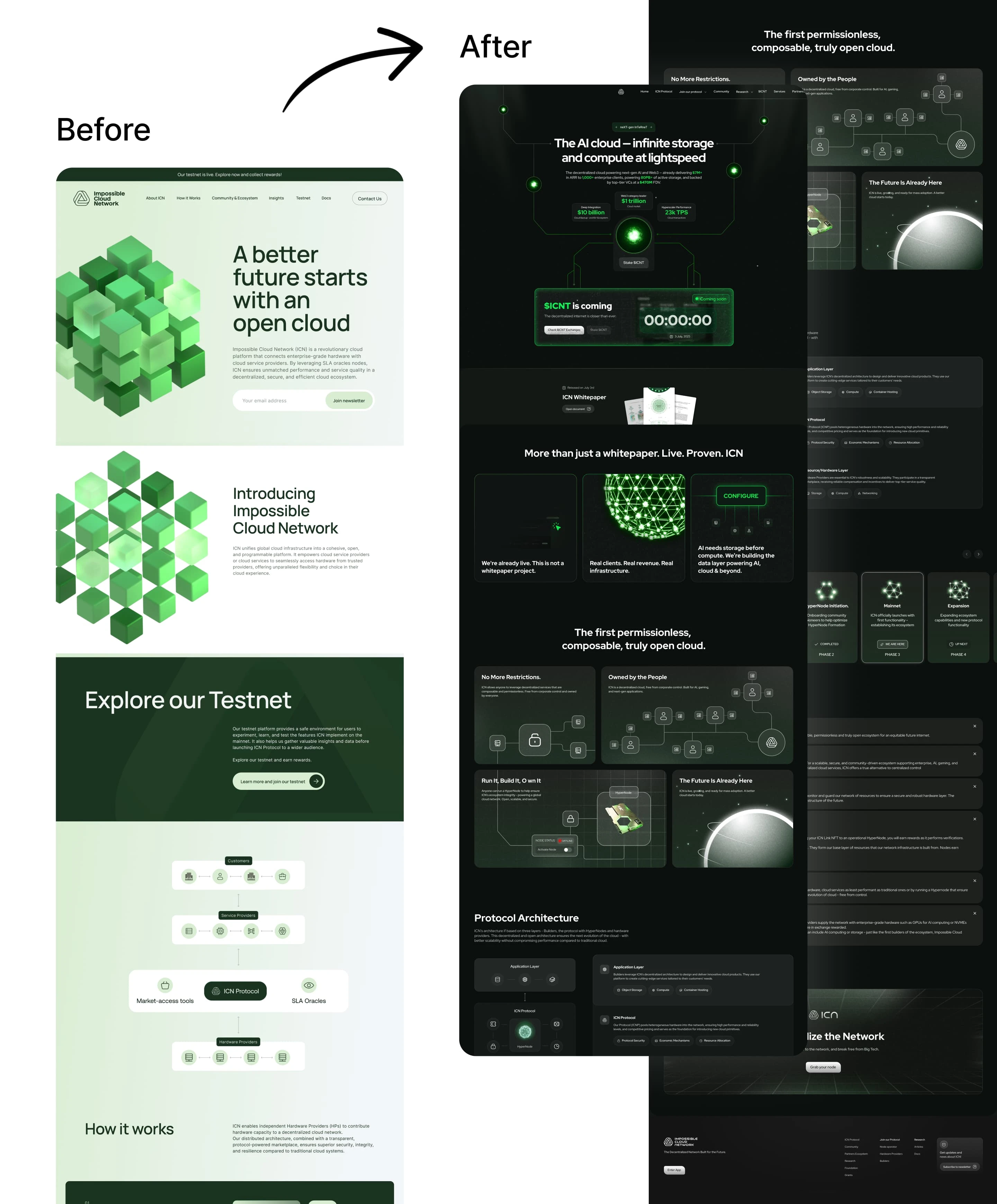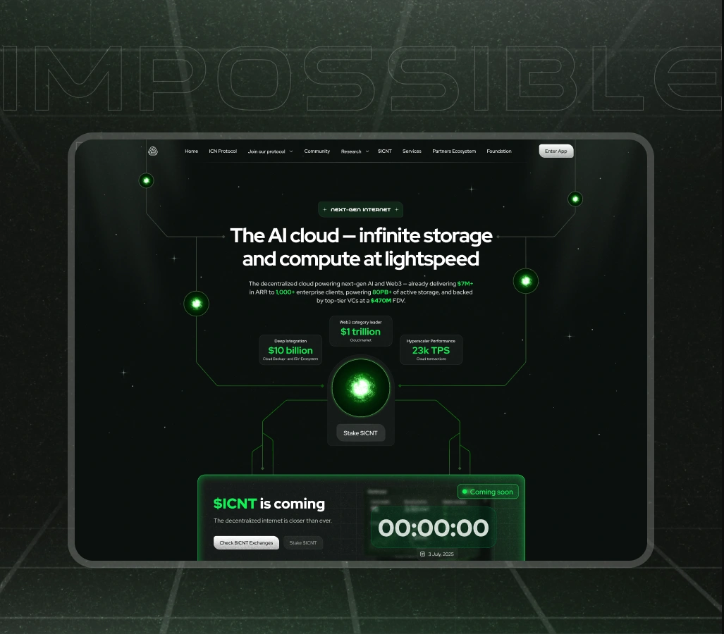 Impossible Cloud Network (ICN) is building the world's largest decentralized data center network for AI. They offer enterprise-grade, bare metal AI infrastructure across key global markets in Europe, the US, and Asia. With 7M+ ecosystem ARR, 1,000+ enterprise clients, and $1B+ in trading volume, ICN targets both enterprise customers seeking high-performance cloud solutions and operators looking to contribute infrastructure to the network.