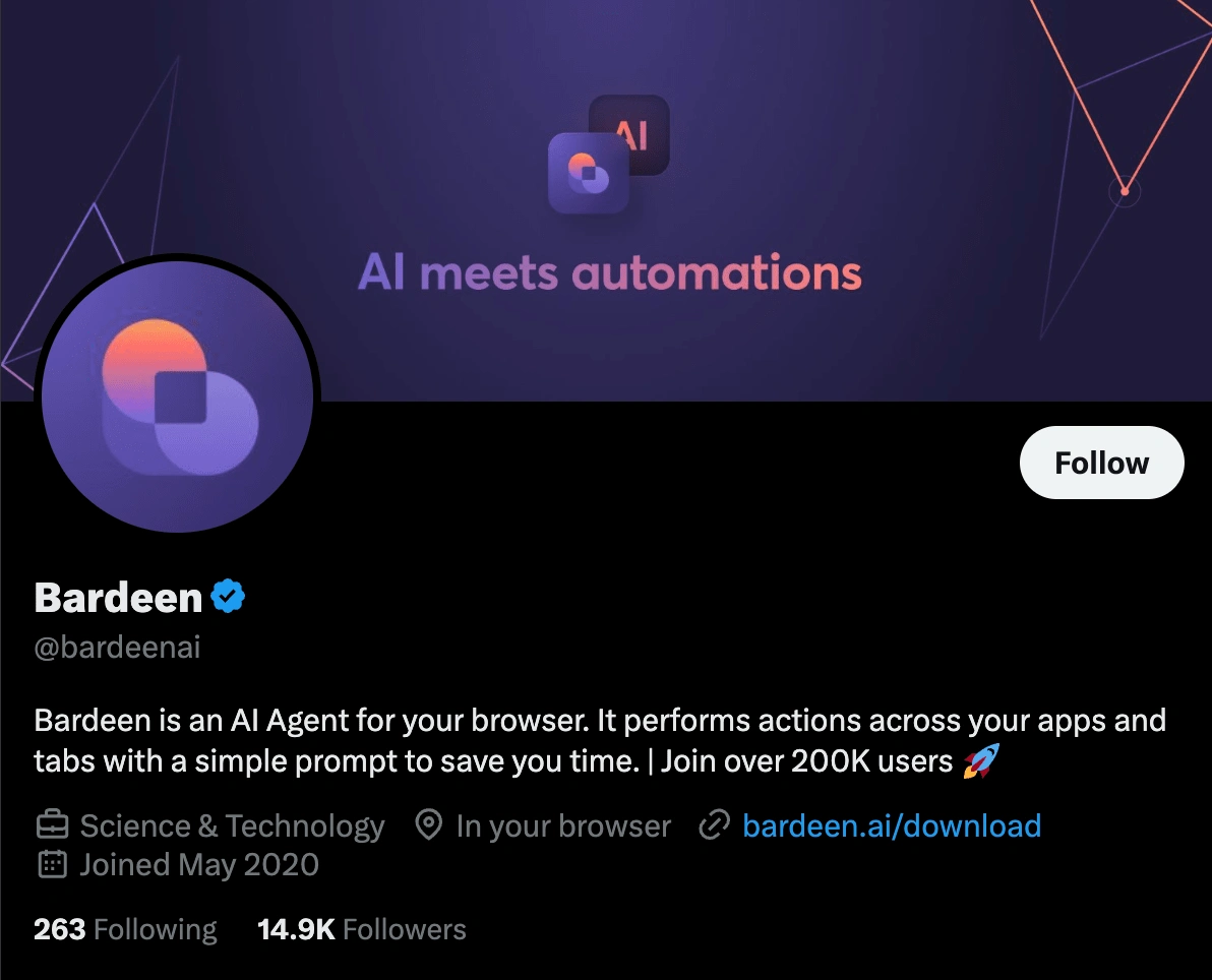 At Bardeen, I led our community engagement efforts by managing our social media strategy from start to finish. I created compelling posts and made sure our presence online was on point. I also took existing content from our blogs, webinars, and YouTube videos, giving it new life across different platforms to reach more people.