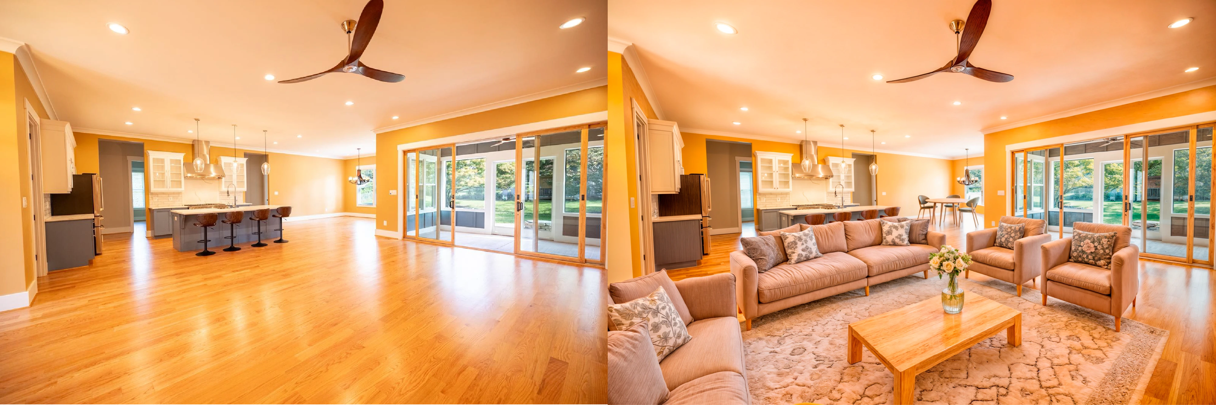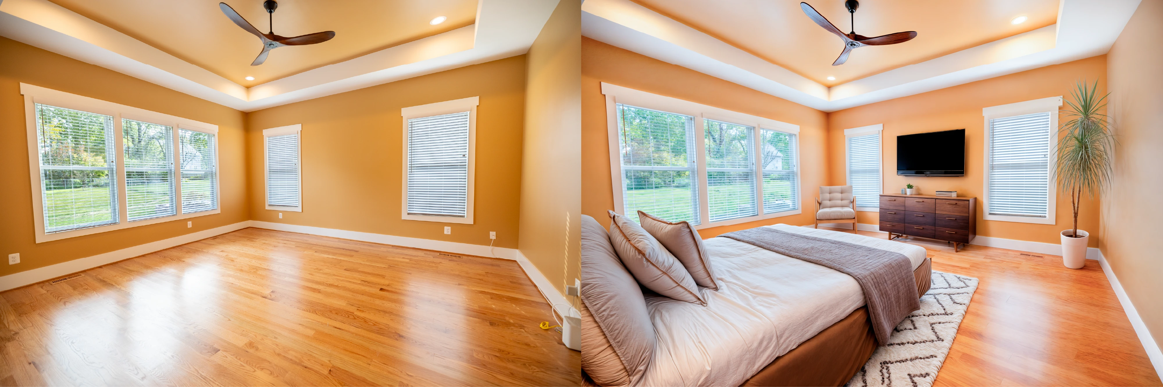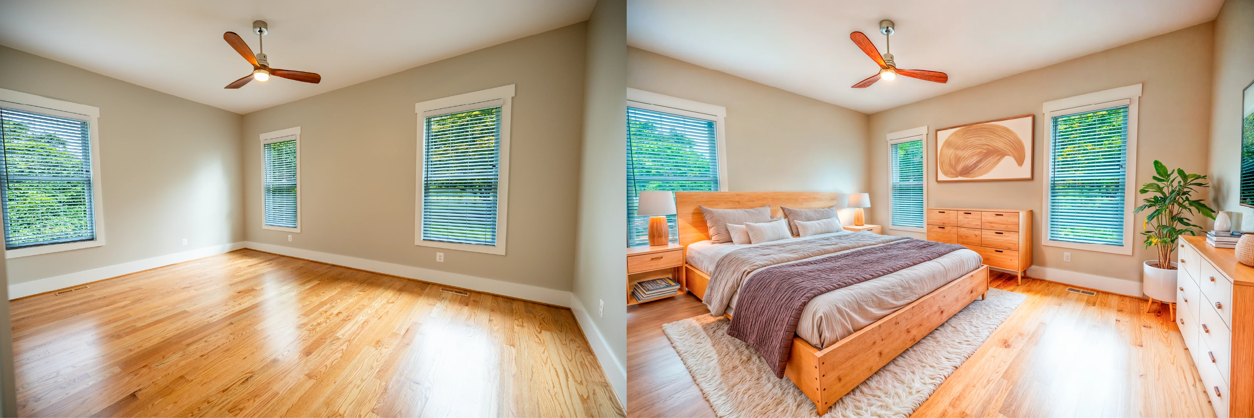 AI-driven virtual staging transformed empty property photos into furnished interiors.