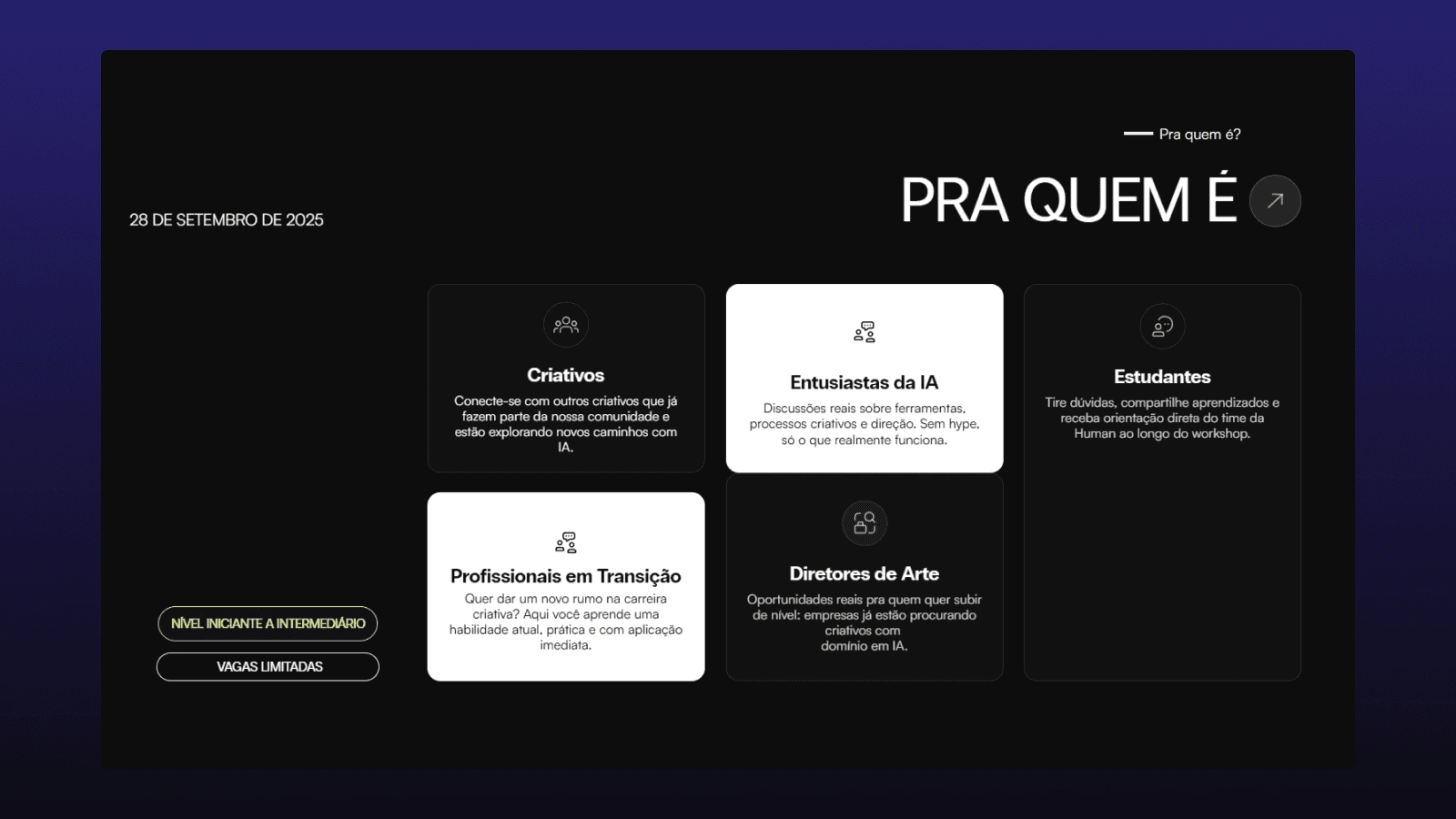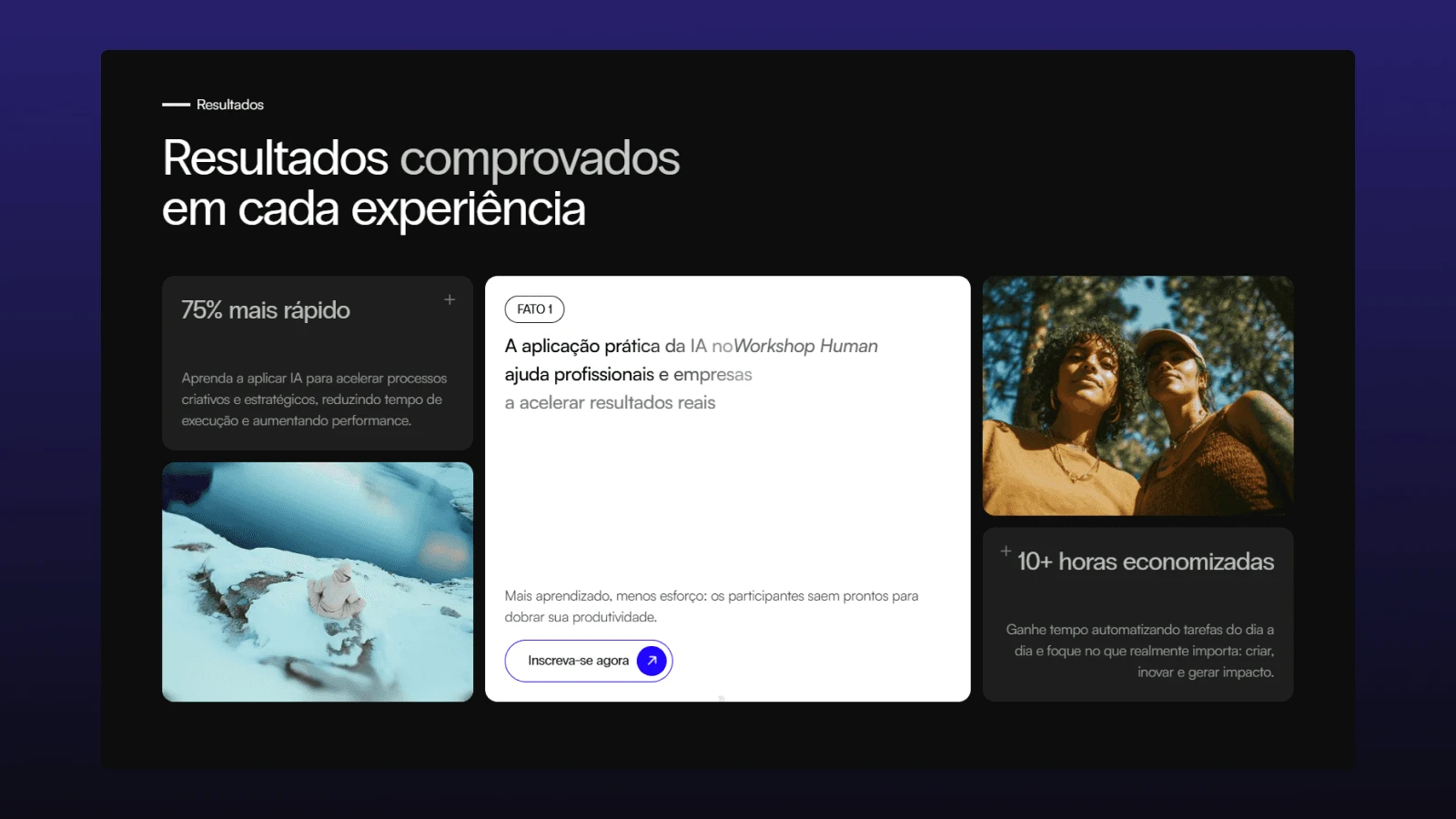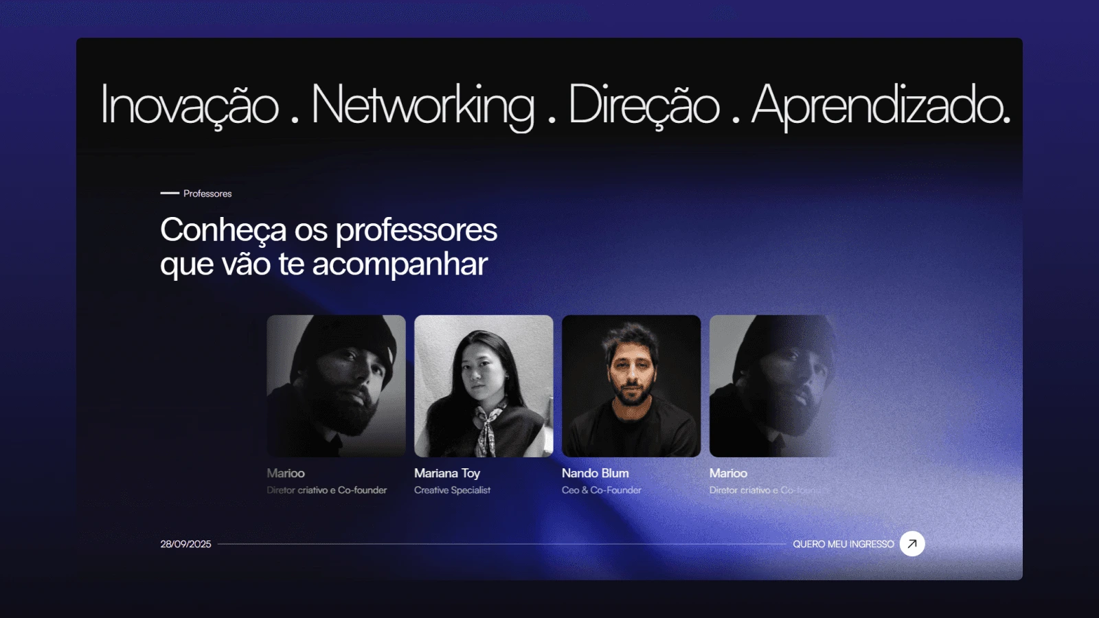 Para um evento sobre o futuro da tecnologia, era preciso uma página com o mesmo nível de impacto. Em apenas 48 horas, o GG Studio criou uma landing page fora da curva — com layout responsivo, UX envolvente e storytelling visual que refletisse o valor do workshop. O resultado superou expectativas e se tornou um dos cases mais rápidos e eficazes do estúdio.