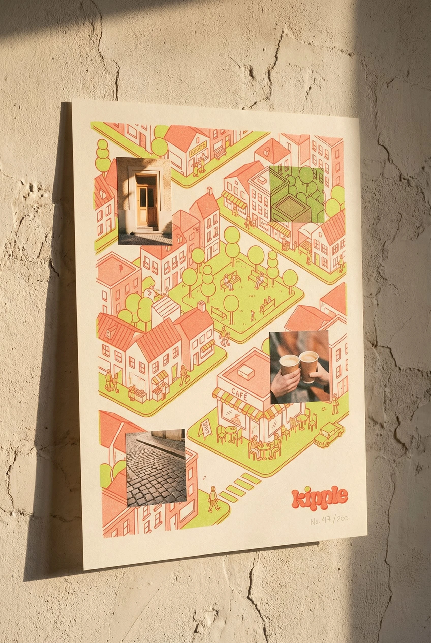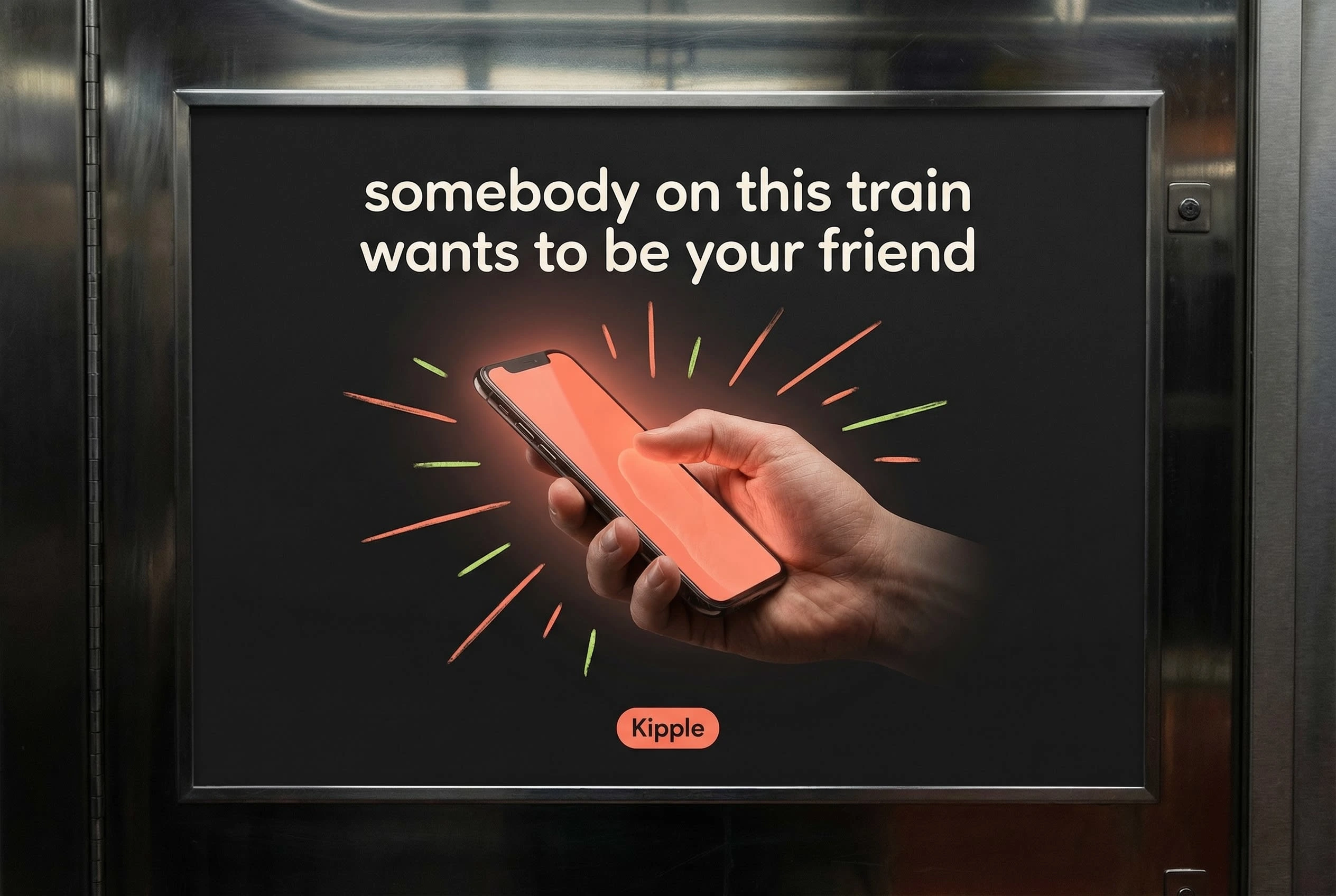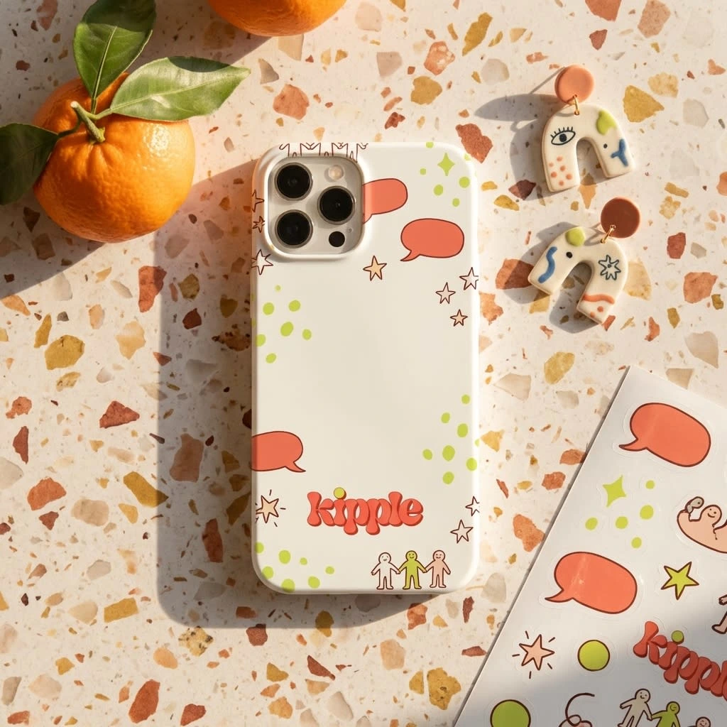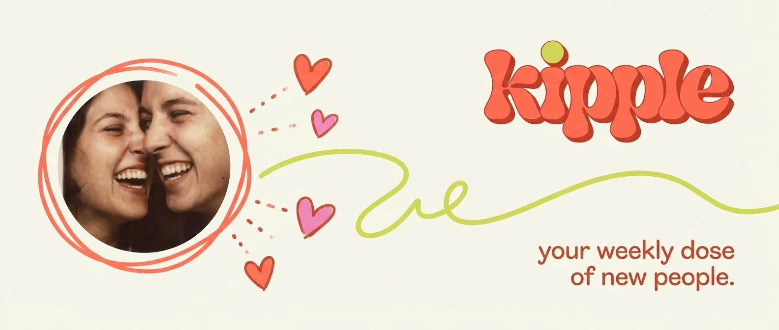 Illustration style: Loose, confident line work in coral and lime. Botanical elements (leaves, plants, stems) for warmth and growth. Human figures simplified to gesture and posture — no detailed faces, just body language that reads as connection. Speech bubbles, stars, sparkle marks, squiggly frames. The illustration never tries to be fine art — it has the energy of someone drawing while talking.