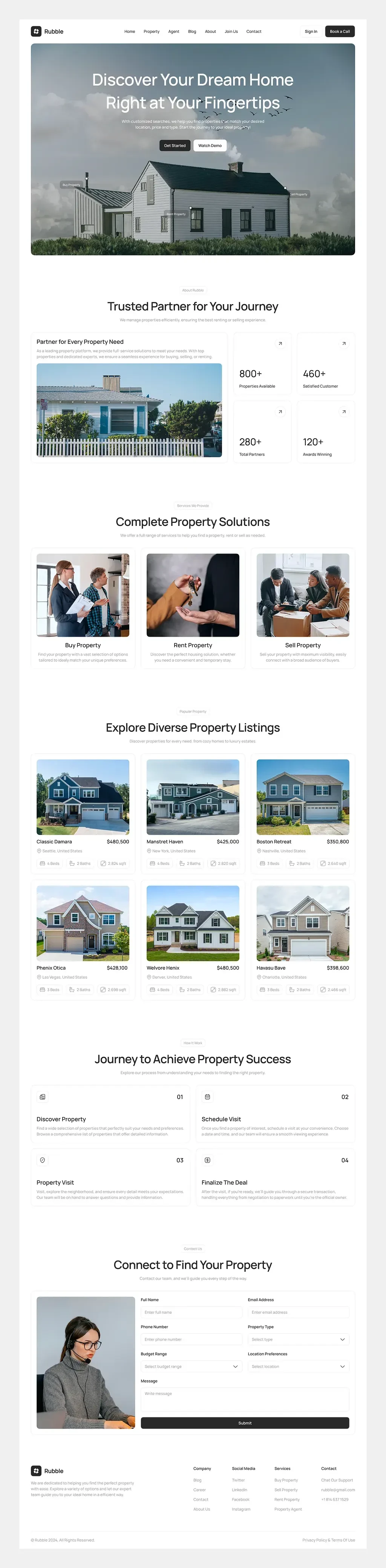 Rubble website is a modern design, featuring property listings, a contact form, and mobile responsiveness seamless navigation and basic SEO to attract clients